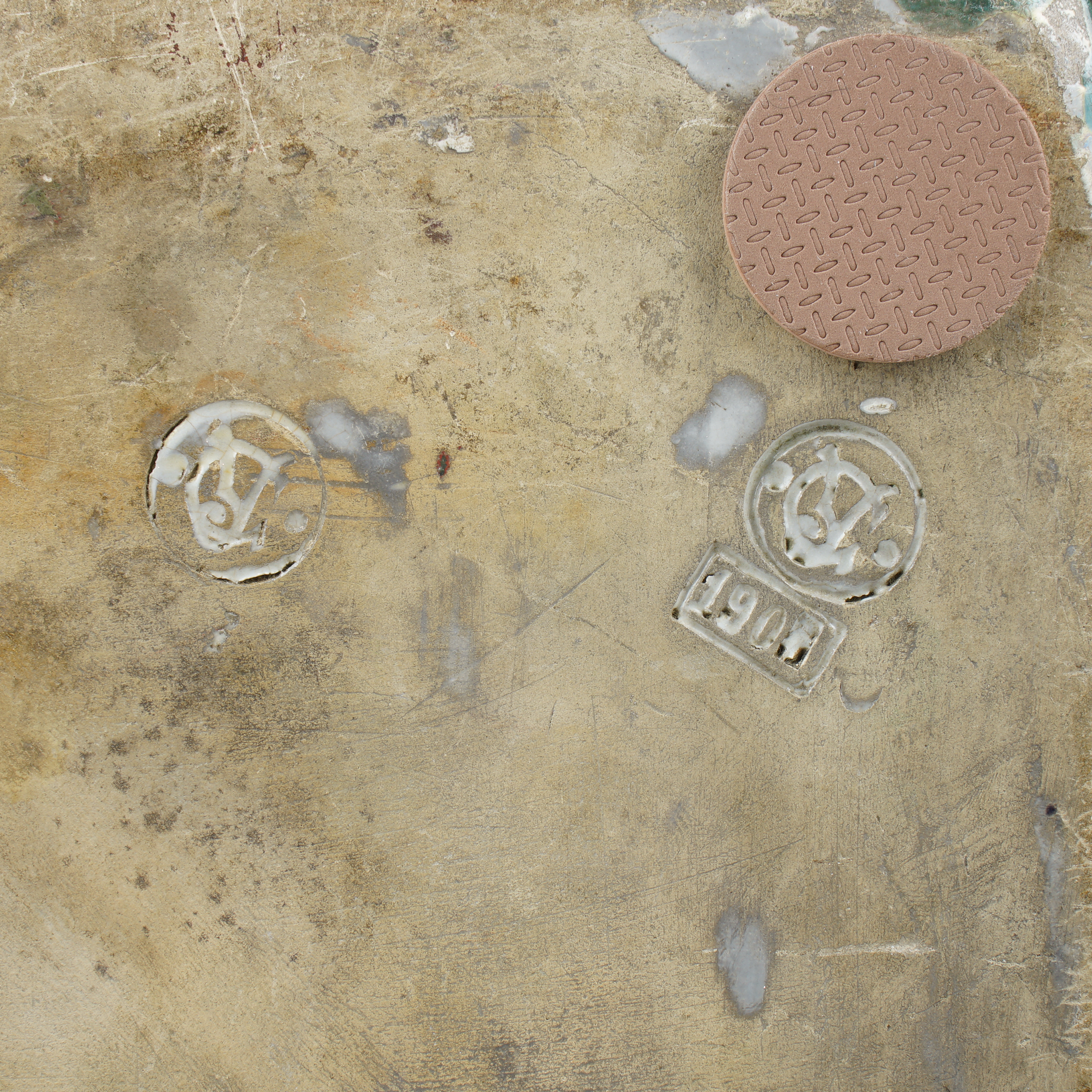 Глина, охристо-бирюзово-синие поливы, на дне дважды тисненая в тесте марка «СУ» с двумя точками по сторонам в круге, сопровождается датой «1905» в прямоугольной рамке. Высота – 52 см, размер горловины – 24,8 х 24,1 см, размер основания – 28 х 28 см.