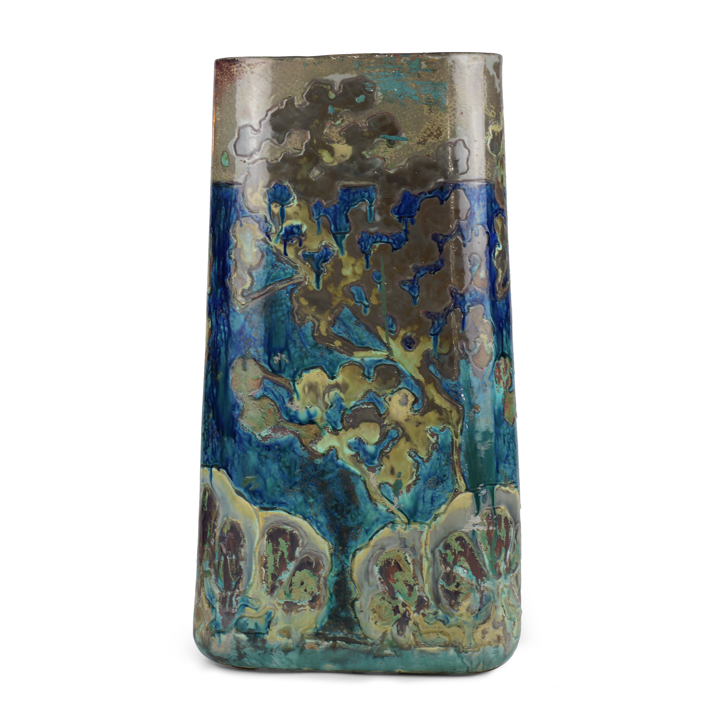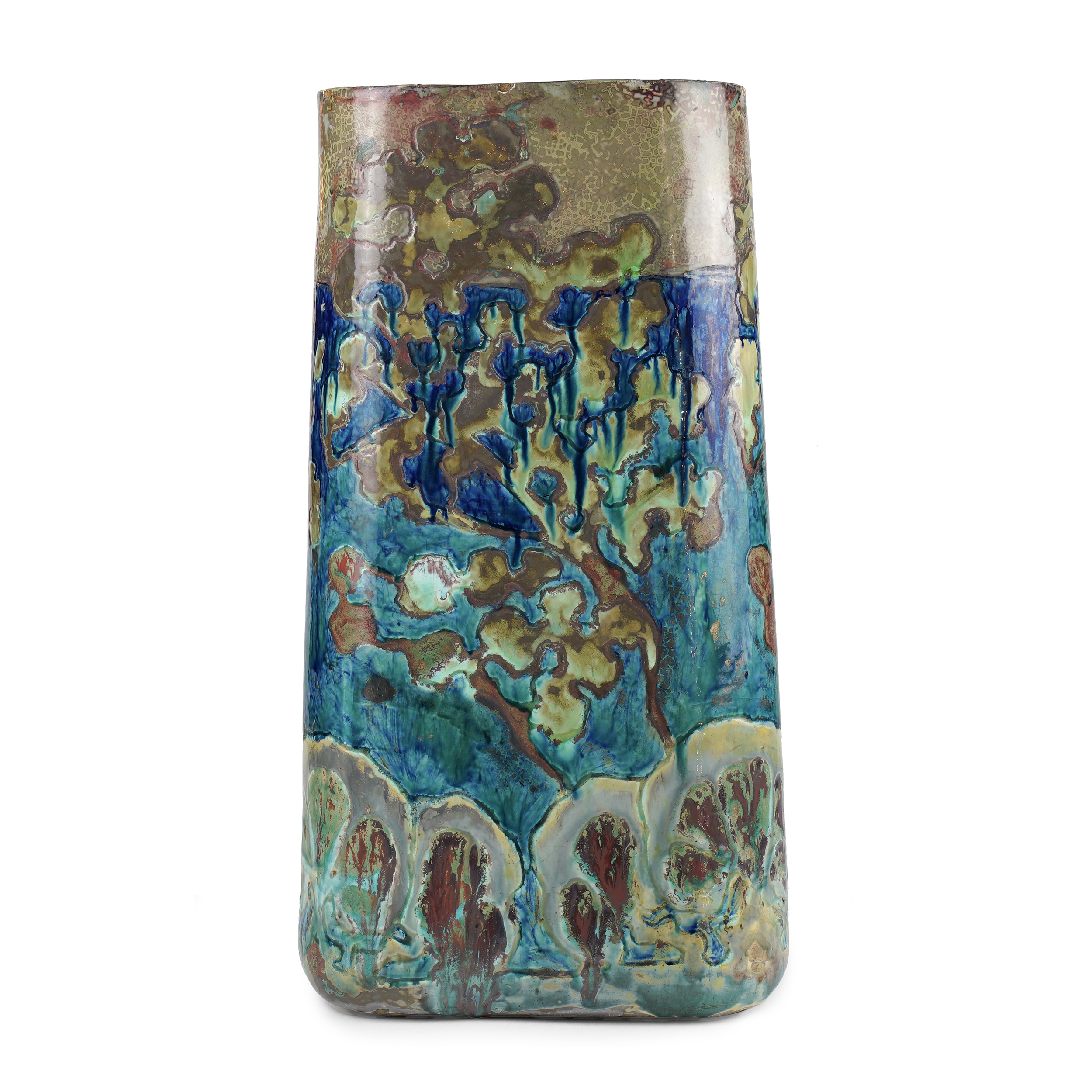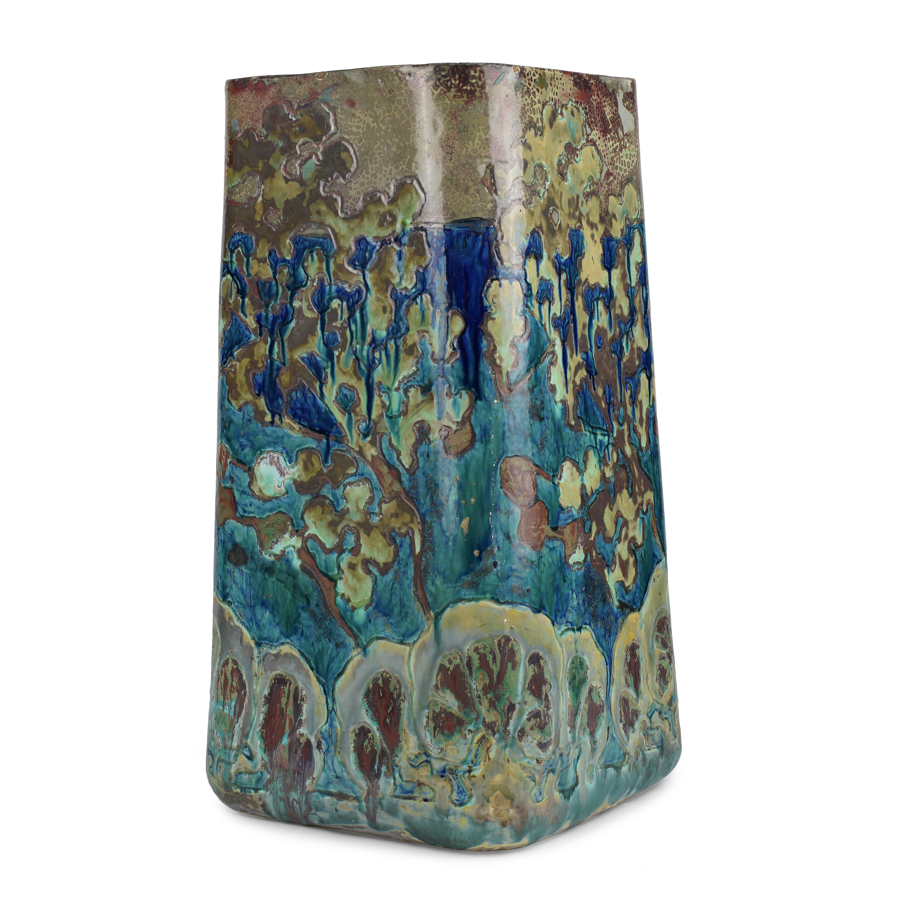 Редко встречаемая четырёхугольная ваза в стиле модерн с эмалевым декором круга последователей Михаила Александровича Врубеля.