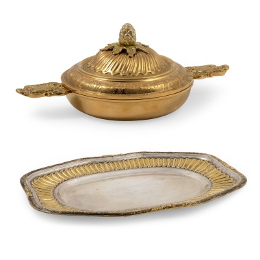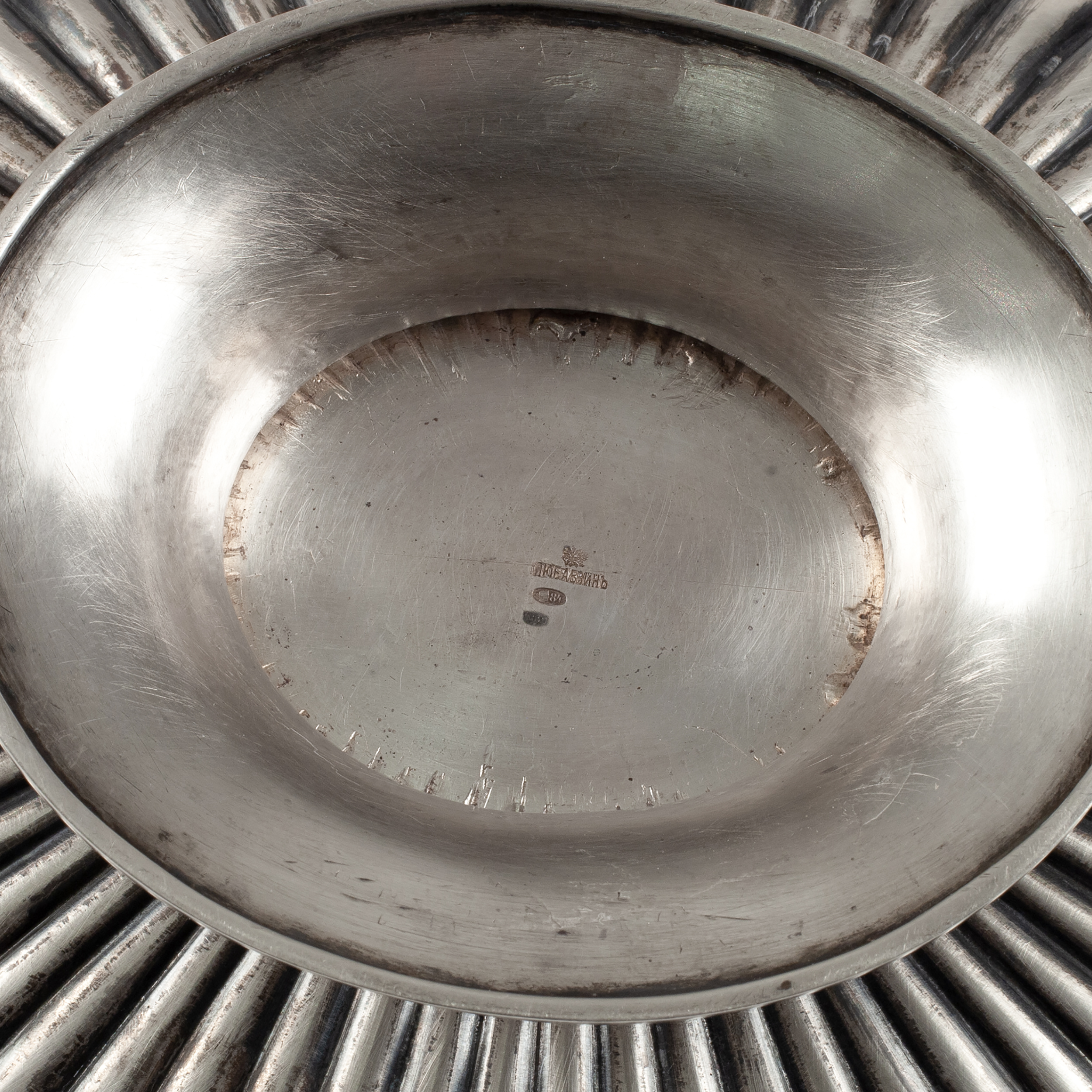 Серебро, литье, штамп; клеймо Петербургского пробирного управления - 84 проба с «женской головкой в кокошнике, смотрящей вправо» с альфой в овальном щитке; клеймо «ЛЮБАВИНЪ» под двуглавым орлом фирмы Любавина Николая Александровича, владельца фабрики серебряных изделий, поставщика Императорского Двора; Российская Империя; размер (в/д/ш): 24 х 26,8 х 21,5 см, вес – 785 грамм.