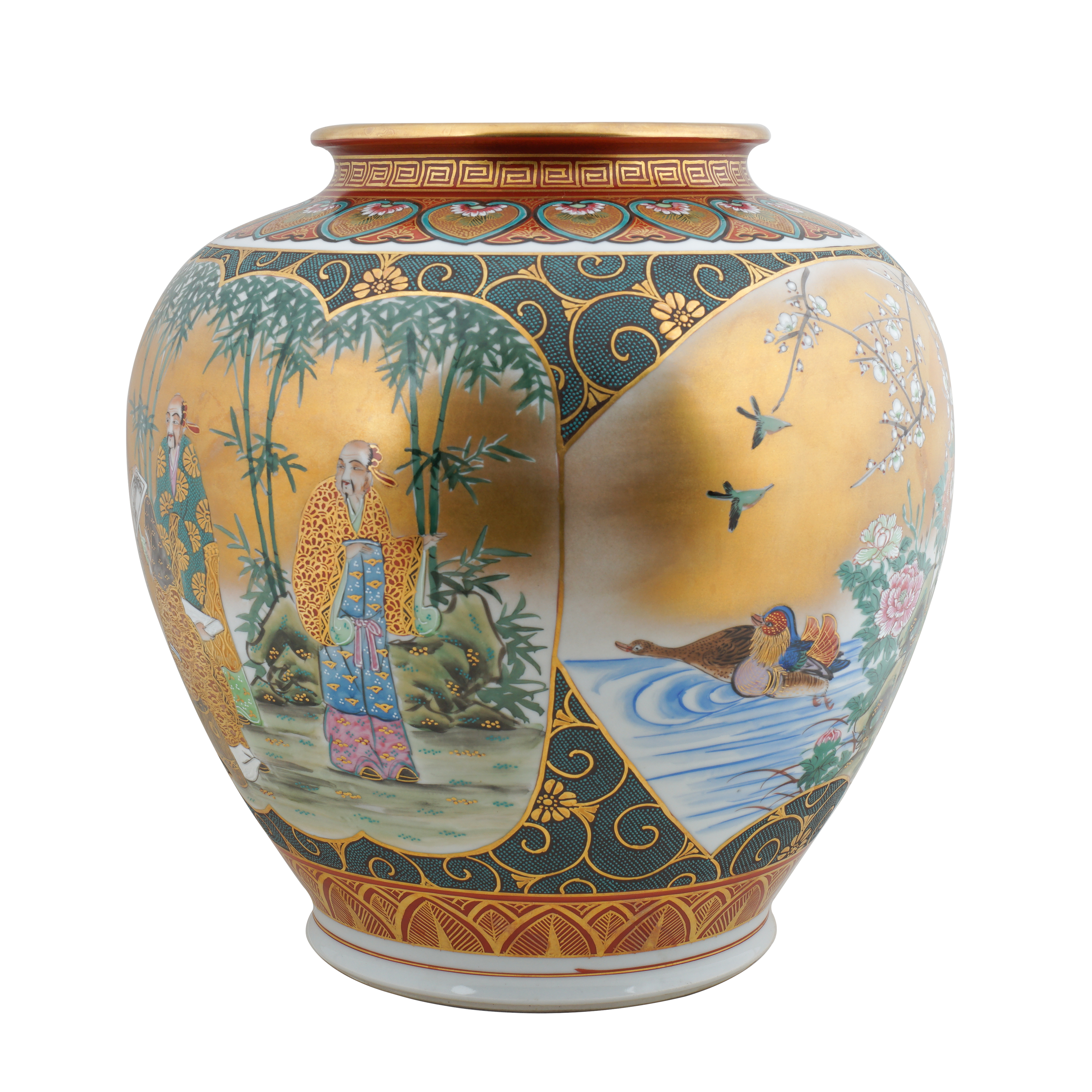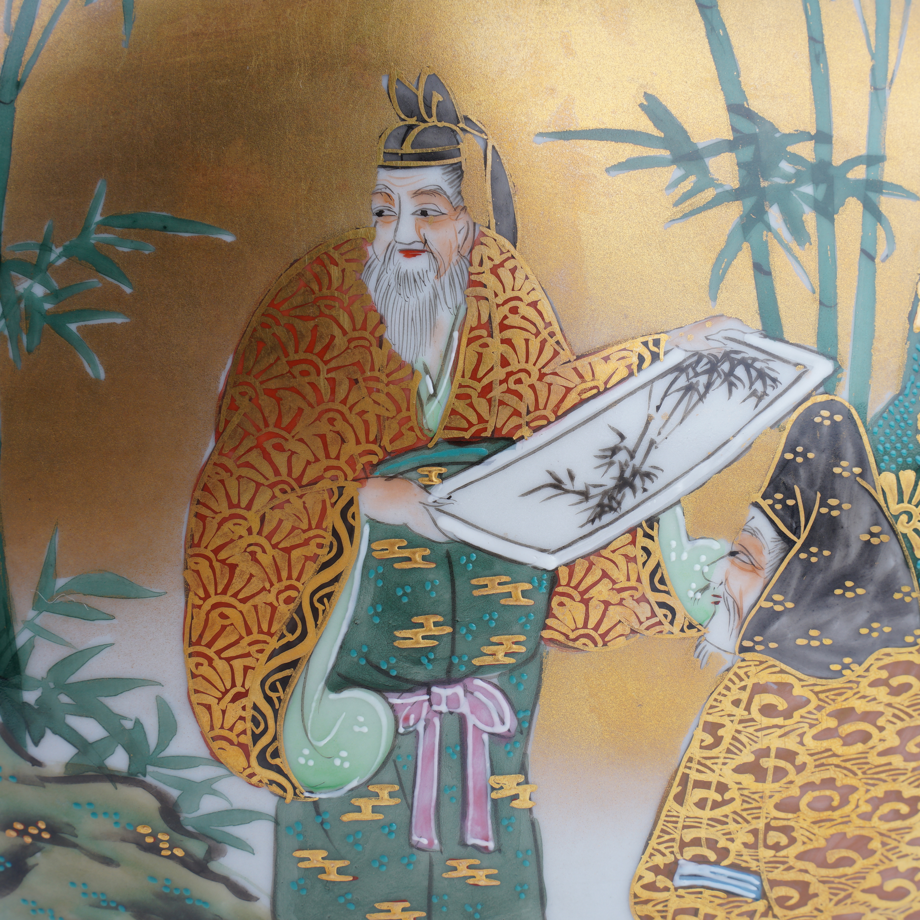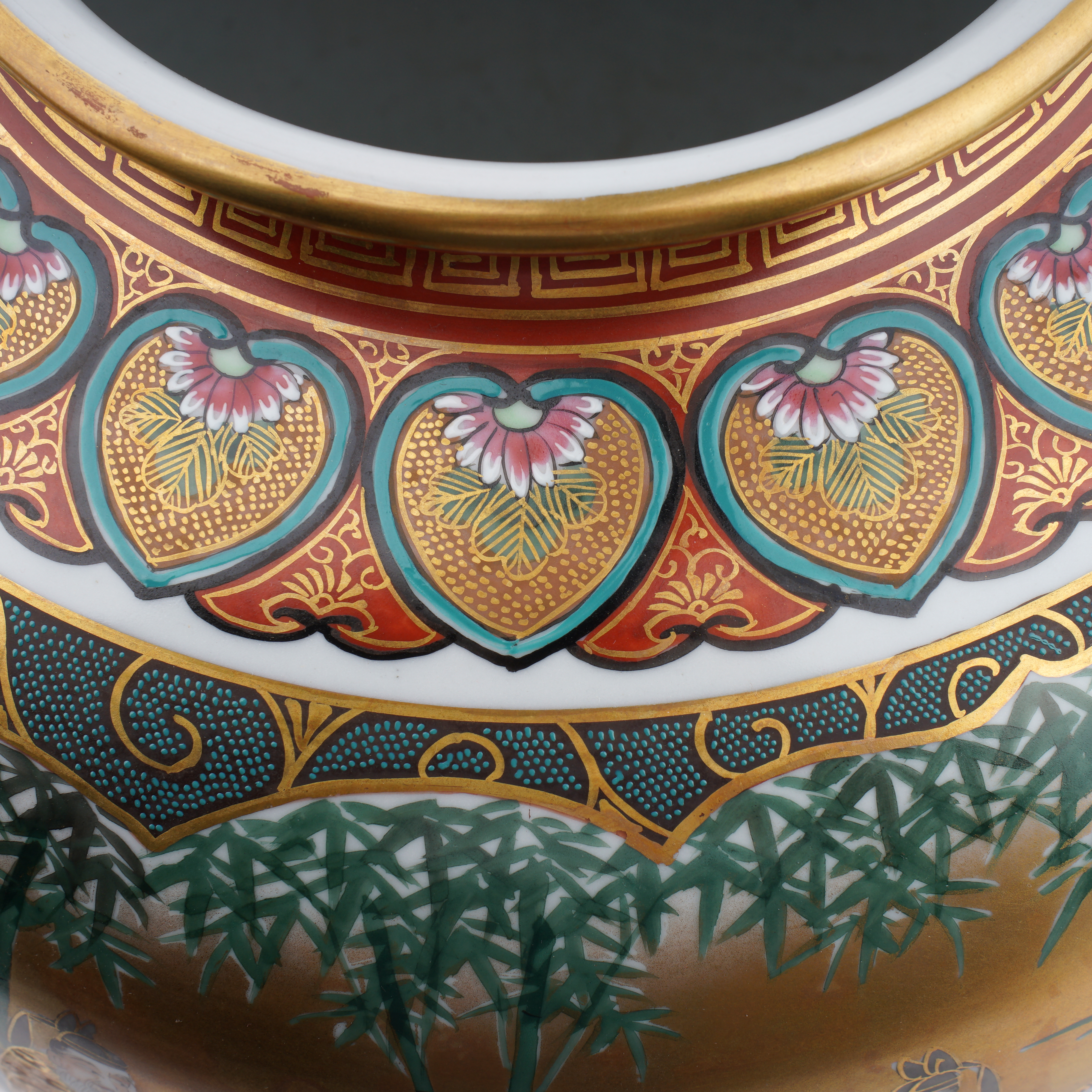 Фарфор, надглазурная ручная роспись с использованием золота, техника аочибу. Стиль кодофу кинсаде. Печать, клеймо.