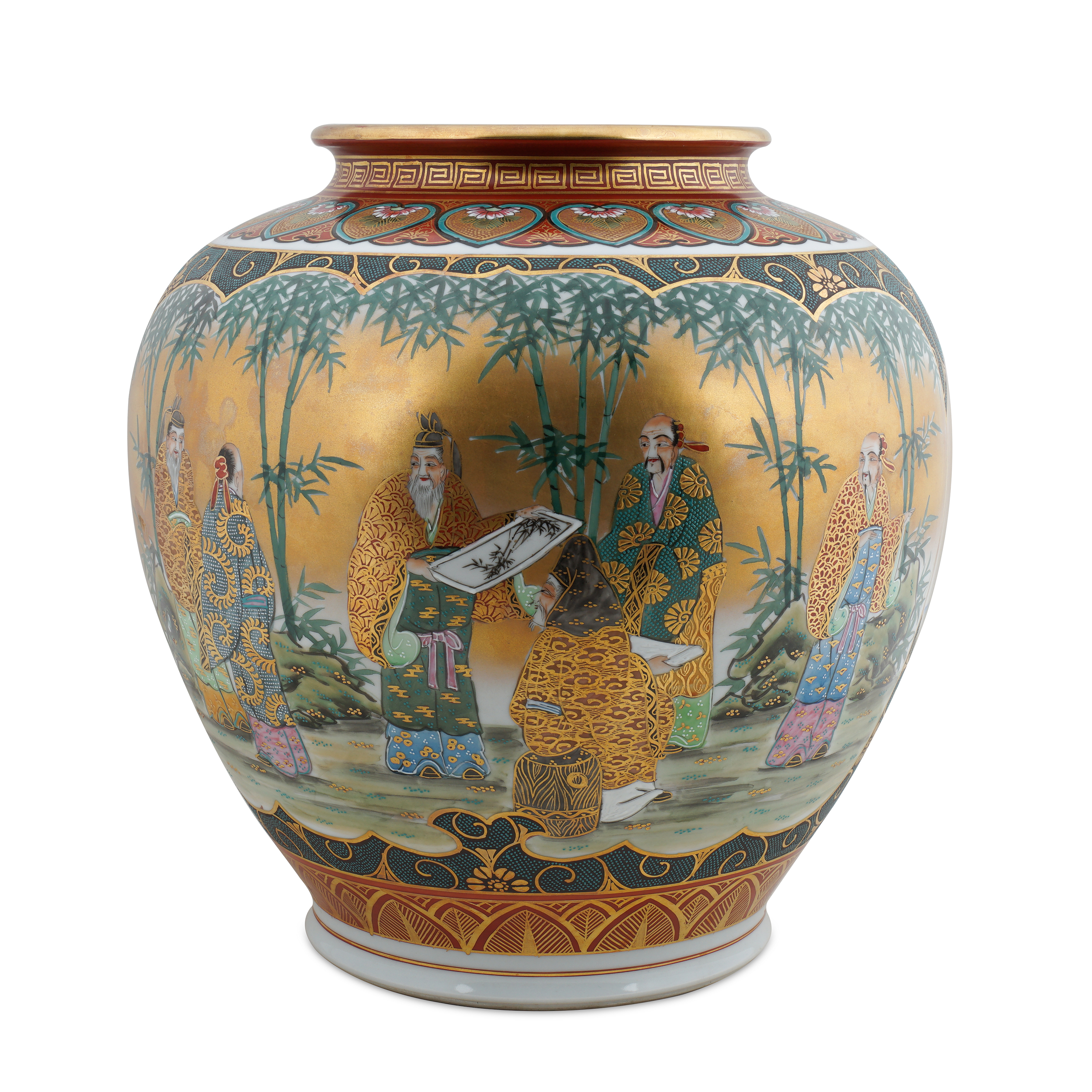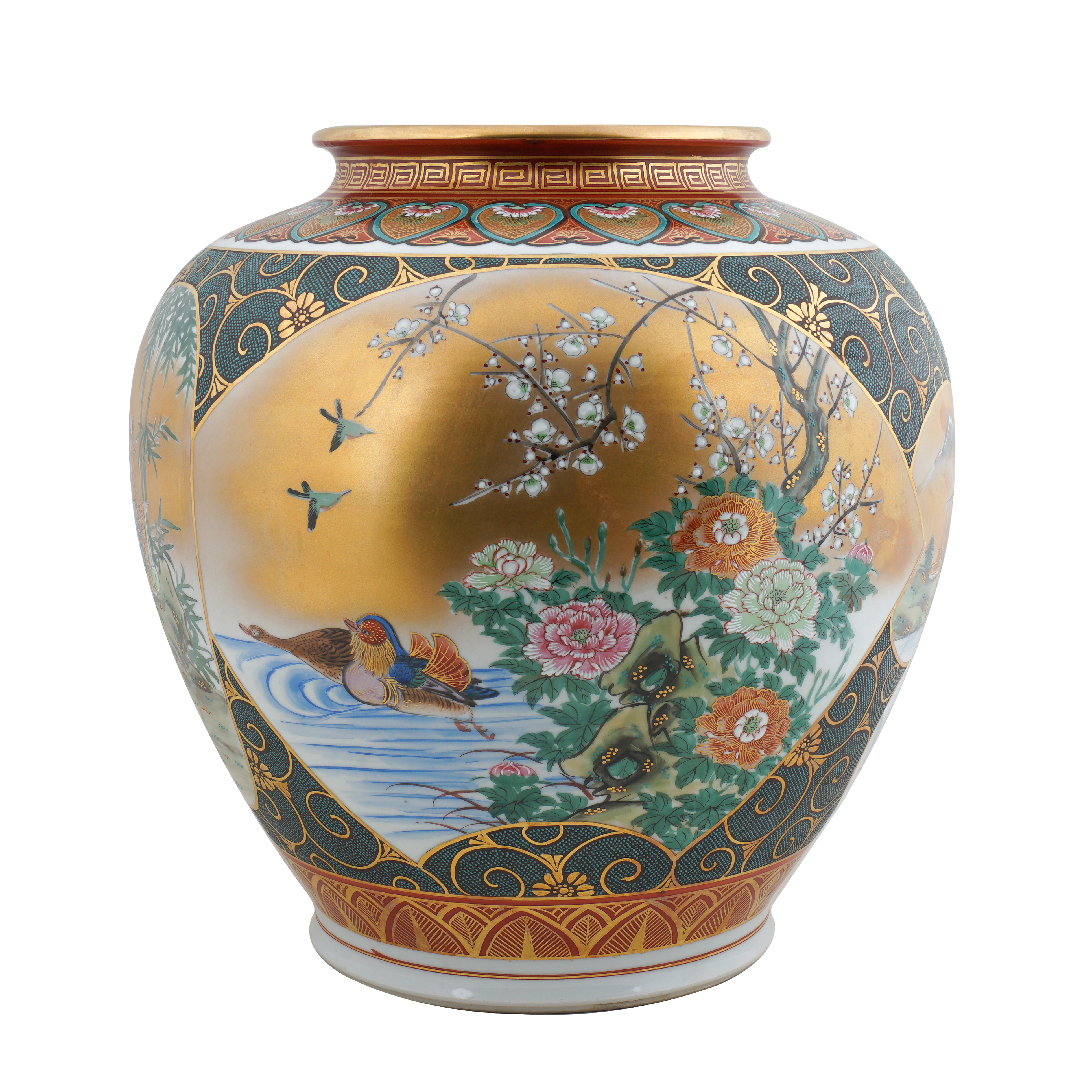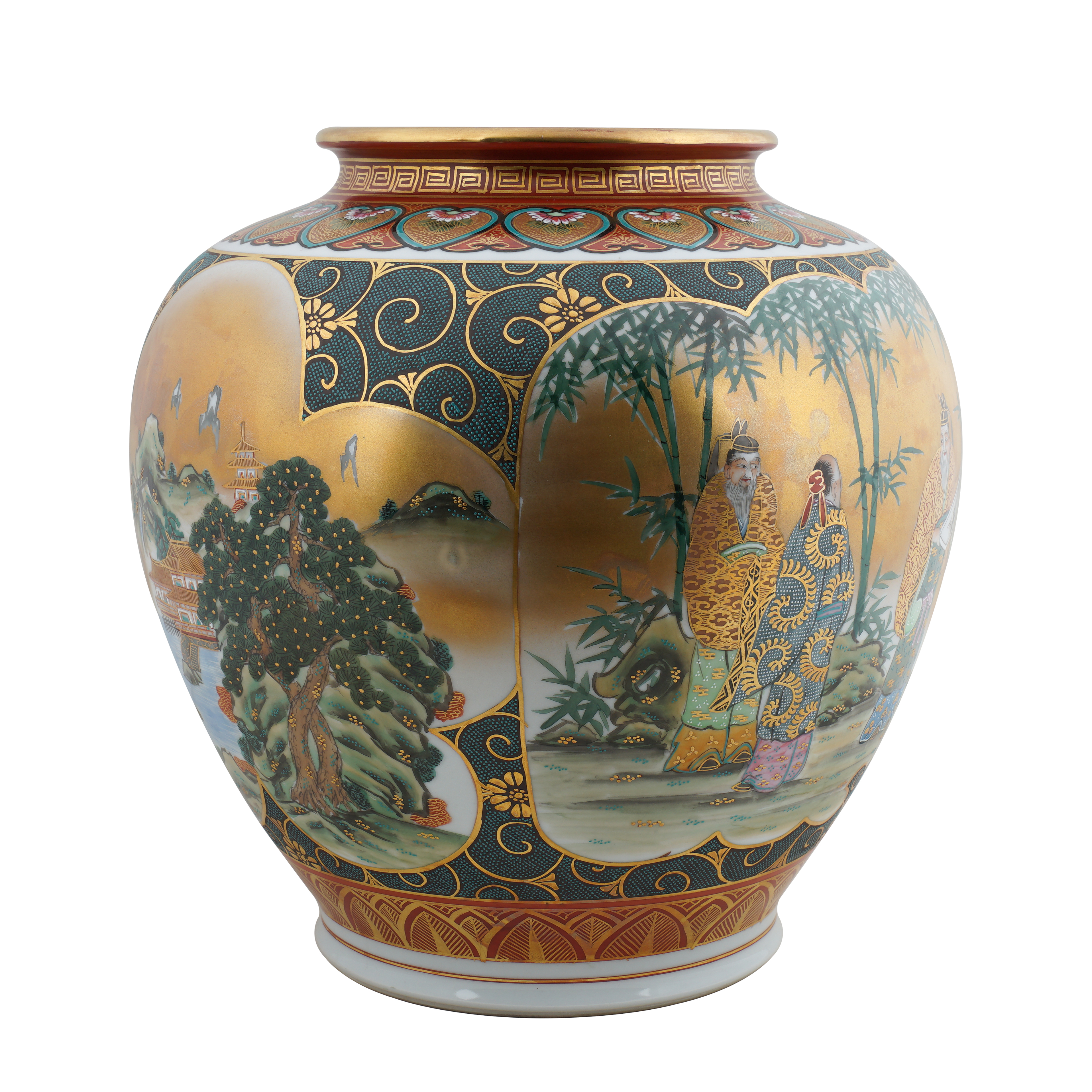 Фарфор, надглазурная ручная роспись с использованием золота, техника аочибу. Стиль кодофу кинсаде. Печать, клеймо.