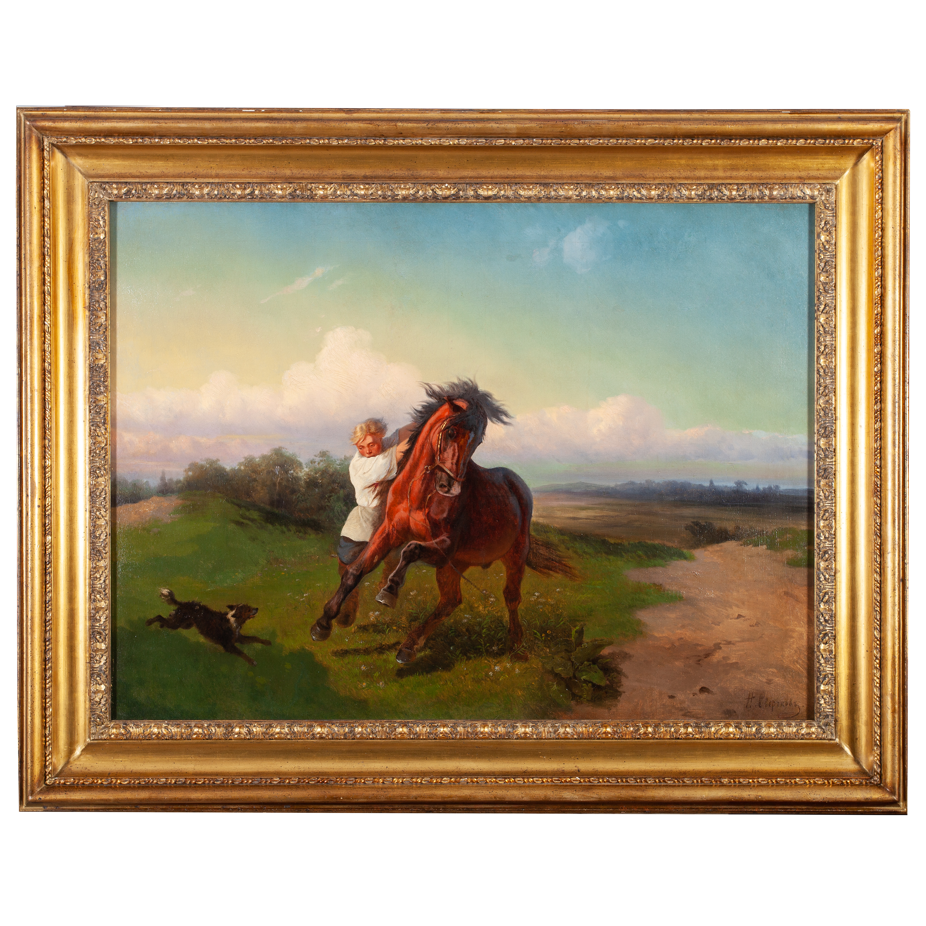 Иоганн Генрих Рамберг «Пейзаж с руинами и фигурой всадника на закате»