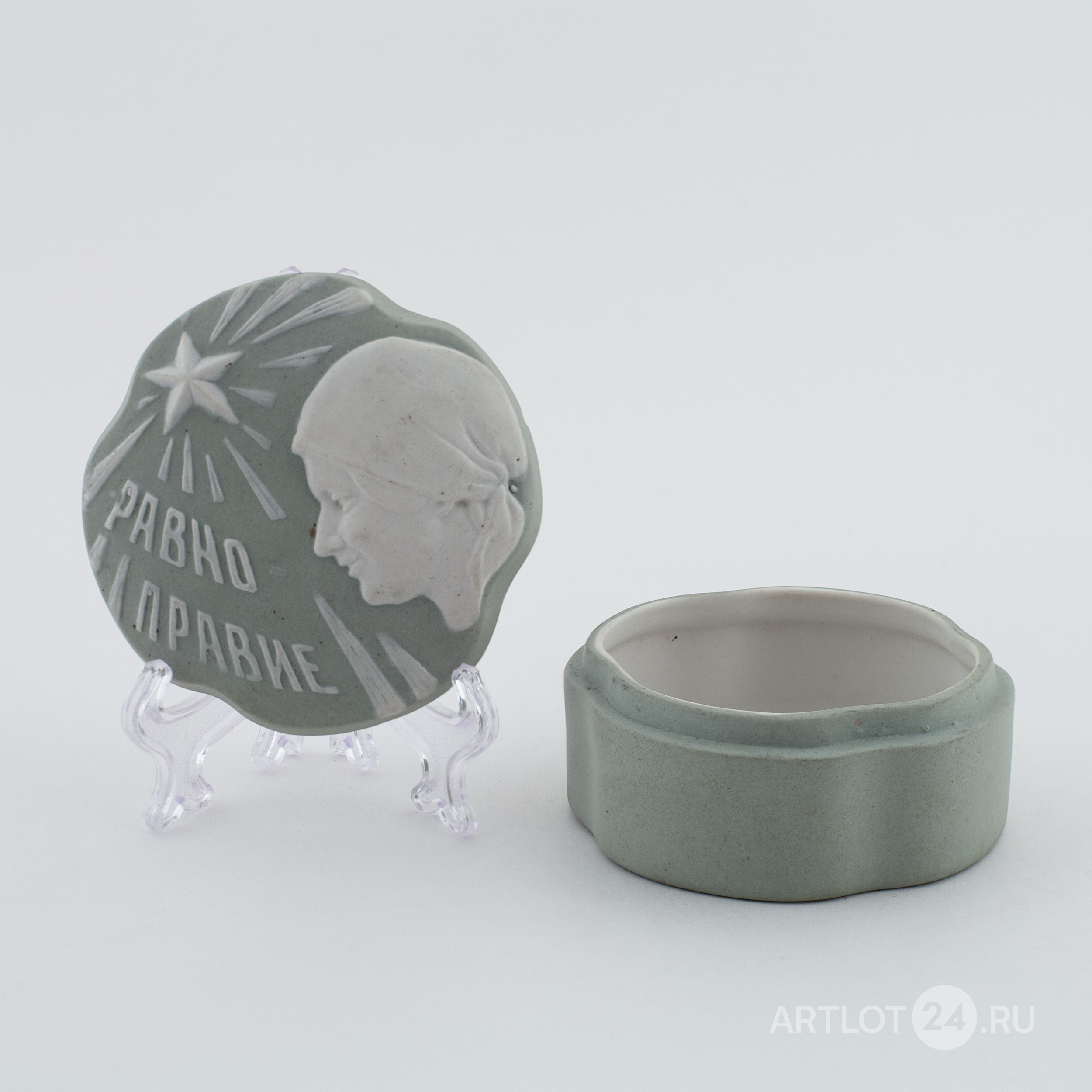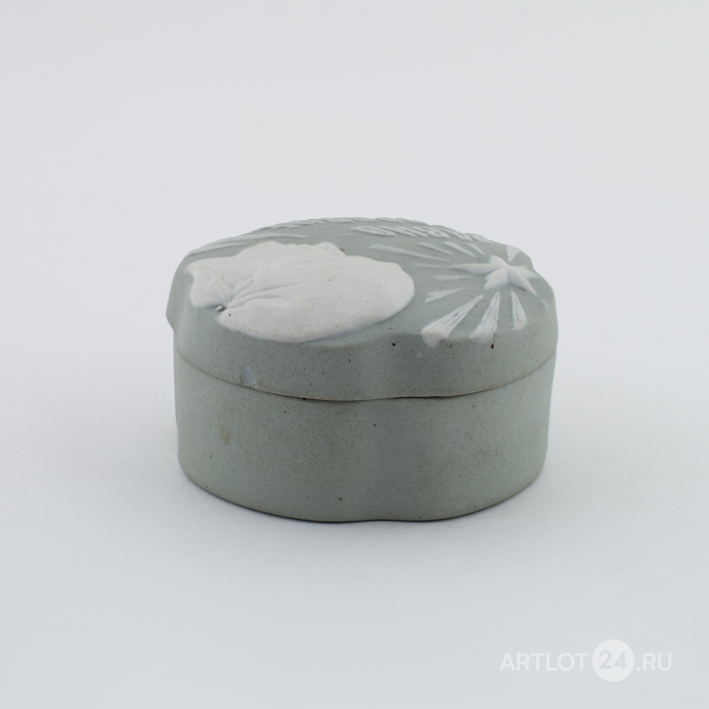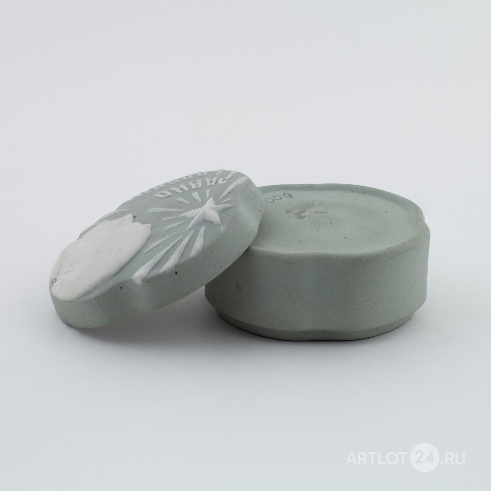 Белый и зеленый неглазурованный фарфор (бисквит), рельеф, клеймо отсутствует, цифры «1810» в тесте, Дмитровская фарфоровая фабрика, 1930-1950-е годы, диаметр – 8,5 см, высота – 4,5 см