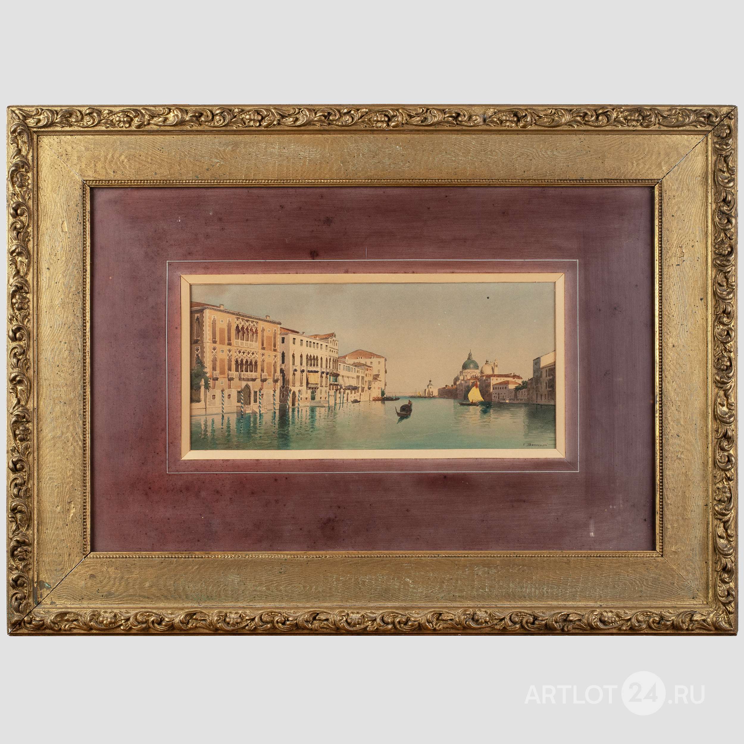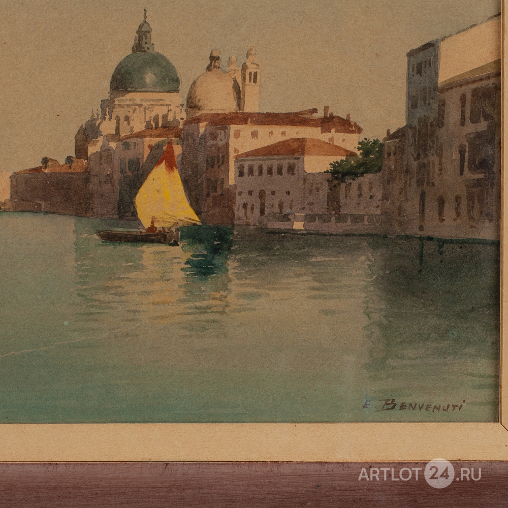 Бумага, акварель, подпись в левом нижнем углу «E. Benvenuti», итальянский художник Эудженио Бенвенути (Eugenio Benvenuti, 1881-1959), Италия, первая половина XX века, размер: 17 х 37,2 см, в раме: 54,5 х 74,6 см