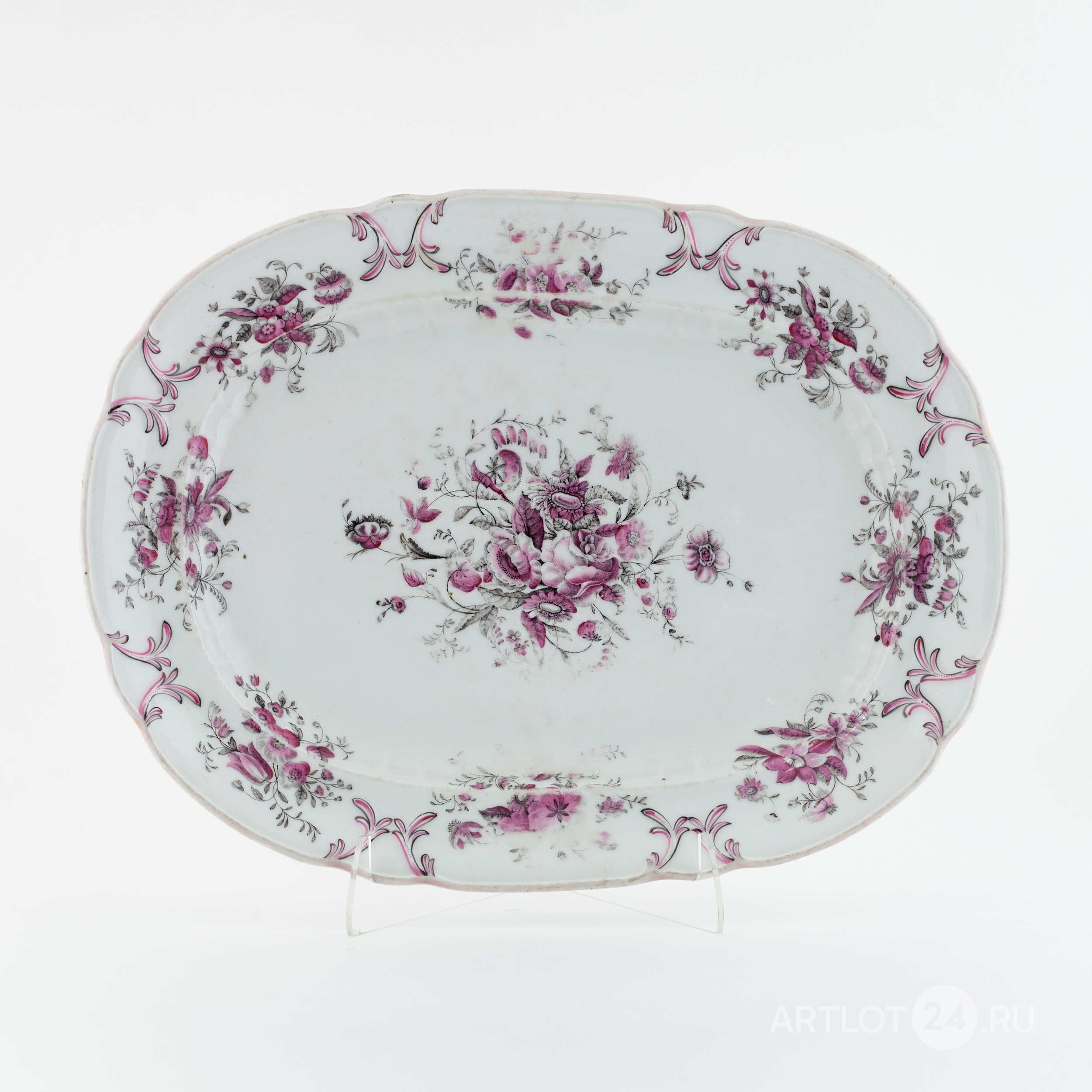 Фарфор, деколь с подрисовкой, марка подглазурная кобальтом - совмещенное «АП» завода А. Попова, Россия с. Горбуново Дмитровского уезда, длина - 37 см, ширина – 28 см