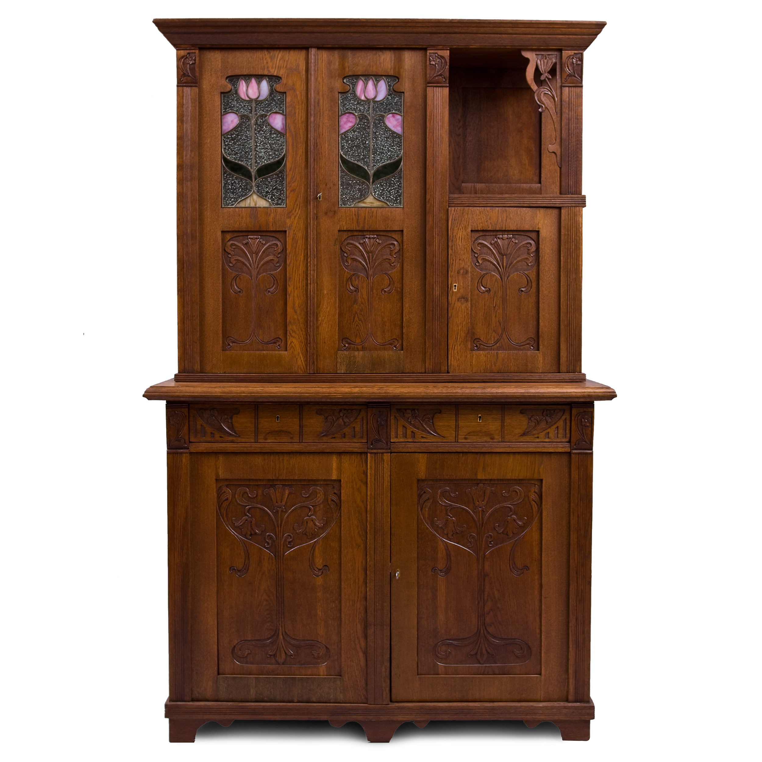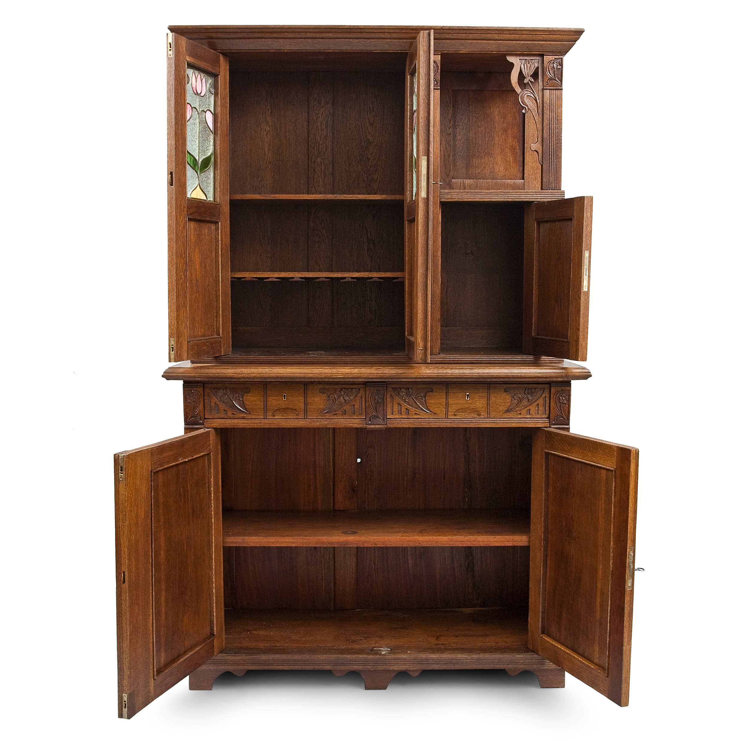 Дуб, резьба, витражное стекло, Россия, начало ХХ века, размер (в/ш/г): 203 х 128 х 55 см