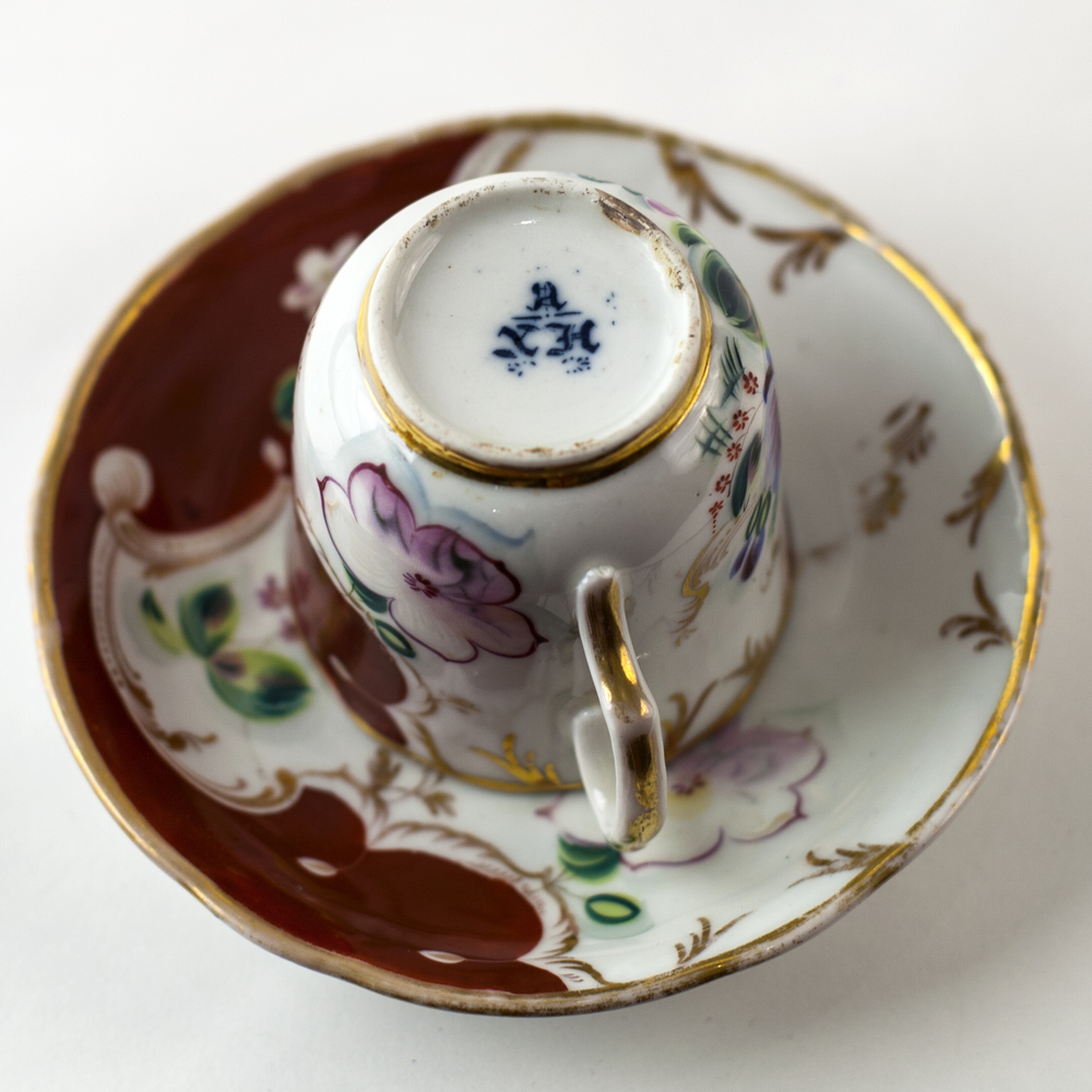 Фарфор, крытье коричневым, полихромная роспись, золочение, подглазурное клеймо фабрики Храпунова-Новаго, 1850-1870-е годы, высота - 8 см
