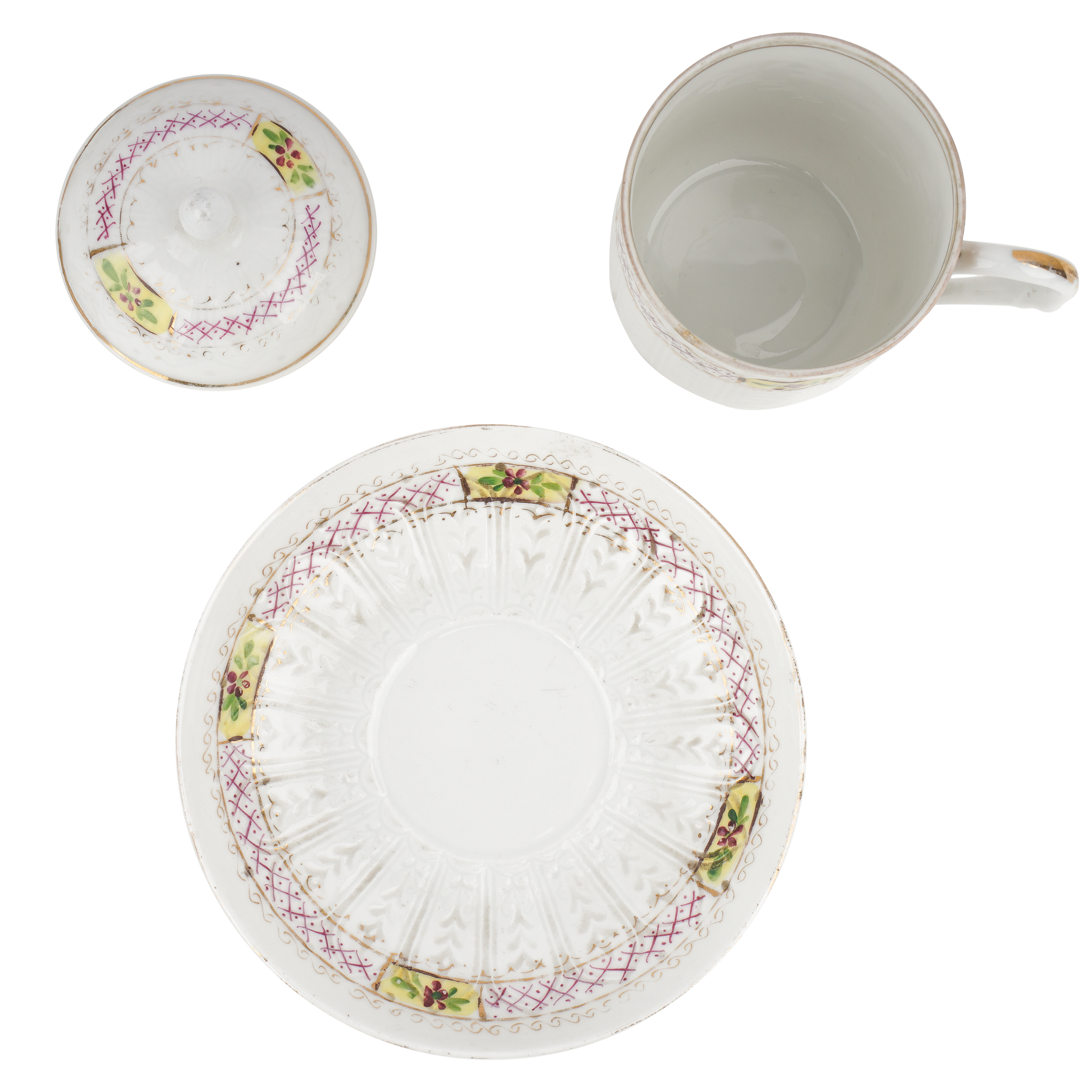 Состояние: Потертости золочения, небольшая реставрация по борту крышки, хватка; две сквозные трещины на кружке