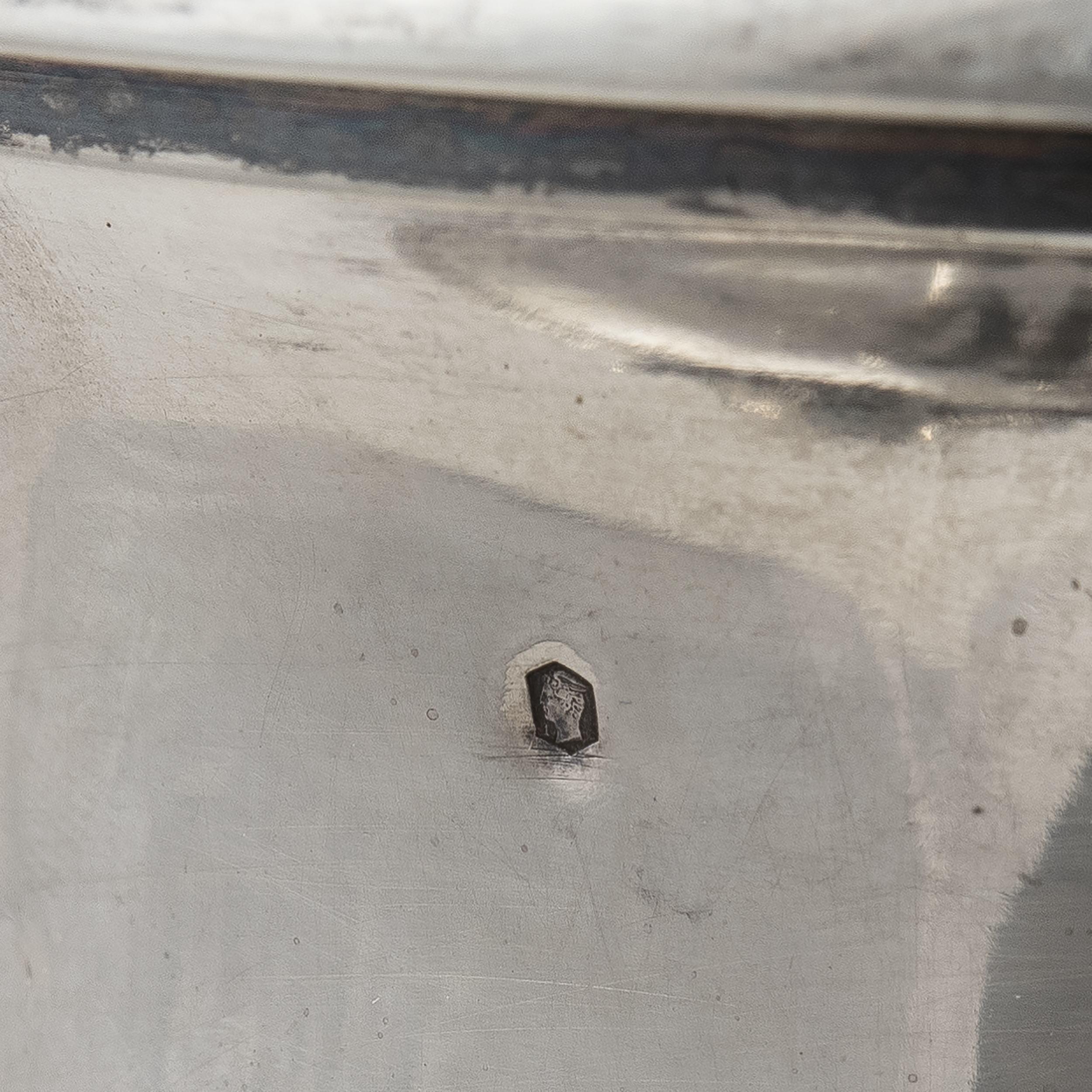 Клейма: французская экспортная марка – голова Меркурия, мастера «GF» в ромбовидном щитке, проба 830, выполнен французским мастером серебряного дела Жоржем Фалькенбергом (Georges Falkenberg , работал с 1894 по 1928);