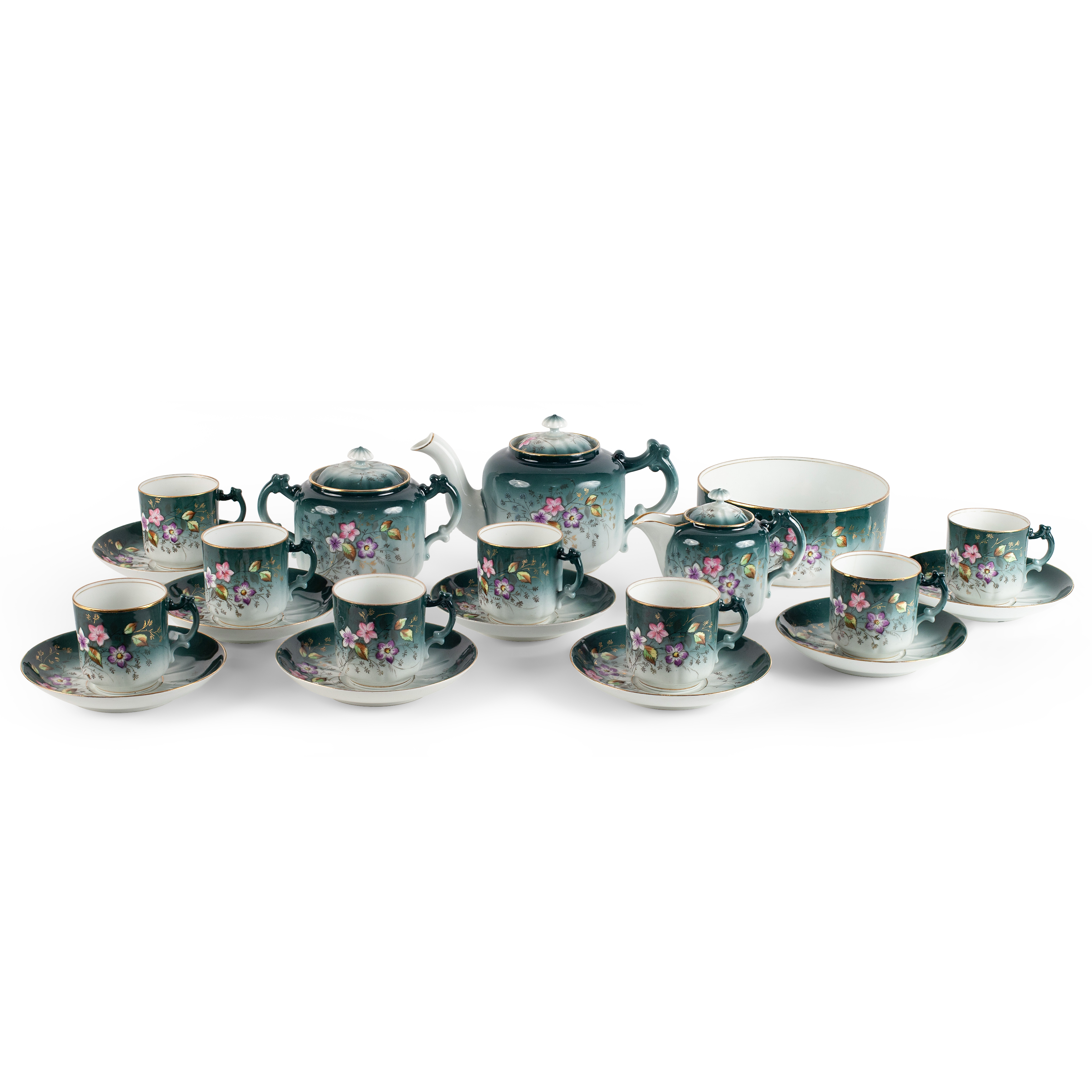 Чайник, сахарница, молочник, восемь чайных пар и полоскательница (20 предметов);