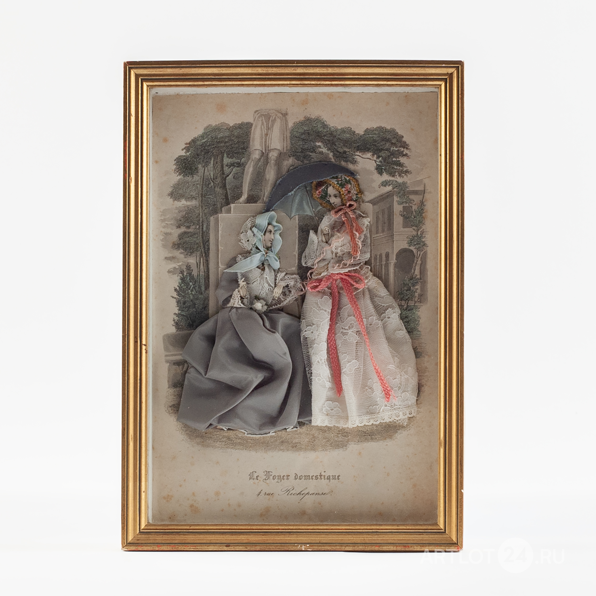 В основе литография французской периодики XIX века. Бумага, ткани, кружево, бисер, вышивка,