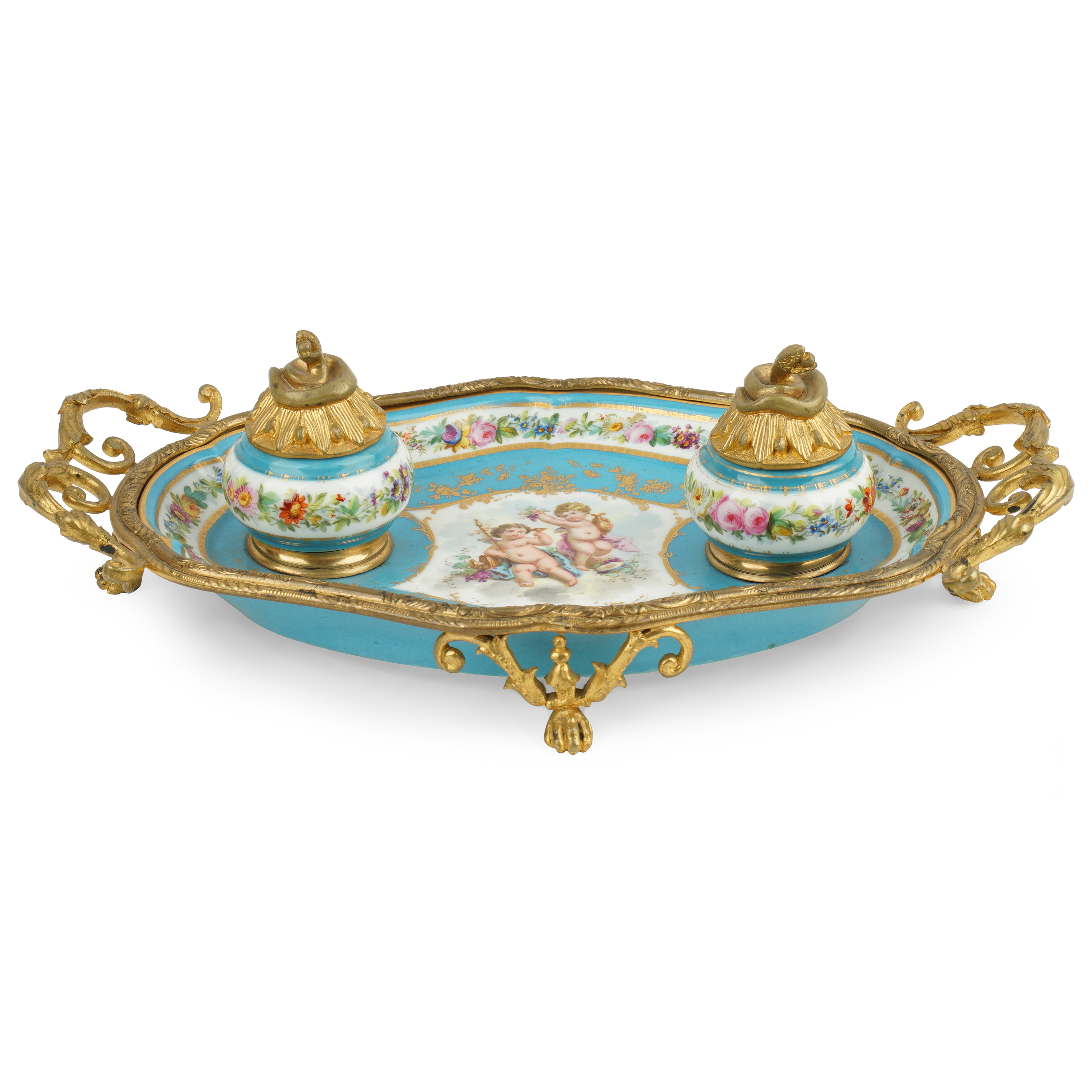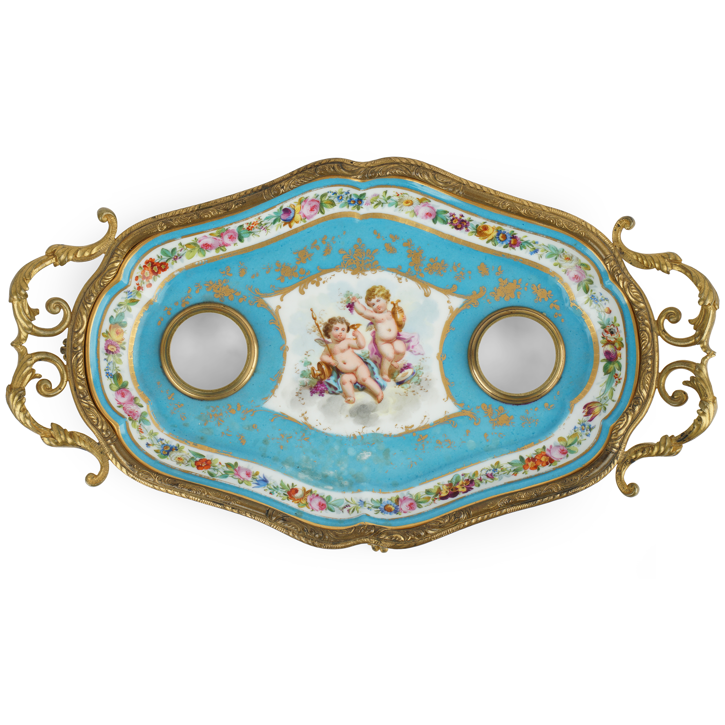 Фарфор, надглазурная роспись, золочение, бронза, литье, чеканка. Марки отсутствуют.