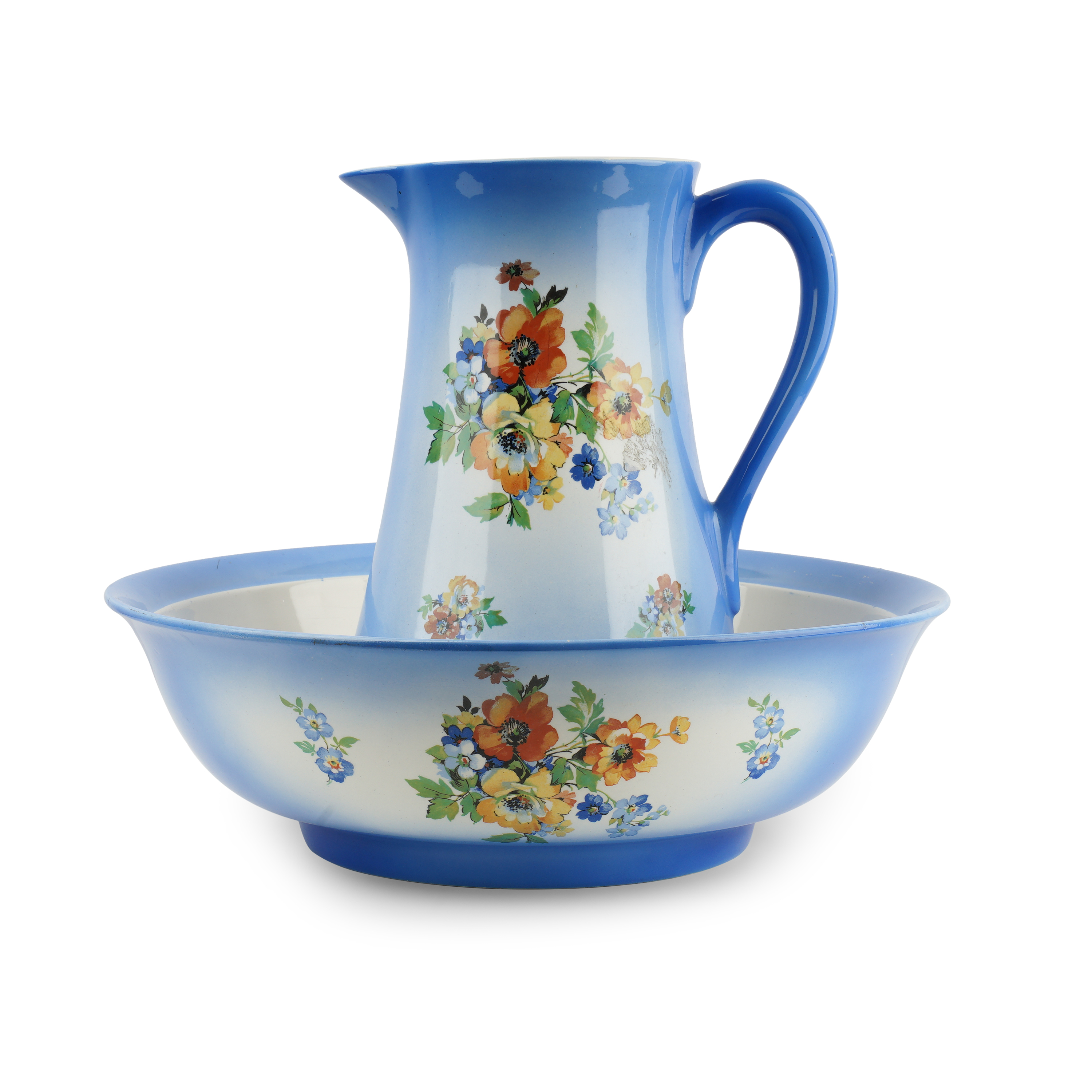 Размеры: диаметр таза 40 см, высота кувшина 30 см