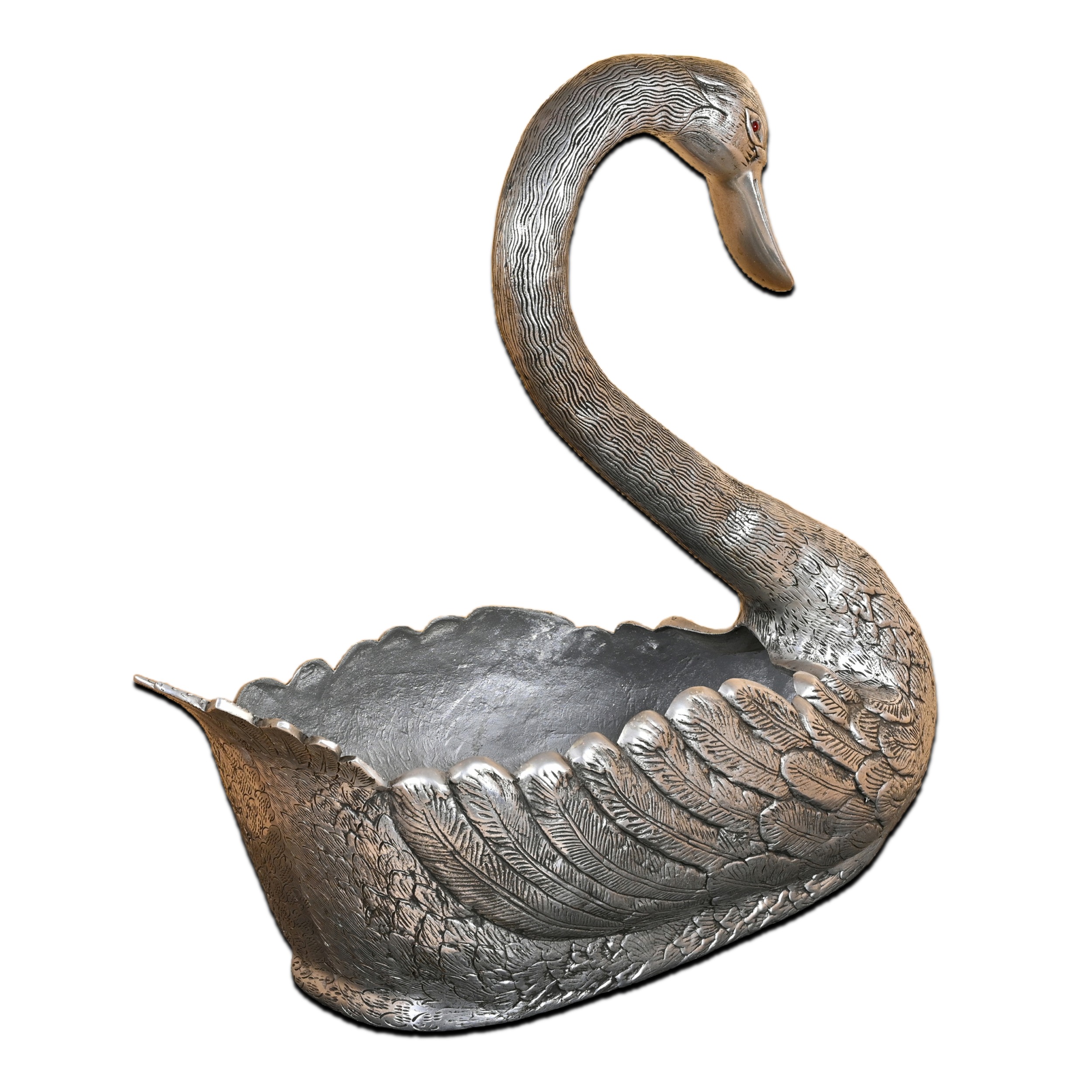 Металл, литье, штихельная резьба, серебрение, клеймо-монограмма «МС» в основании, размер (в/ш/д): 45 х 23 х 48 см.
