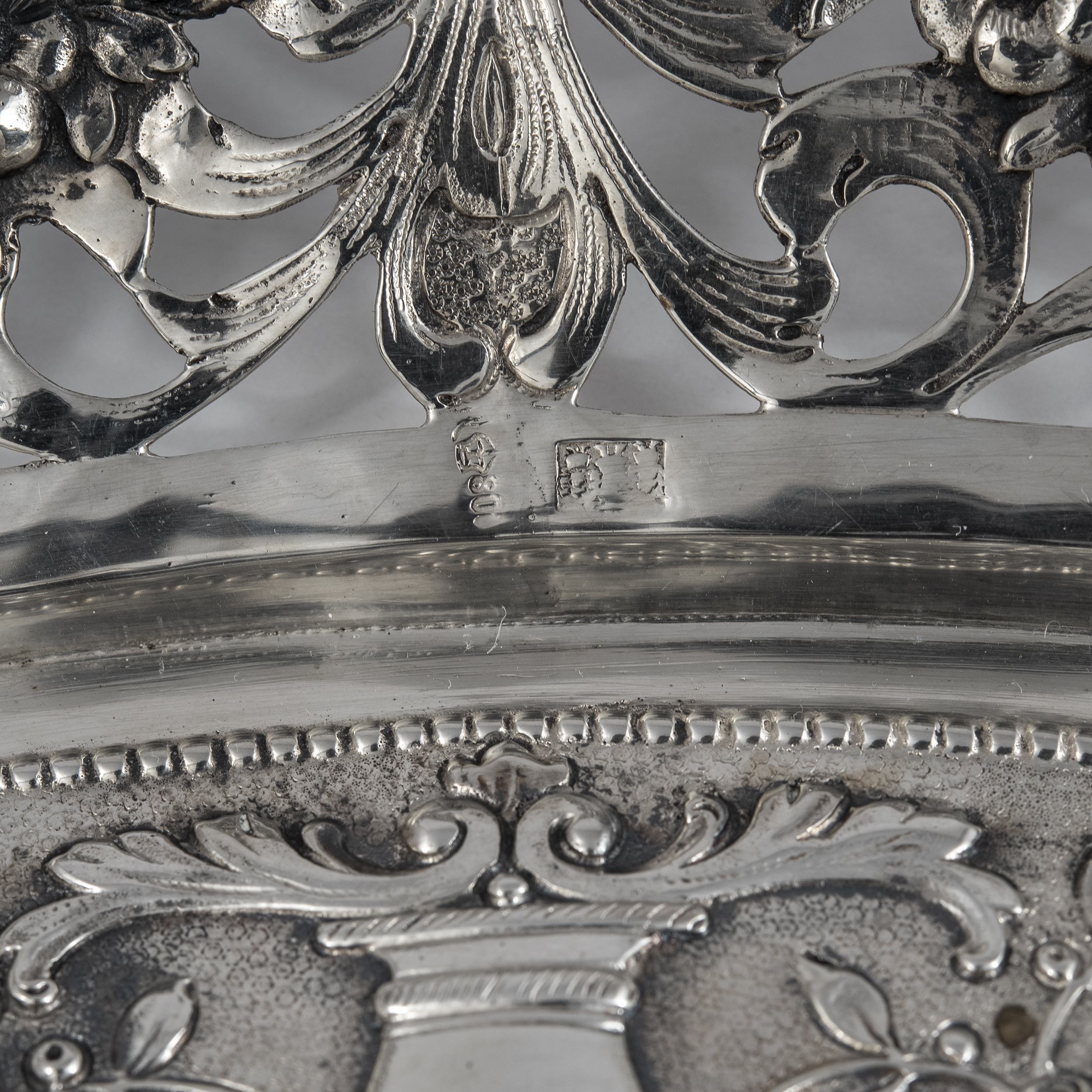 800 проба, клеймо в виде «полумесяца и короны».