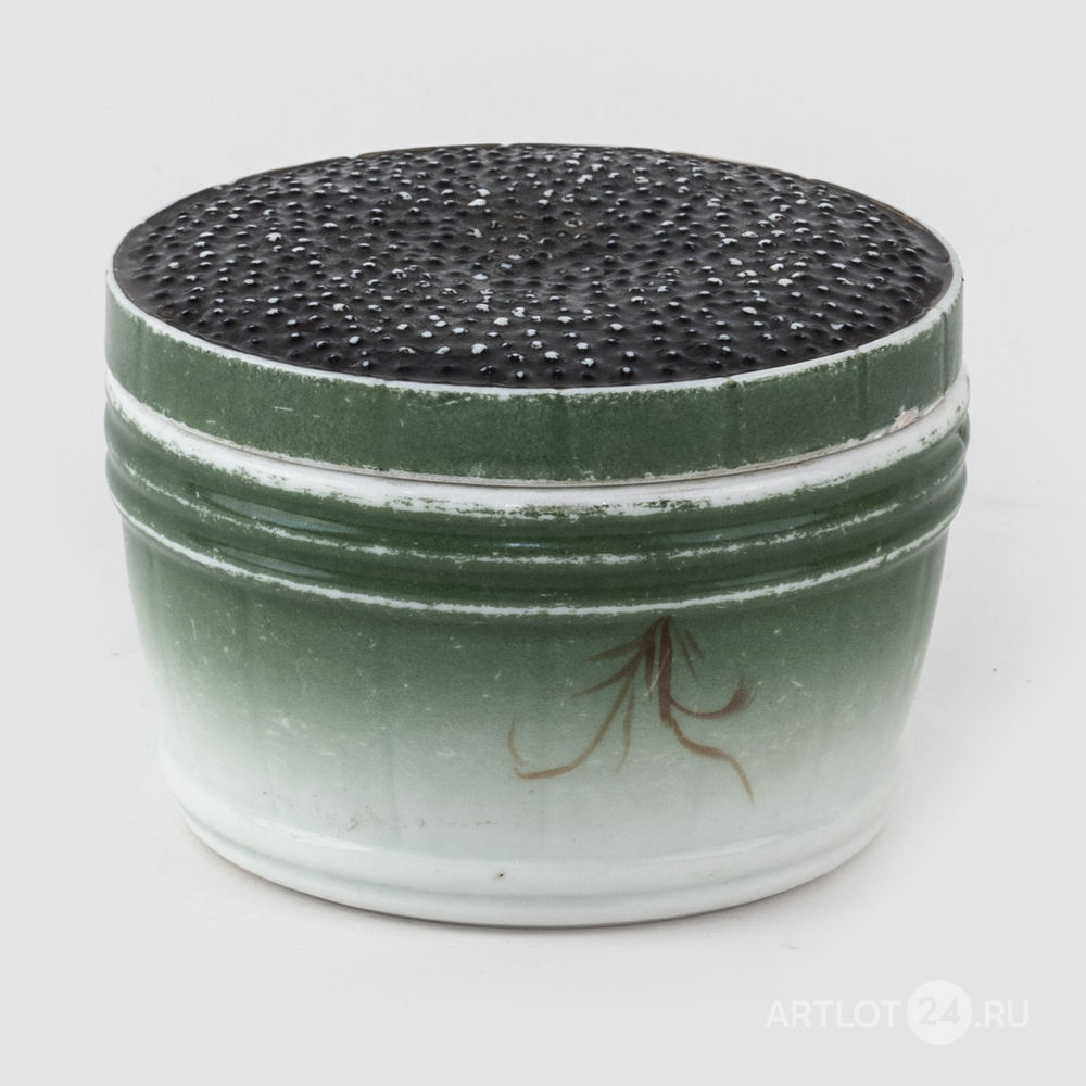 Фарфор, рельеф, крытье зеленым, полихромная роспись, марка красная печатная «Фабрик. Гарднеръ въ Москве» под двуглавым орлом, фабрика Ф. Я. Гарднера, Российская империя, 1870-е - 1890-е гг., высота - 7,5 см