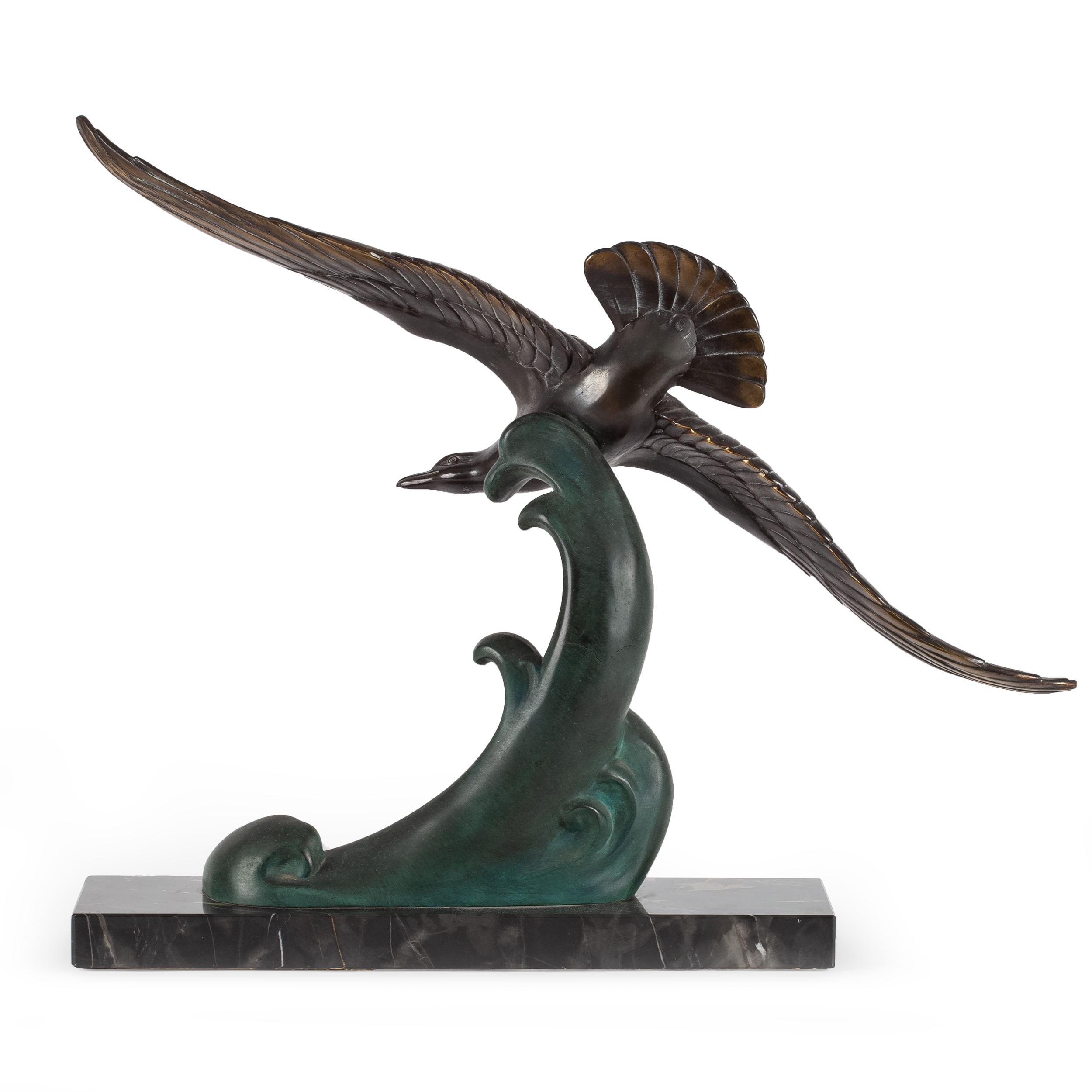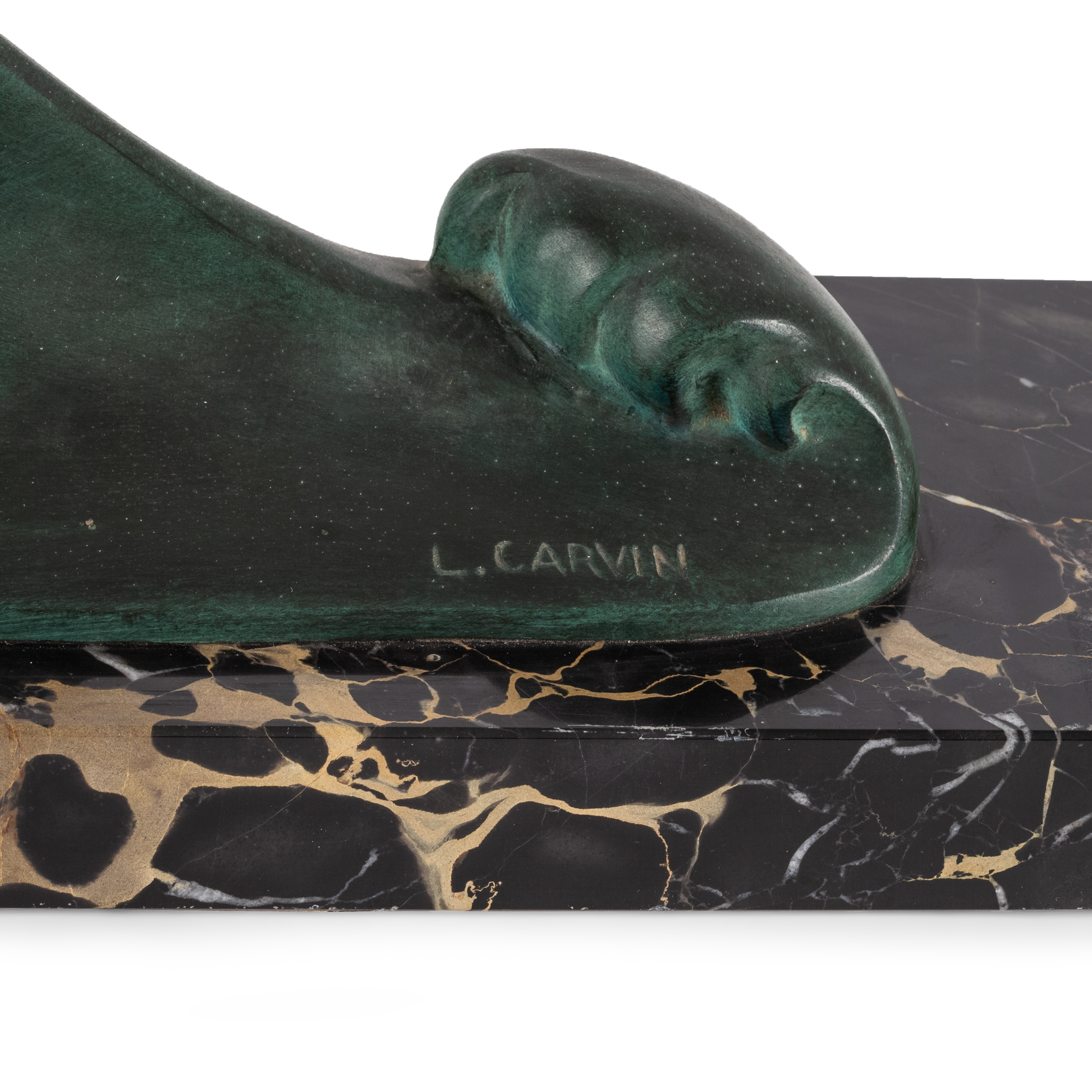 Бронза, литье, проработка, цветное патинирование, мрамор, подпись в массе «L. Carvin»