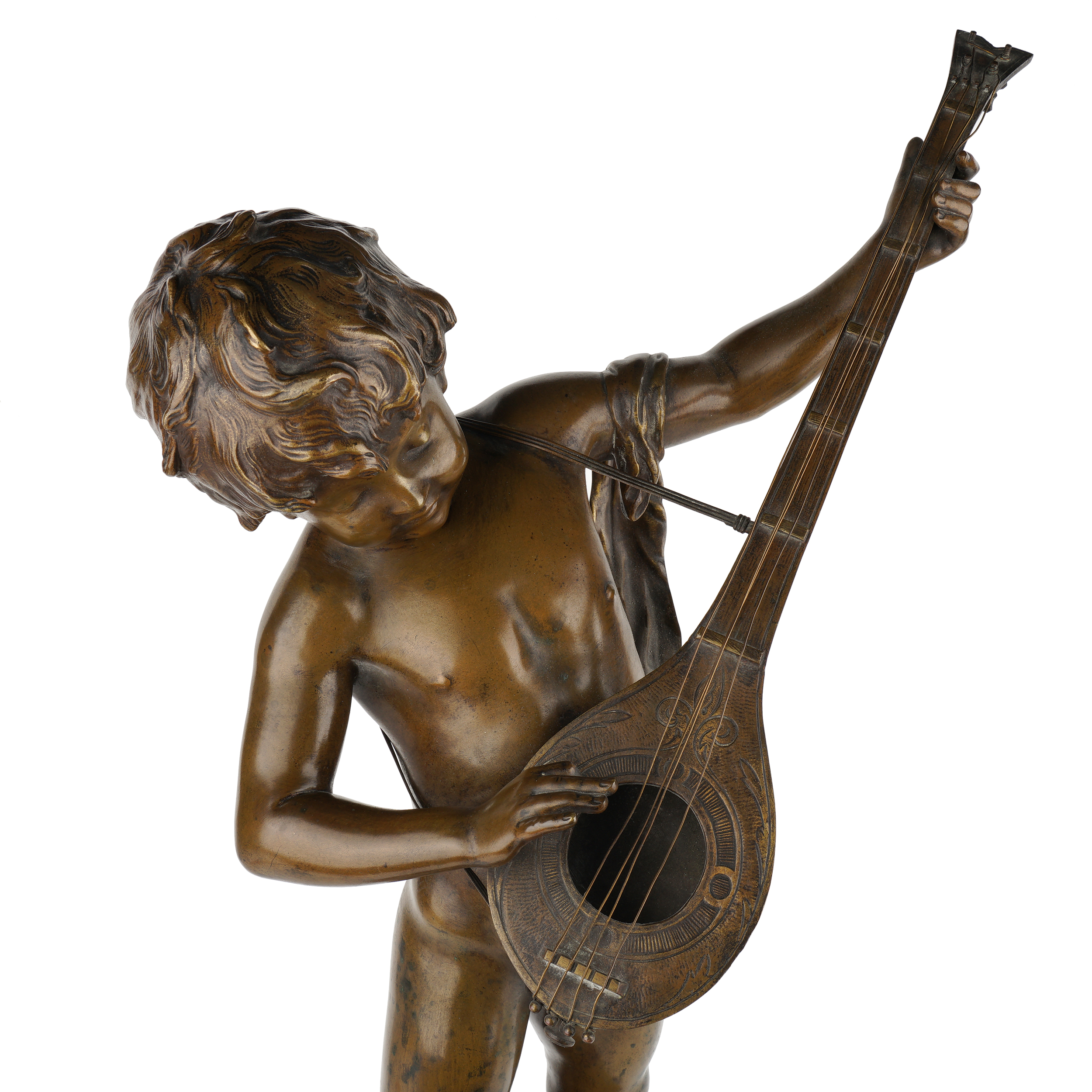 По модели французского скульптора Луи-Огюста Моро (Louis-Auguste Moreau, 1855-1919) под оригинальным названием «Прелюдия». Бронза, литье, проработка, тёмно-коричневое патинирование, в основании «Prelude», на позёме в литье факсимиле подписи скульптора «Auguste Moreau», «EP»; высота – 50 см