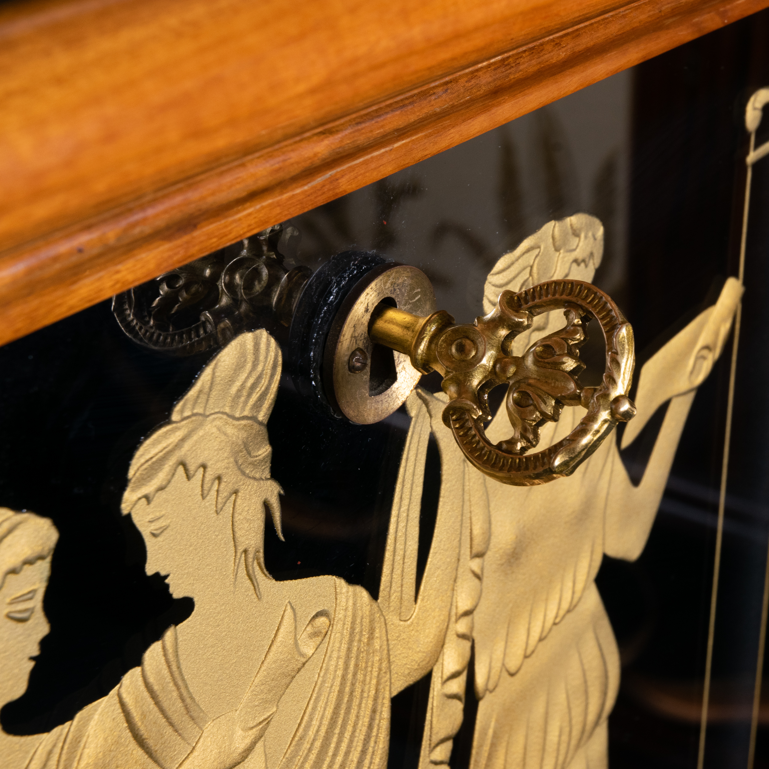Дерево, бронзовые накладки, эгломизе, стекло.