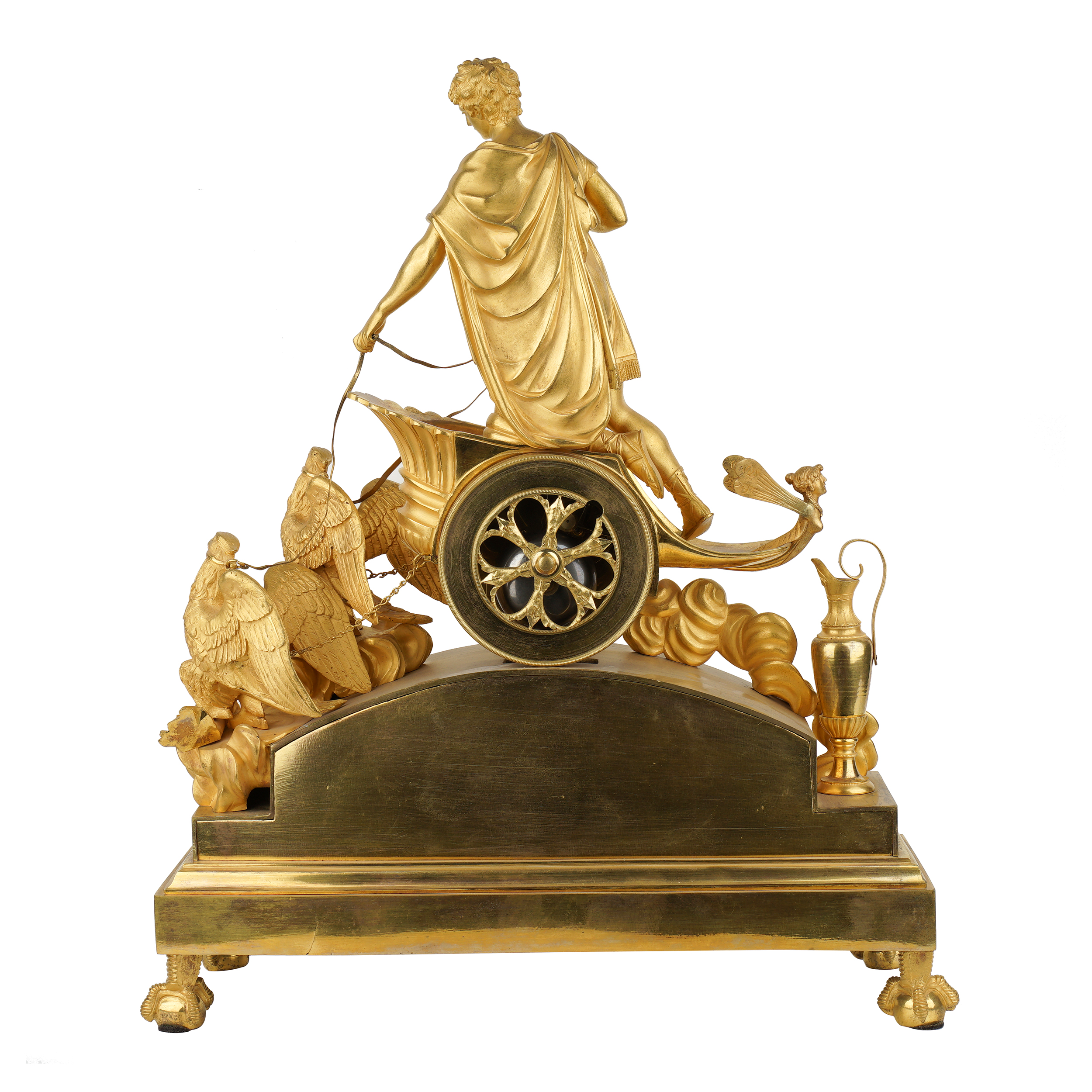 Состояние: В хорошей сохранности; трещинки на крыльях нимфы, венчающей колесницу. Проведена профилактическая чистка механизма. Ключ и маятник в комплекте.