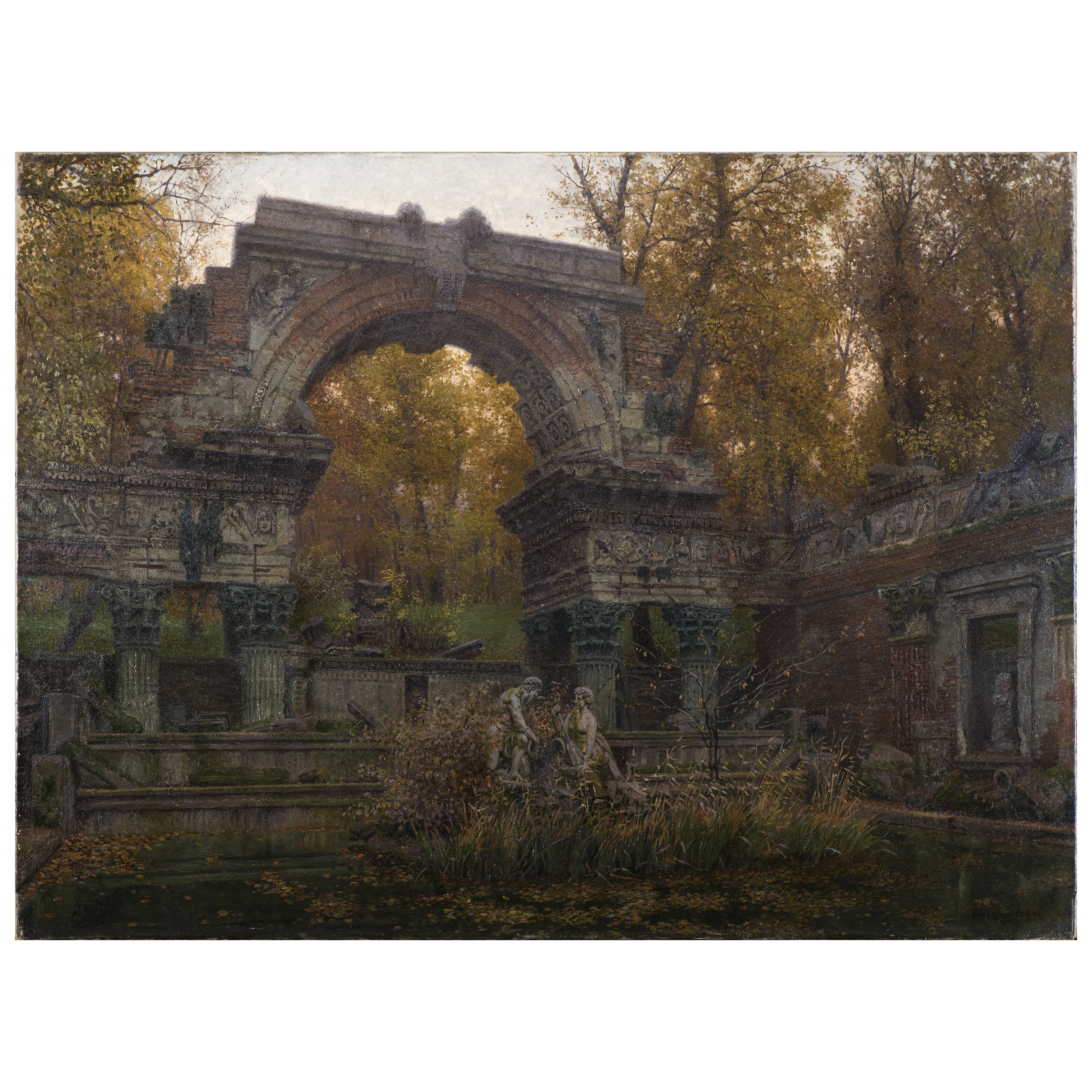 Холст, масло, в правом нижнем углу авторская подпись «Hans Ranzoni 914», живописец, мастер романтического архитектурного пейзажа Ханс Ранцони (Hans I Ranzoni, 1868-1956)