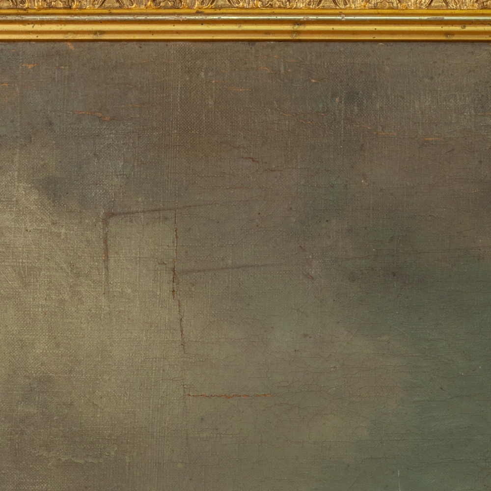 Состояние: Провисание холста, несколько трещин по красочному слою, осыпи на раме