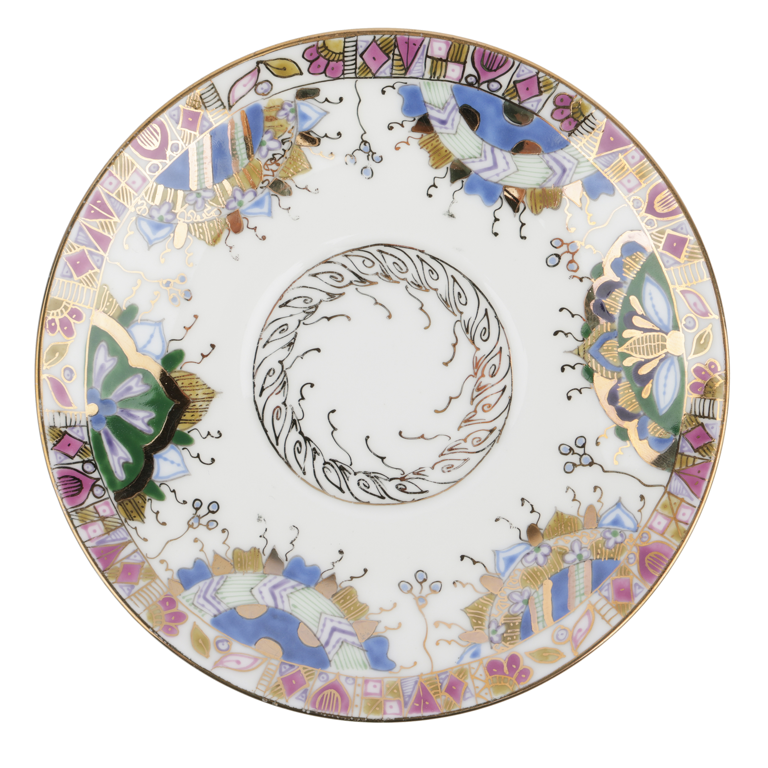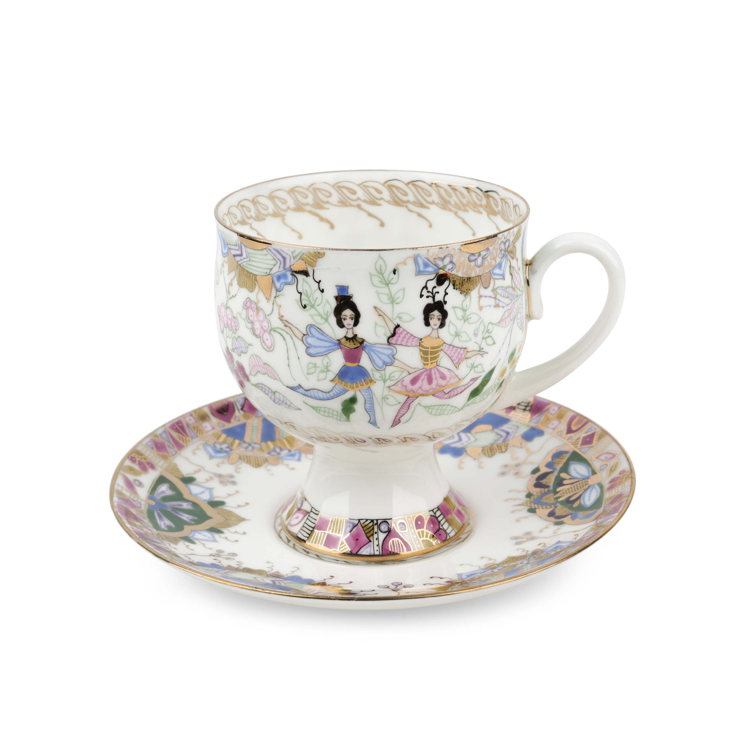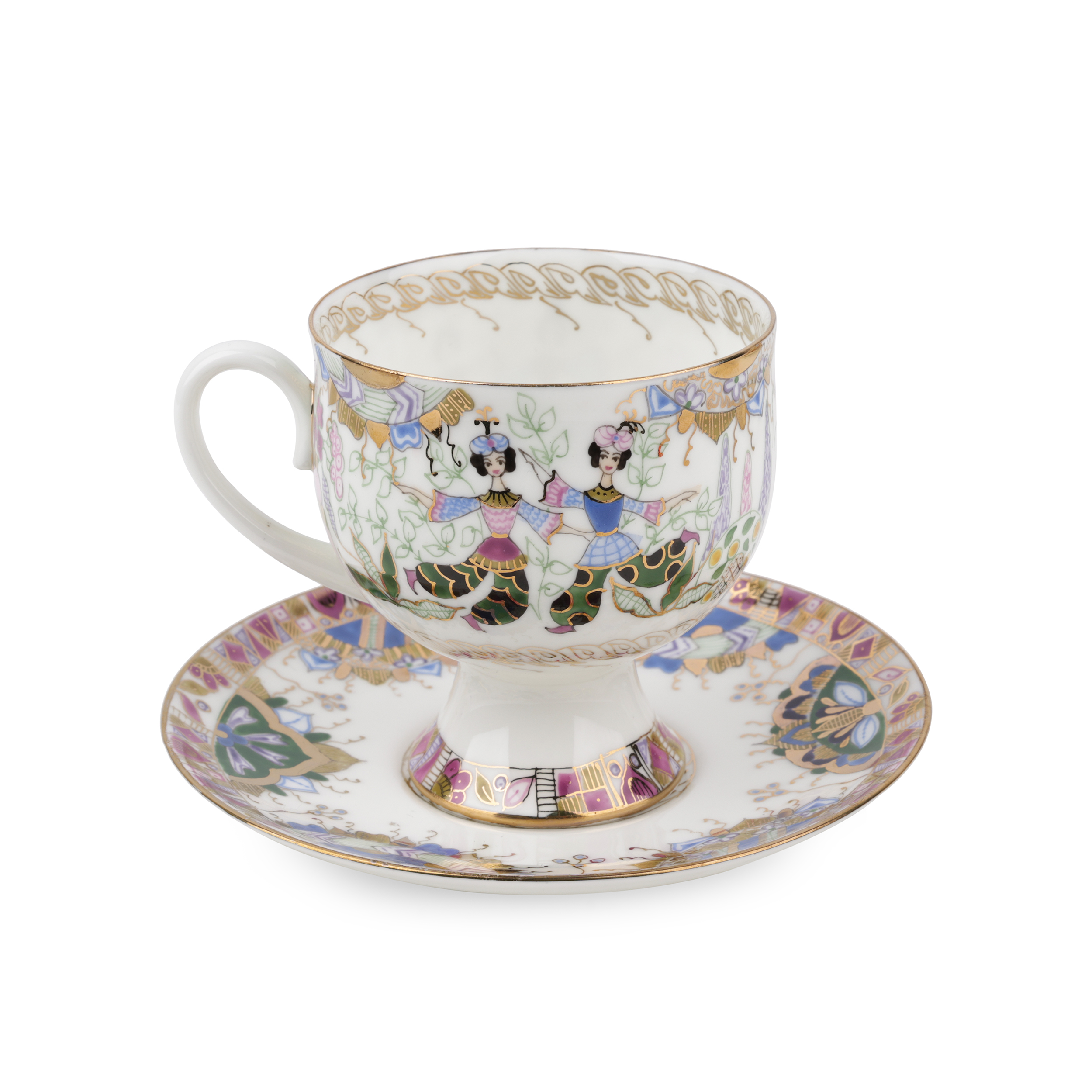 Костяной фарфор, ручная надглазурная роспись, золочение. Марка: красная «ЛФЗ / MADE IN RUSSIA», 1-ый сорт, подпись.