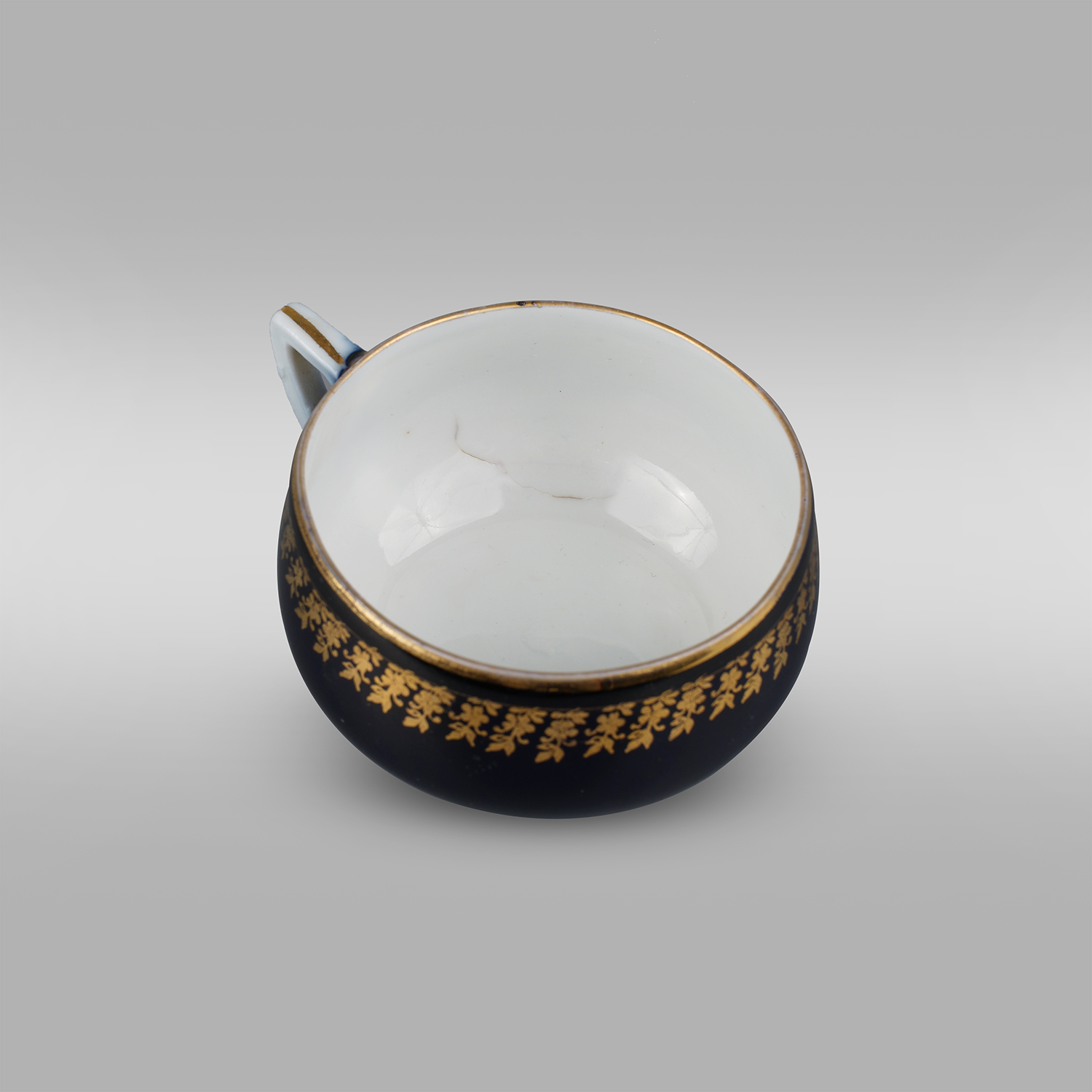 Состояние: Потертости золочения, дефект при обжиге внутри чашки