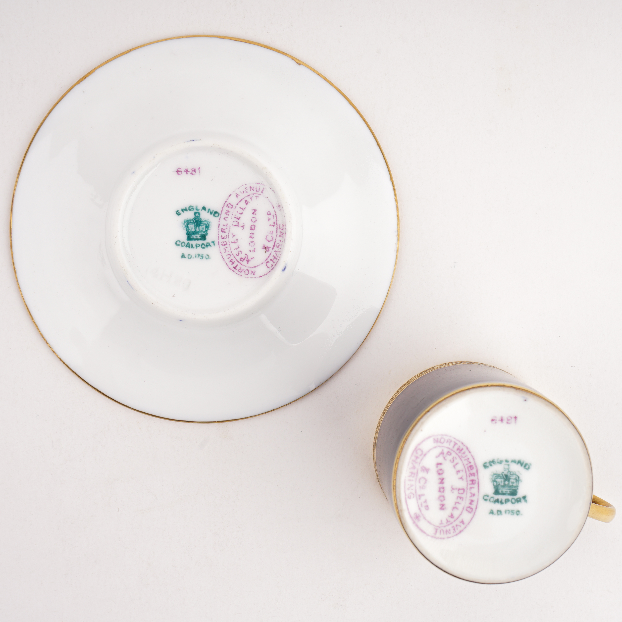Фарфор, кобальт, внутреннее золочение, золотой кант с цировкой