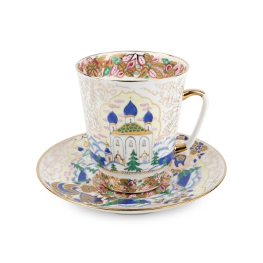 Костяной фарфор, ручная роспись, золочение. Марка: красная «ЛФЗ / MADE IN RUSSIA», 1-ый сорт, подпись.