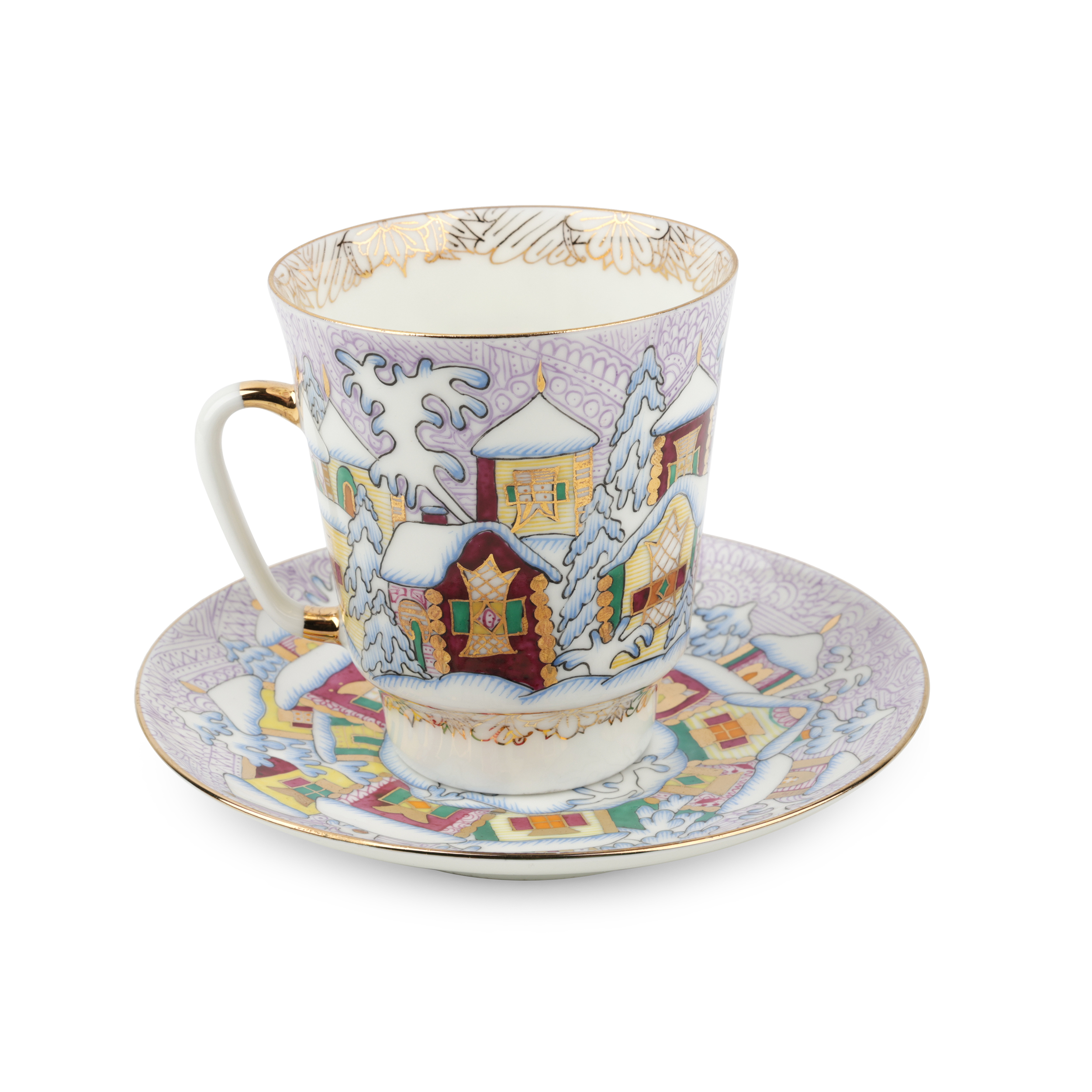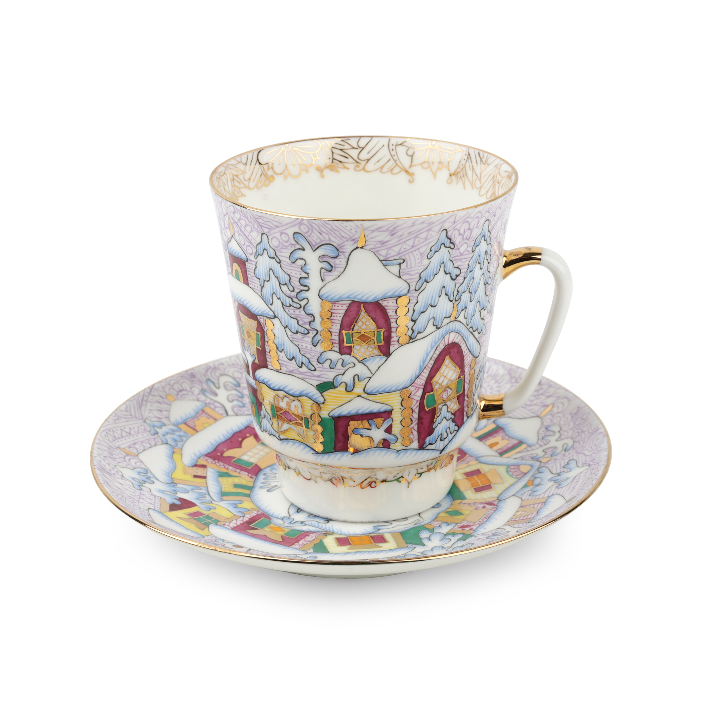 Высота чашки 7,5 см, диаметр блюдца 12 см