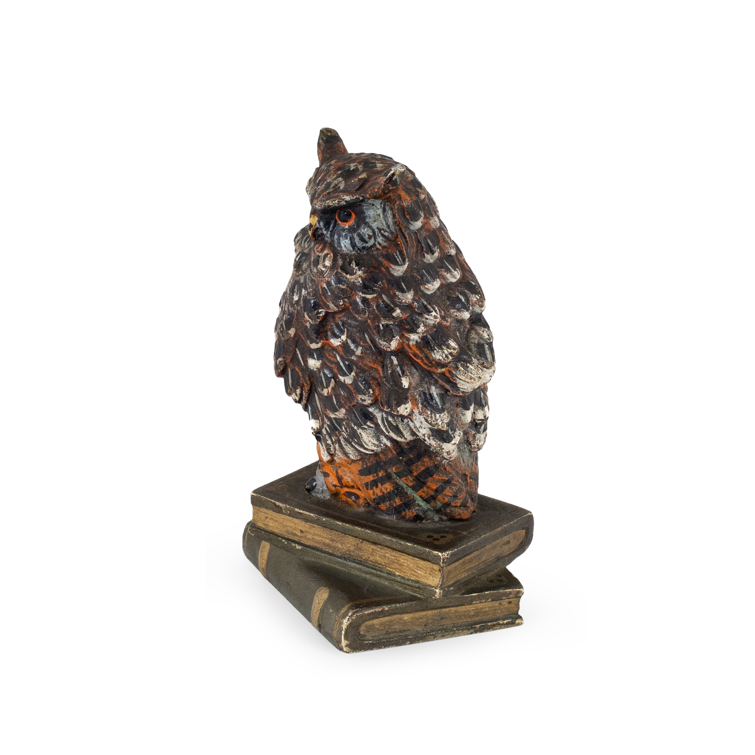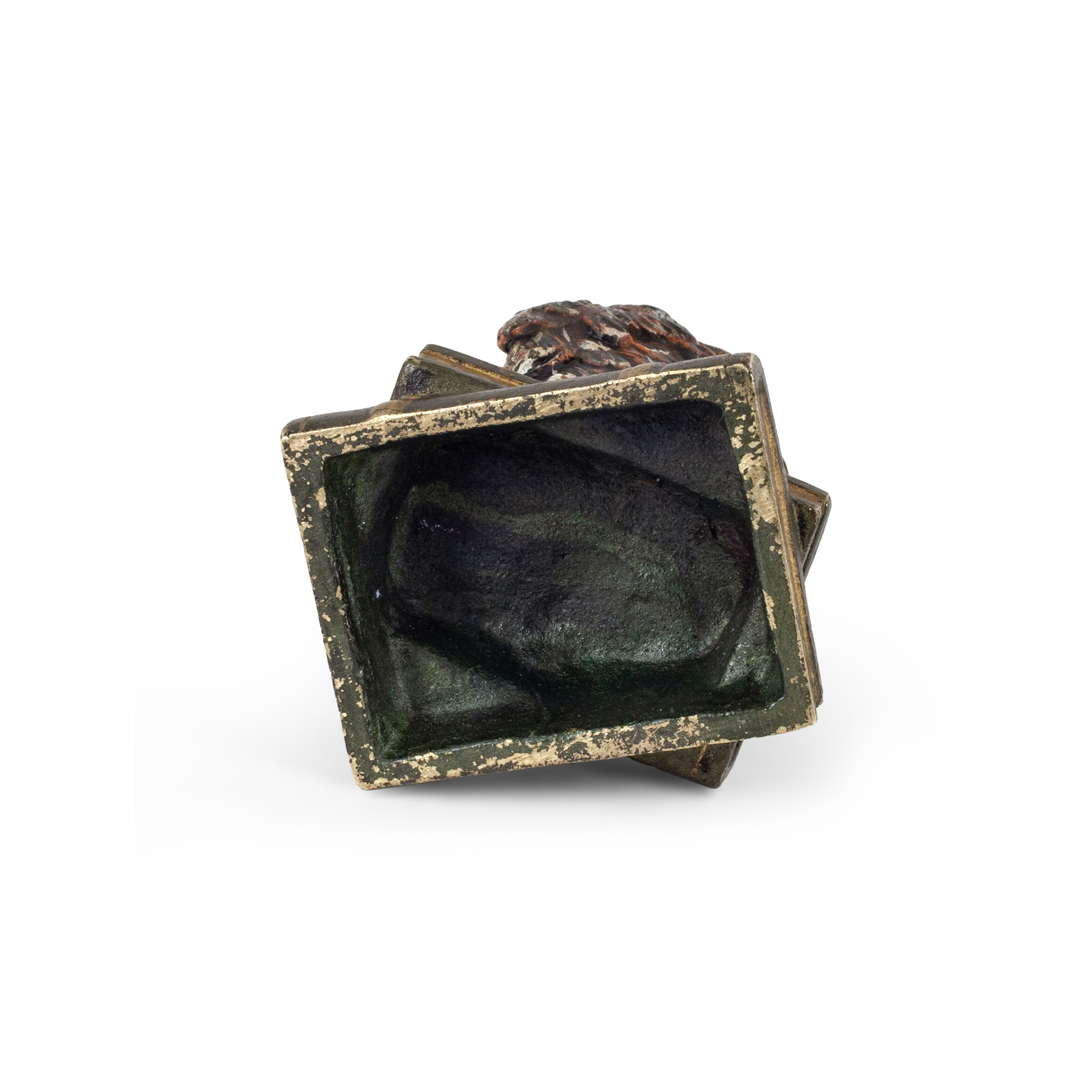 Бронза, литье, проработка, холодное полихромное окрашивание, клеймо в виде литеры «B» в вазе с двумя ручками, анималистическая миниатюра фабрики Бергмана (1860-1953/1960), размер (в/ш/г): 9,8 х 5,5 х 6,2 см