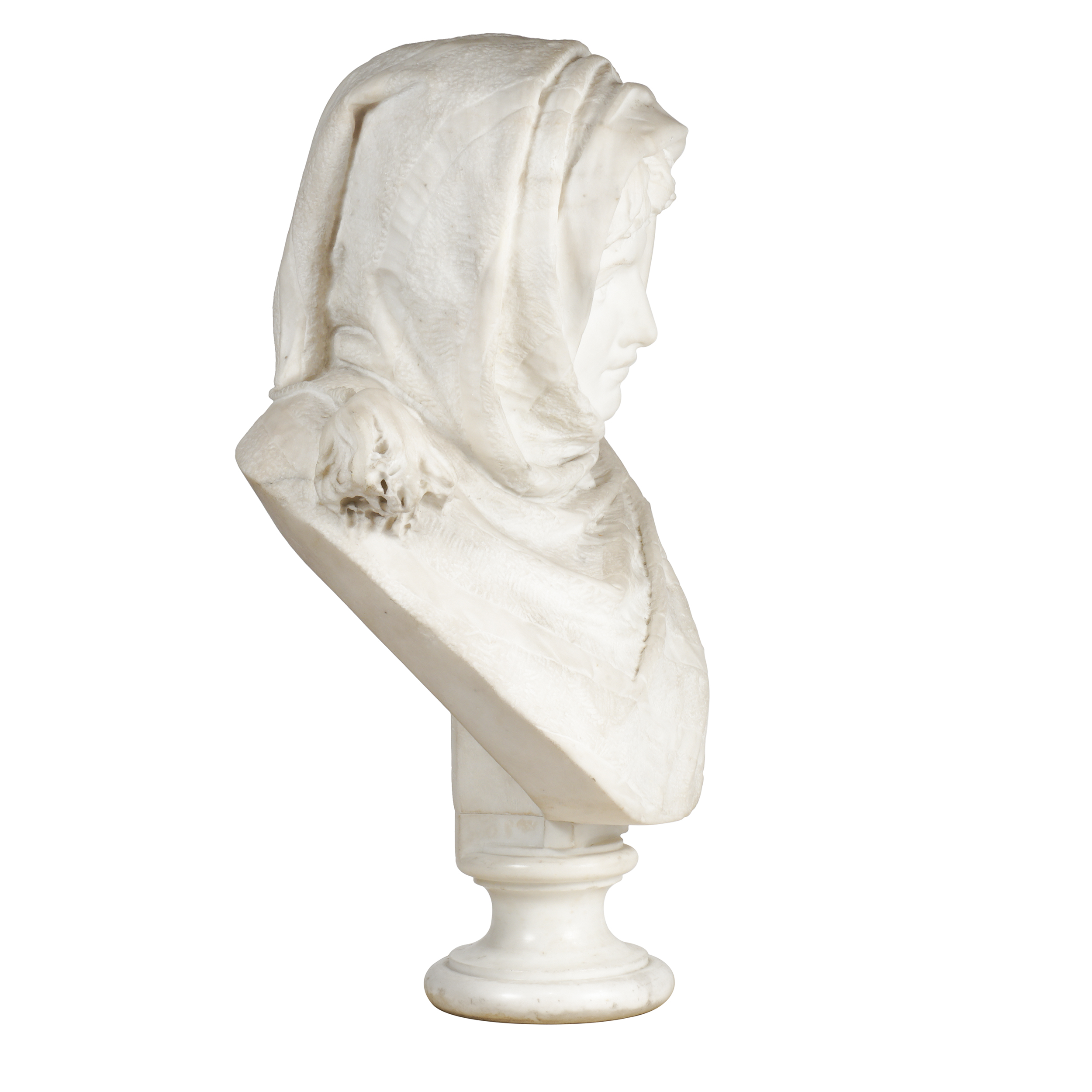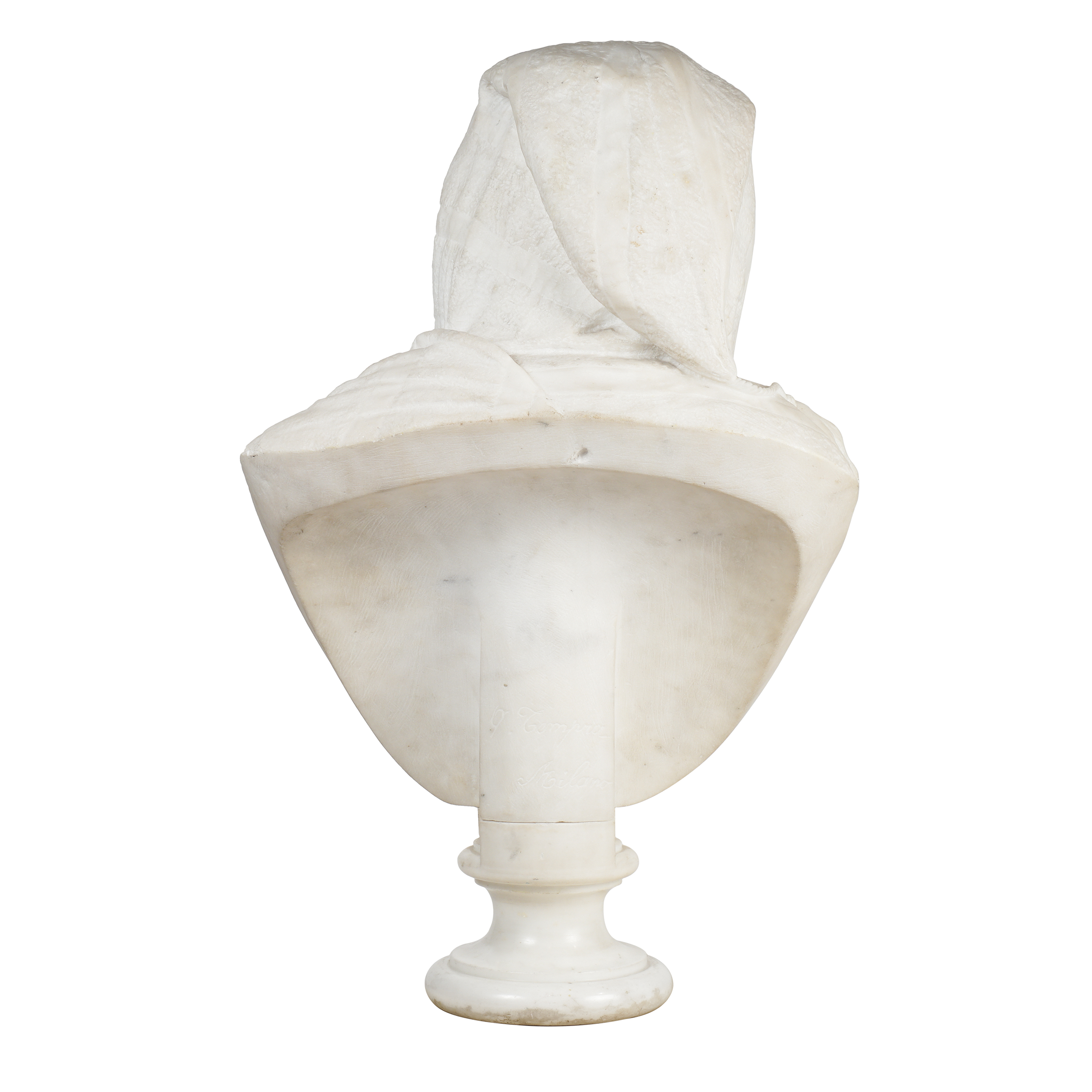 Мрамор, резьба, шлифовка, подпись с оборотной стороны «Q. Tempra Milano», итальянского скульптора Квирино Темпра (1849 — 1888), размер (в/ш/г): 58 х 36 х 22 см