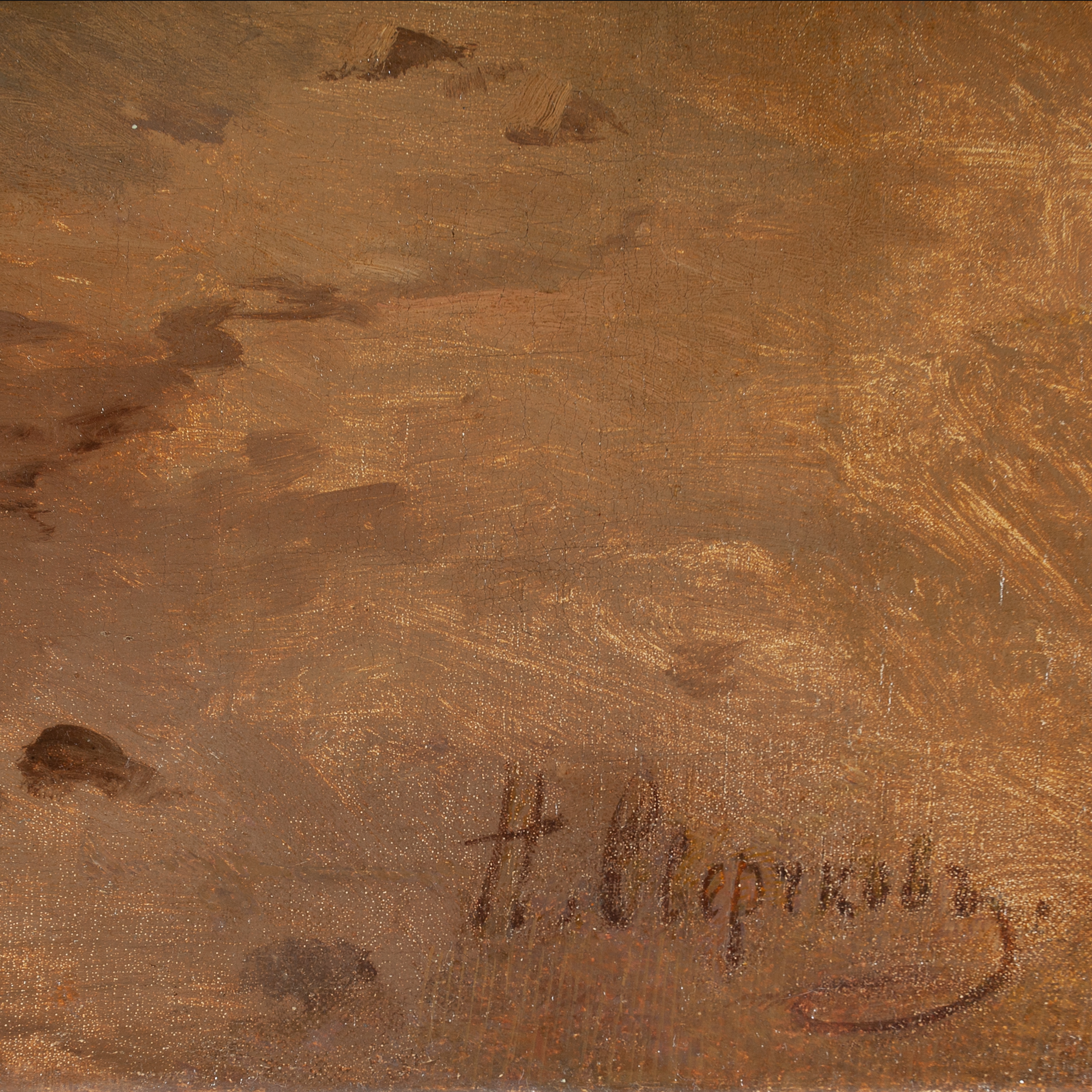 Холст, масло, справа внизу подпись: «Н.Сверчковъ», последняя четверть XIX века, размер холста: 79 х 107 см, в раме: 106 х 134 см.