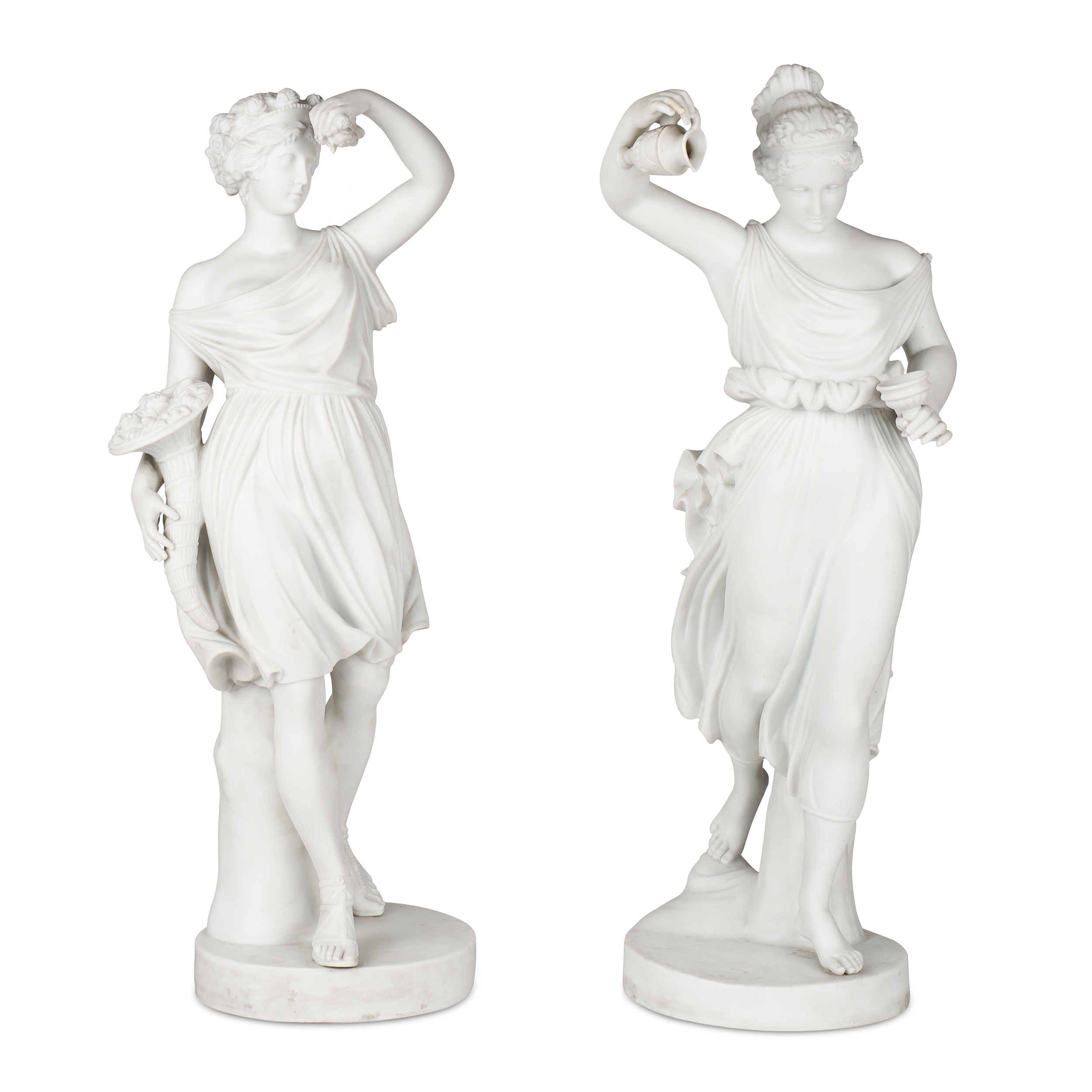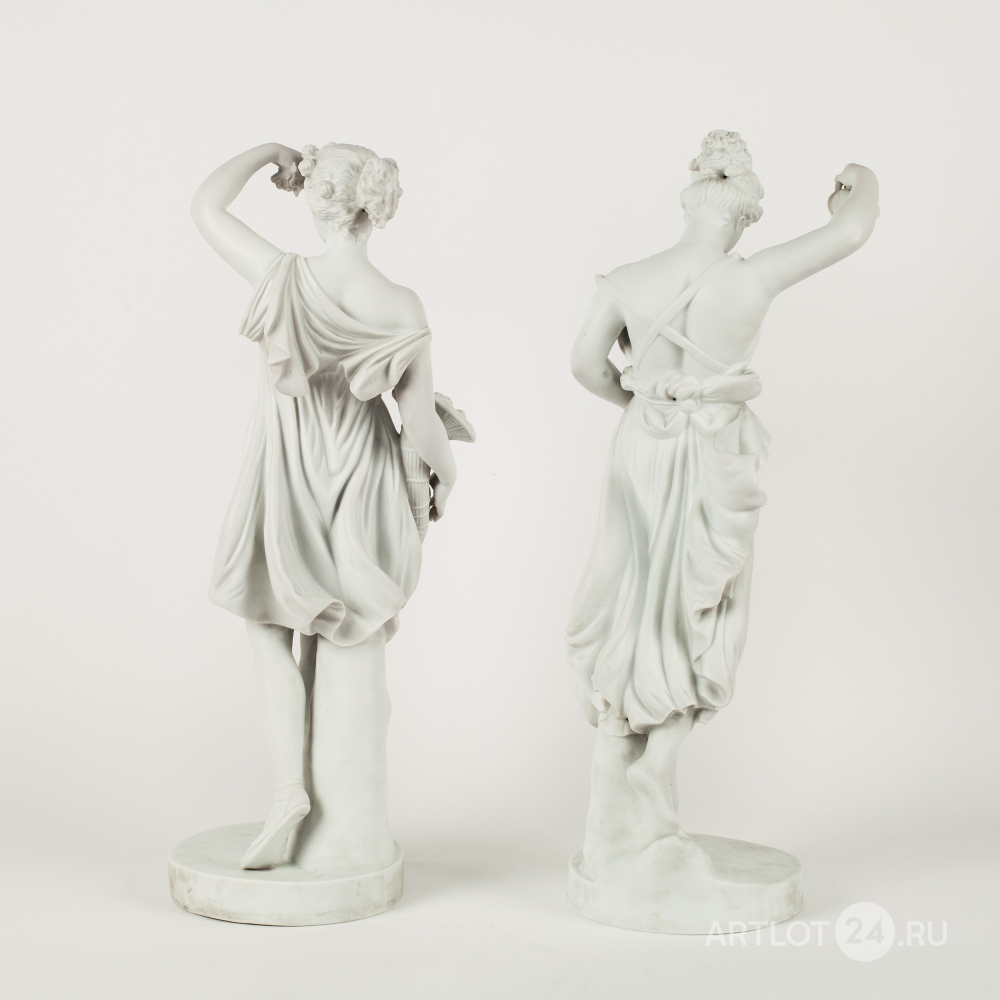 Скульптура «Геба» выполнена по мотивам работы А. Кановы. Бисквит, лепка, формовка, Европа, начало XX века, размер (в/ш/г): 53,5 х 22 х 19 и 52 х 20 х 19 см