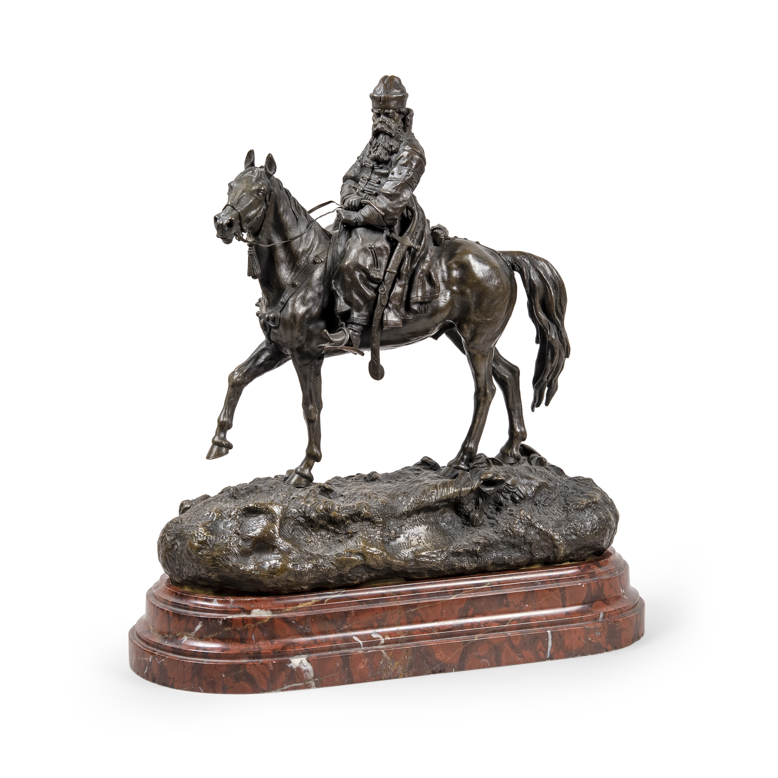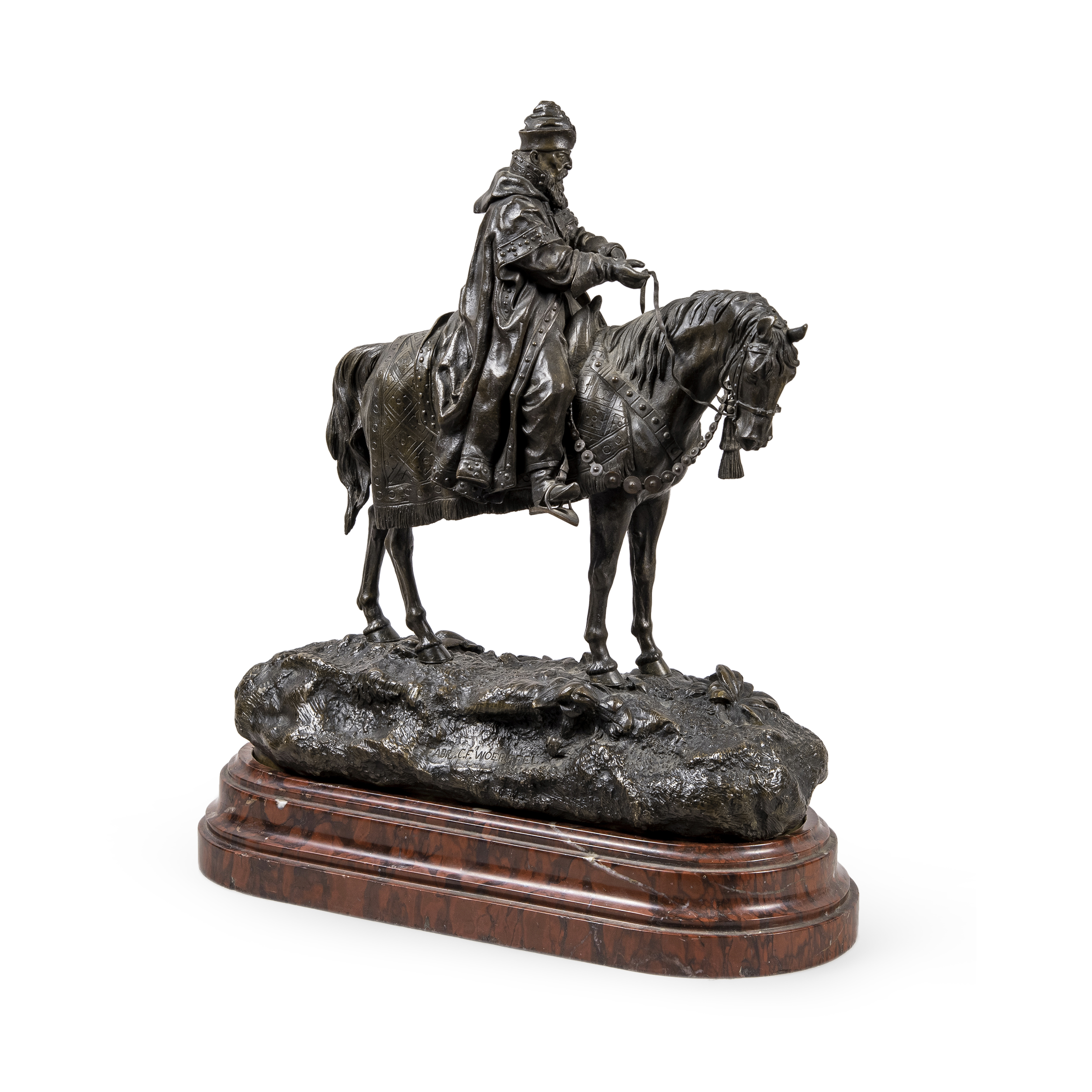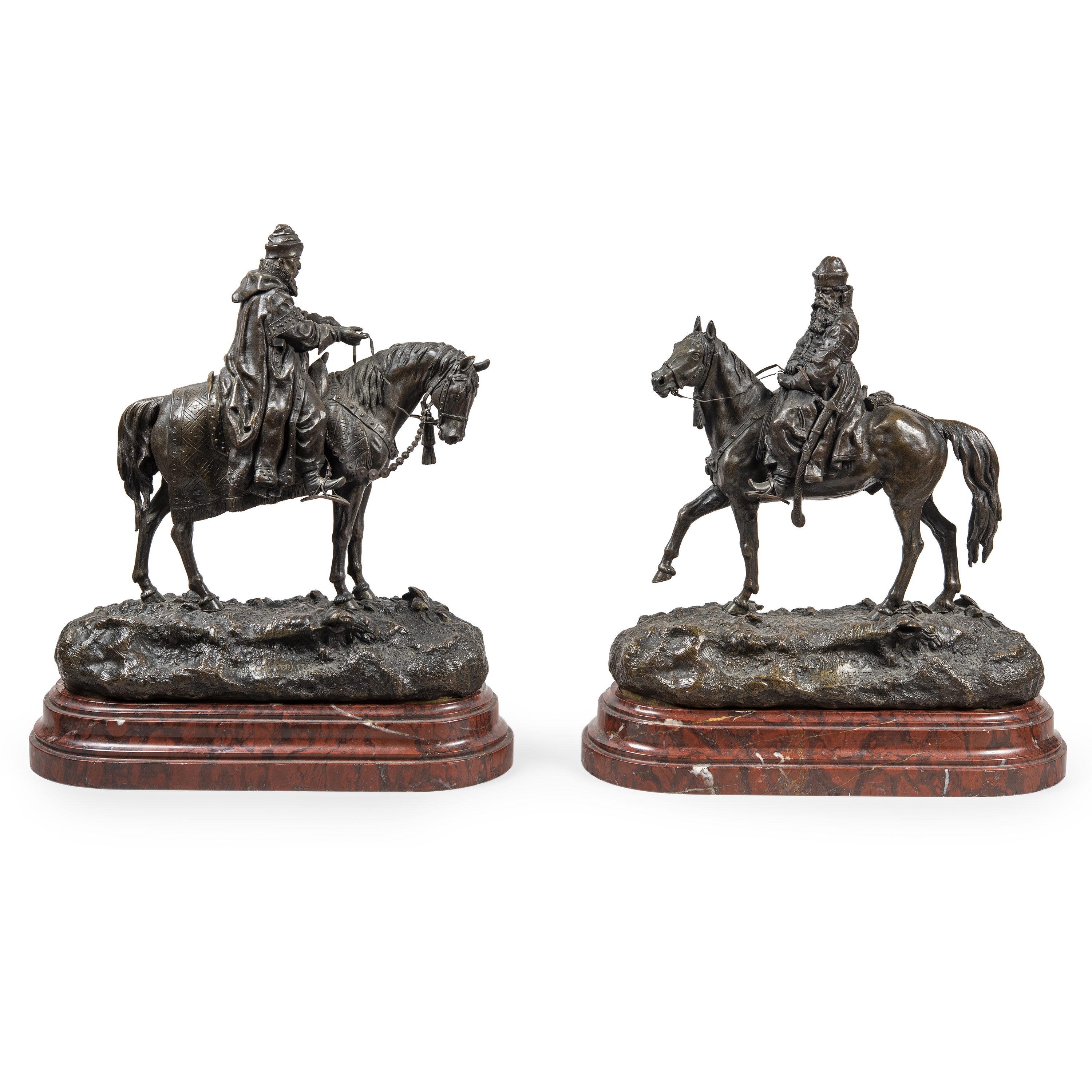 Фигуры «Иван Грозный» и «Боярин» выполнены по модели скульптора В.Я. Грачёва 1877 года. Бронза, литье, чеканка, шлифовка, патинирование, монтировка, аутентичные мраморные постаменты; надписи на позёмах обеих фигур: «FABR. C.F. WOERFFEL», а также «ЛЪП.ГРАЧЕВЪ». Размер фигуры «Иван Грозный» (в/ш/г): 37,8 х 32,2 х 14 см, вес – 4,7 кг; Размер фигуры «Боярин» (в/ш/г): 35,8 х 32 х 14, вес – 4,3 кг.