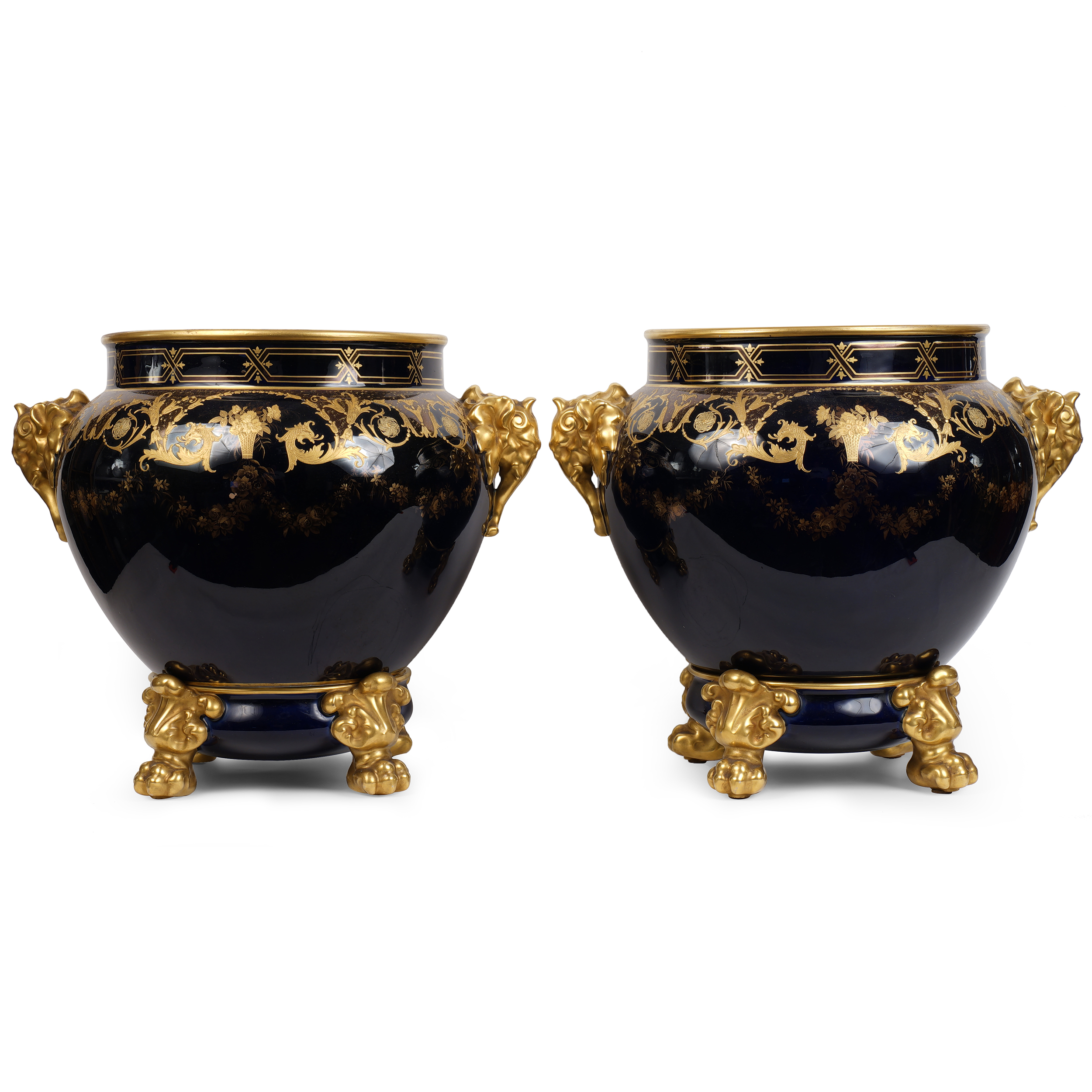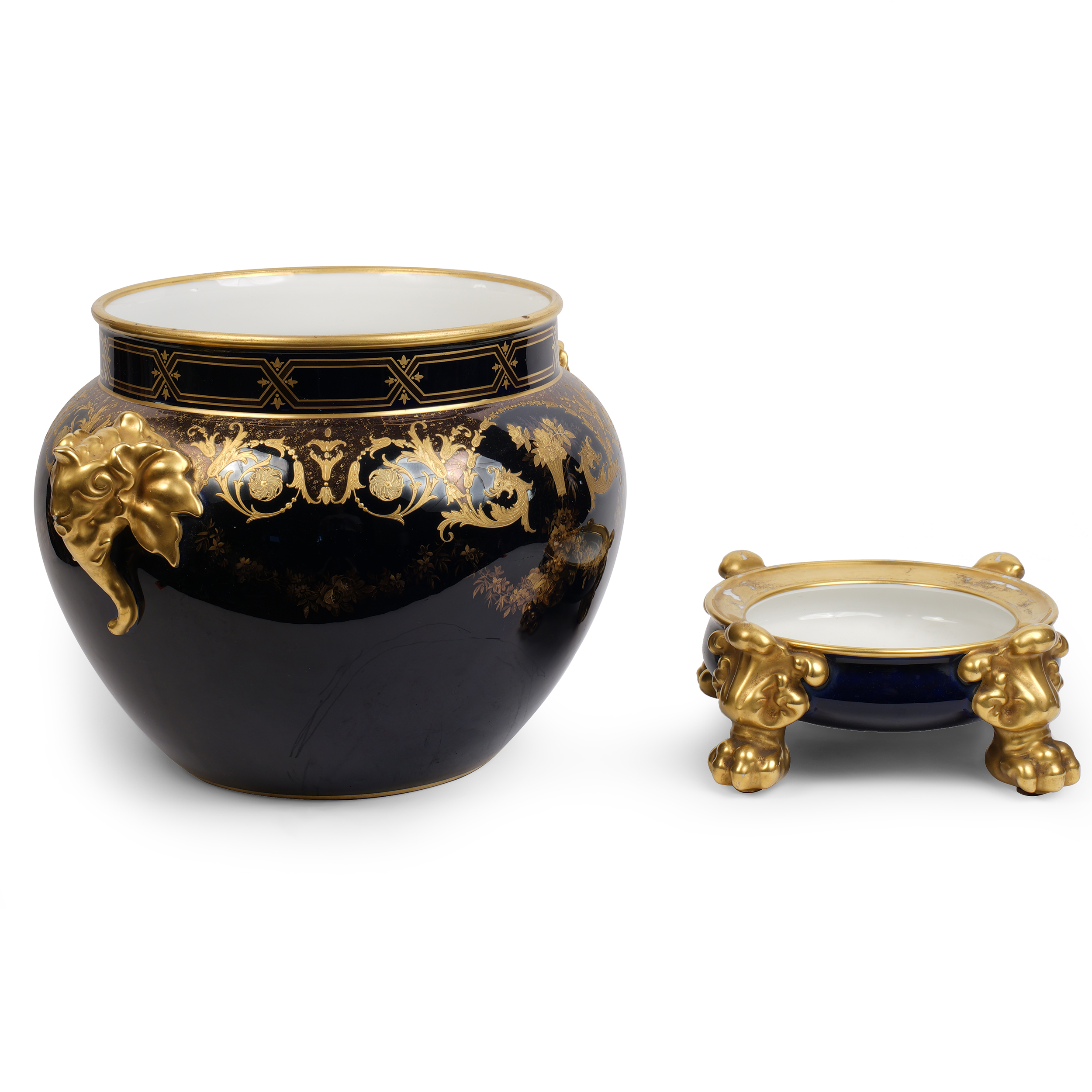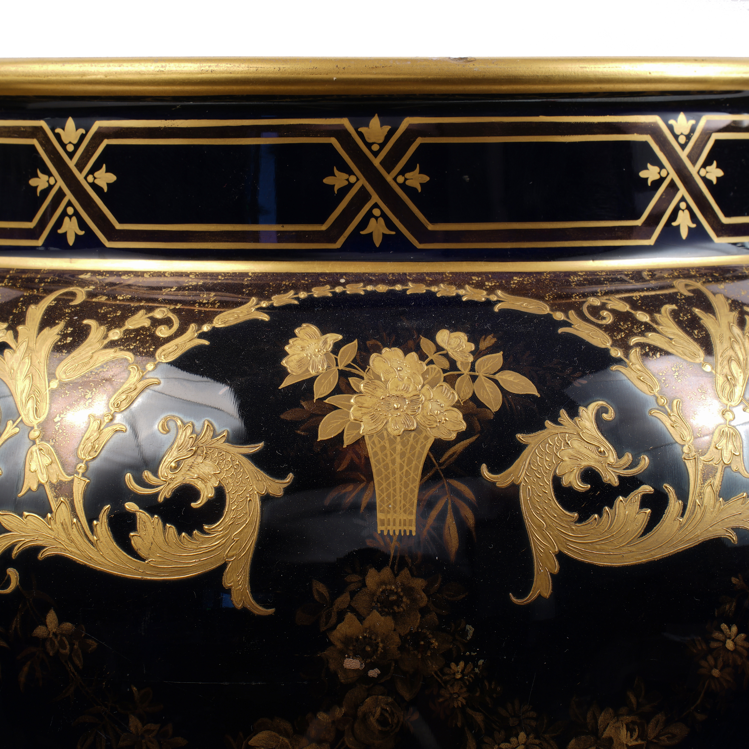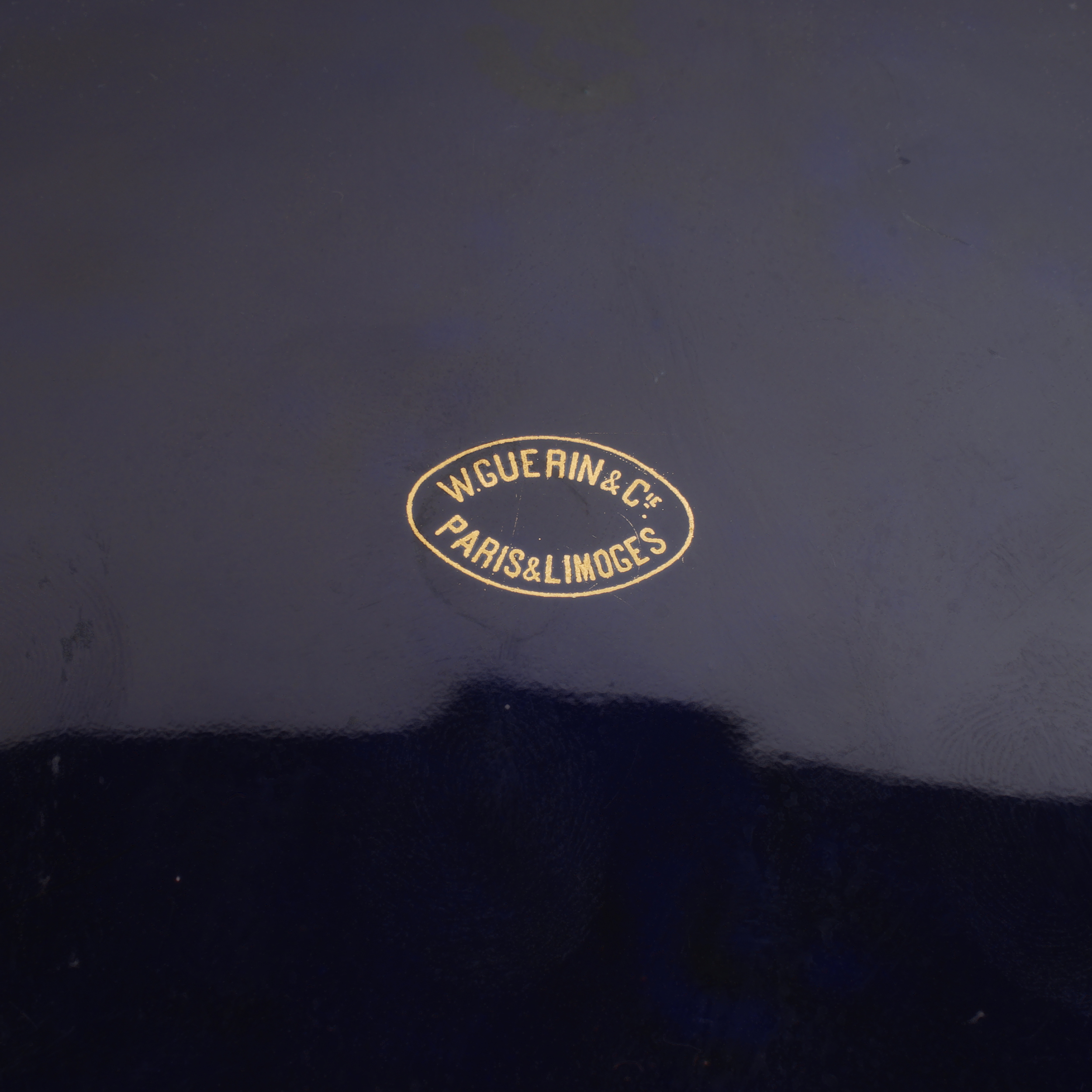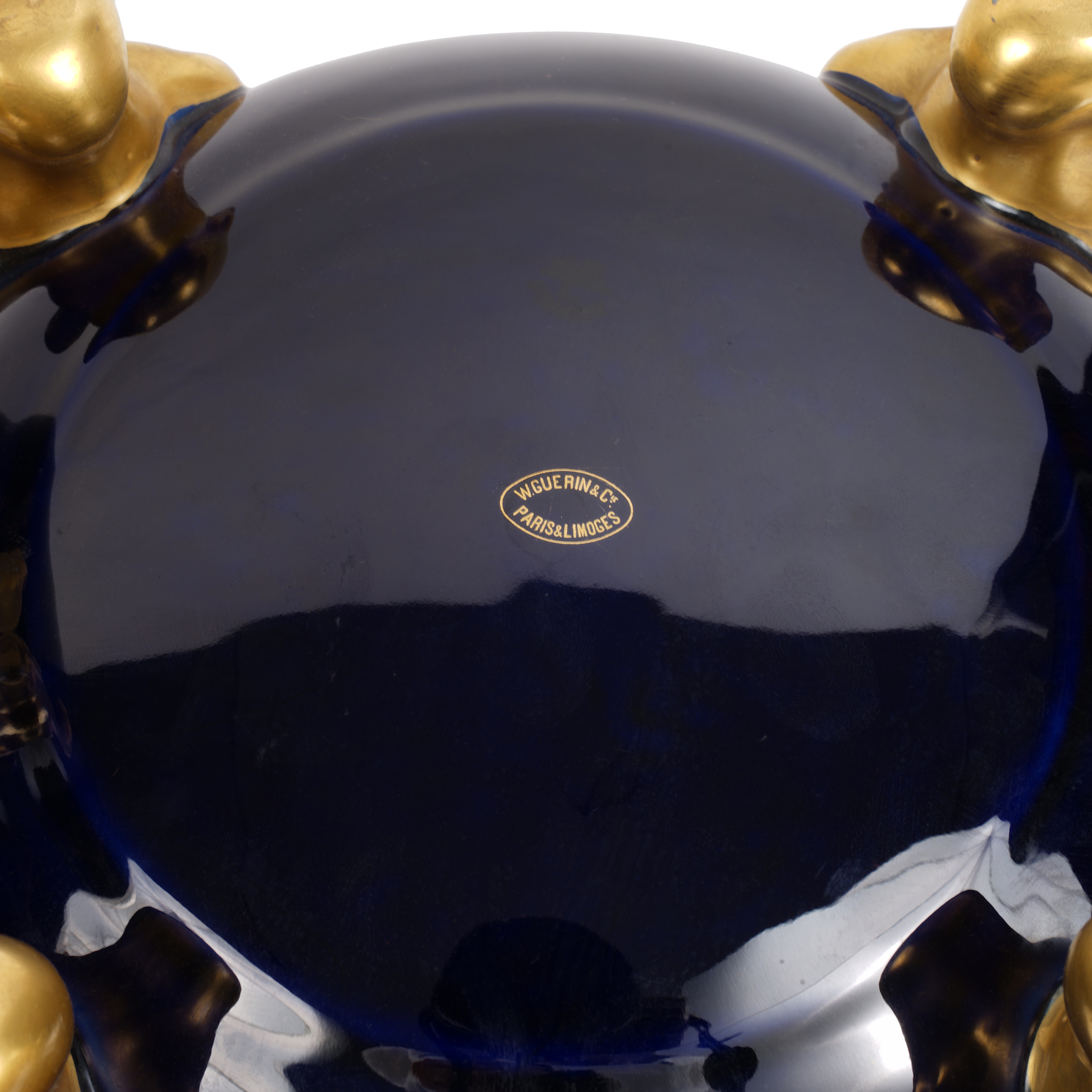 Фарфор, кобальт, золочение надглазурное и подглазурное, надглазурное клеймо фарфоровой мануфактуры Лимож, высота - 35 см, ширина - 43 см.