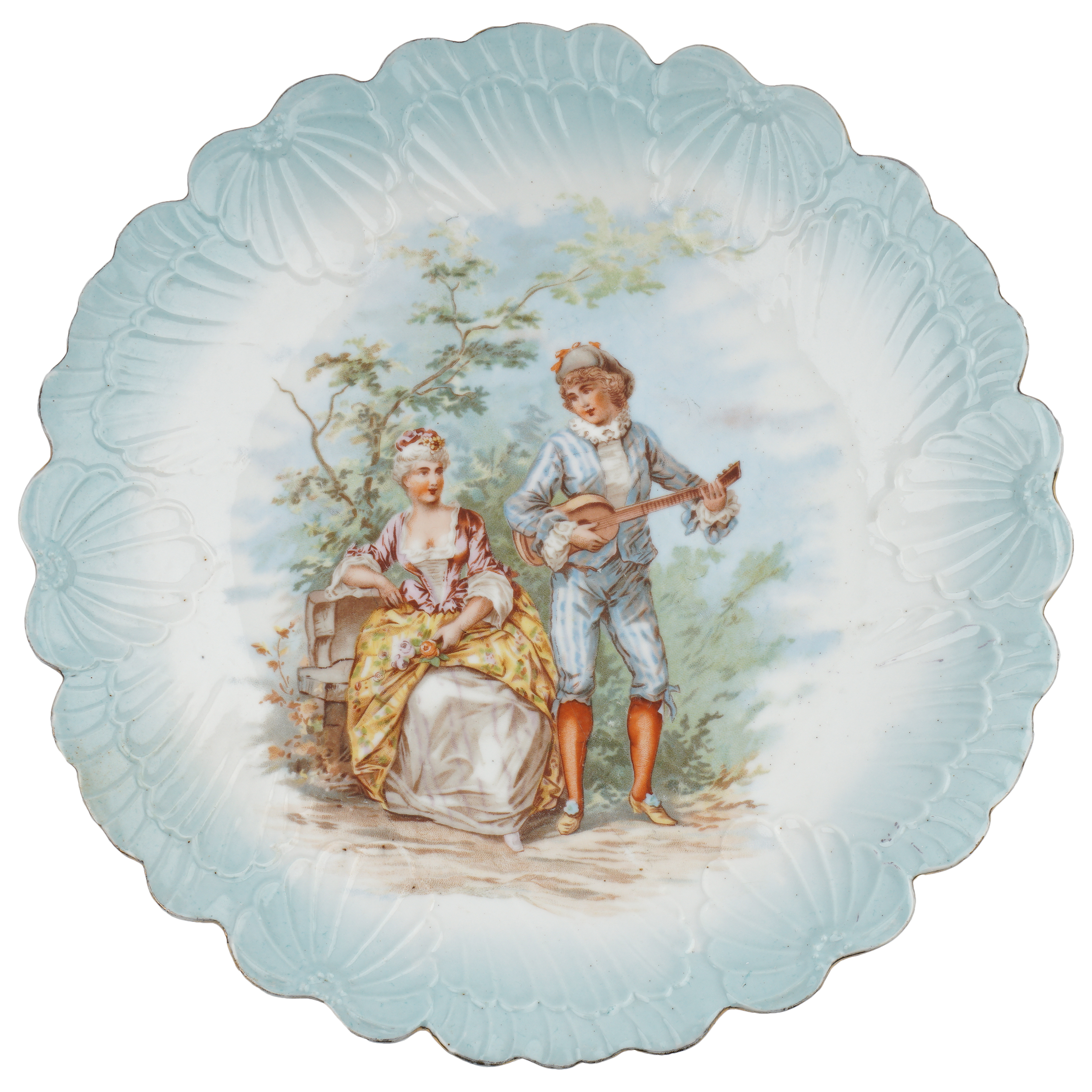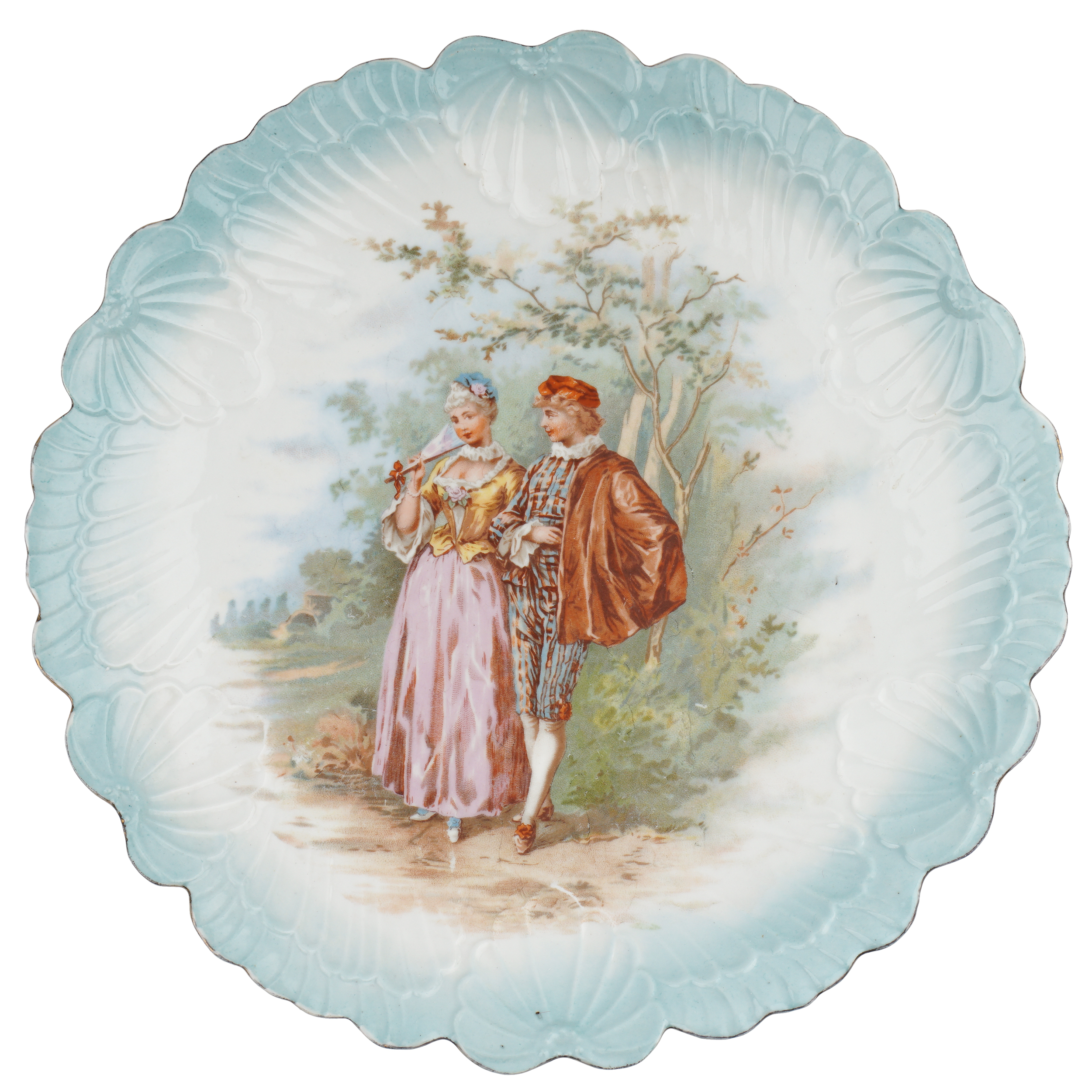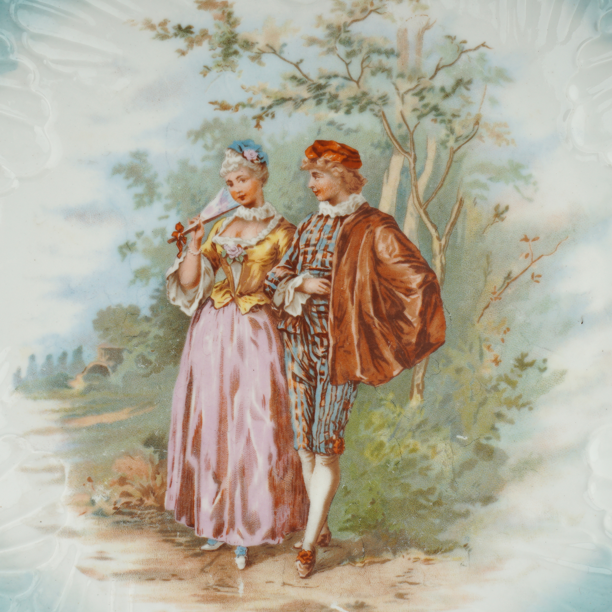 Фарфор, рельеф, голубое крытье, деколь