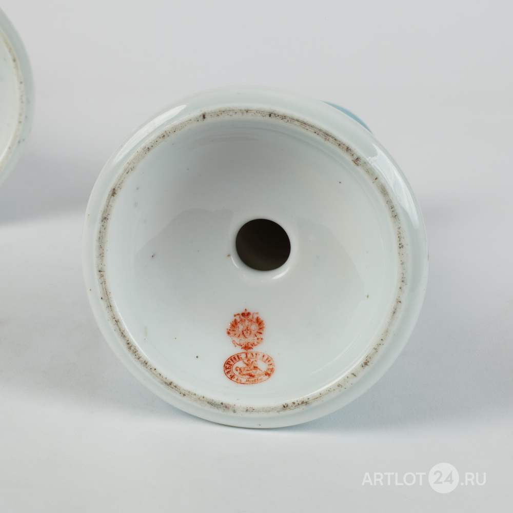 Фарфор, монохромное крытье, полихромная надглазурная роспись, золочение, клейма красные надглазурные печатные фабрики Ф.Я. Гарднера, Россия, 1870-1880-е годы, высота – 17,5 см, диаметр основания – 10 см