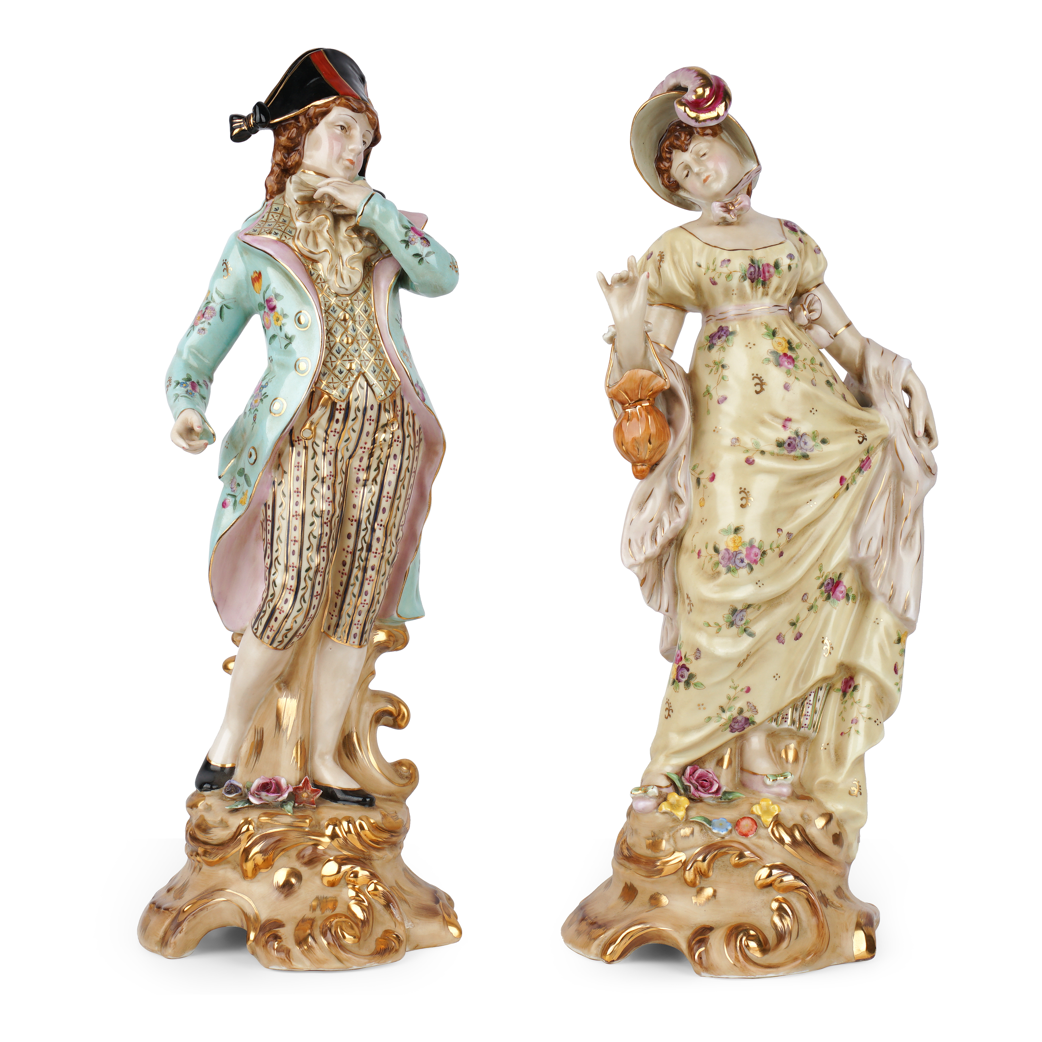 Фарфор, полихромная надглазурная роспись, золочение, клеймо отсутствует, Европа, последняя треть XIX века, высота - 43 и 44,5 см