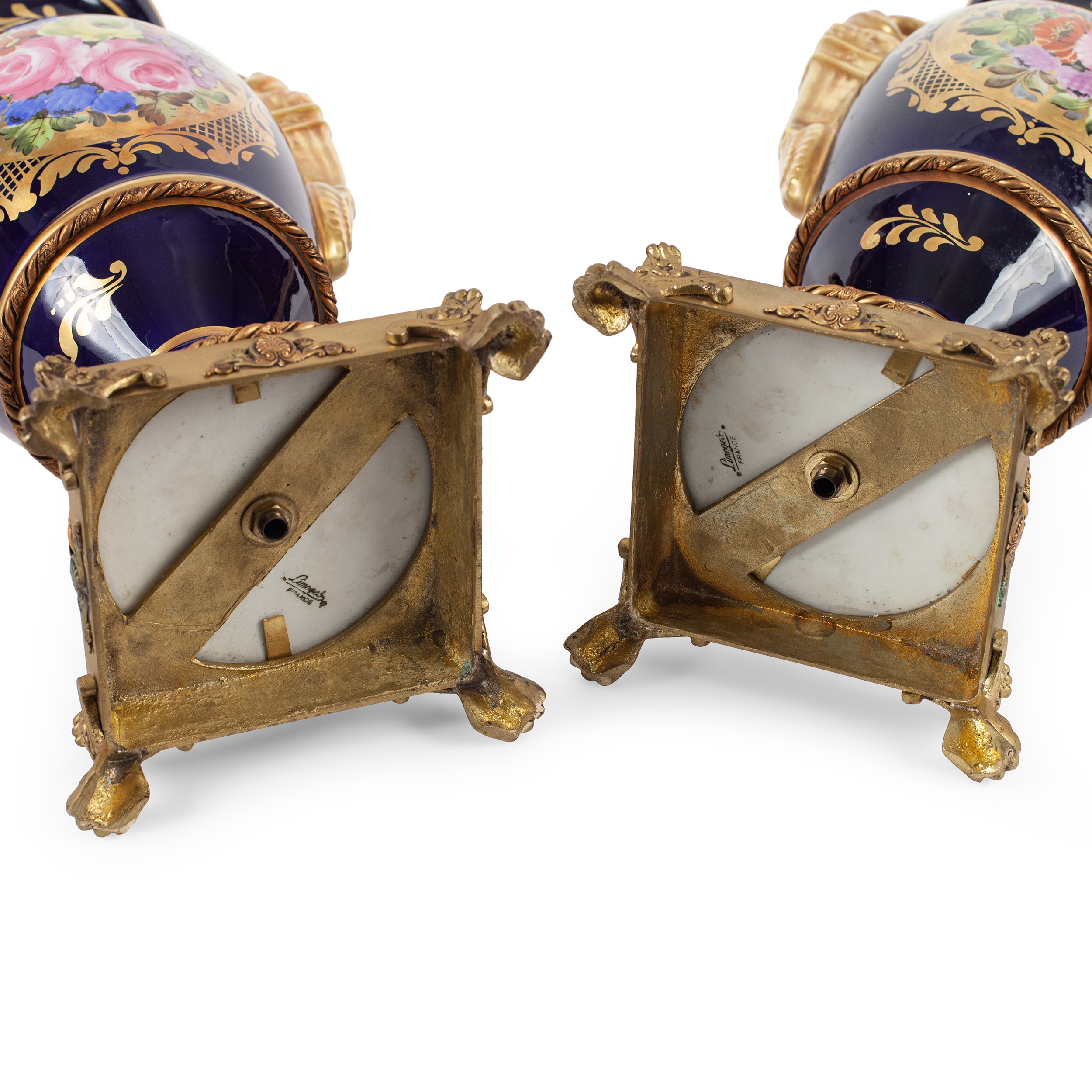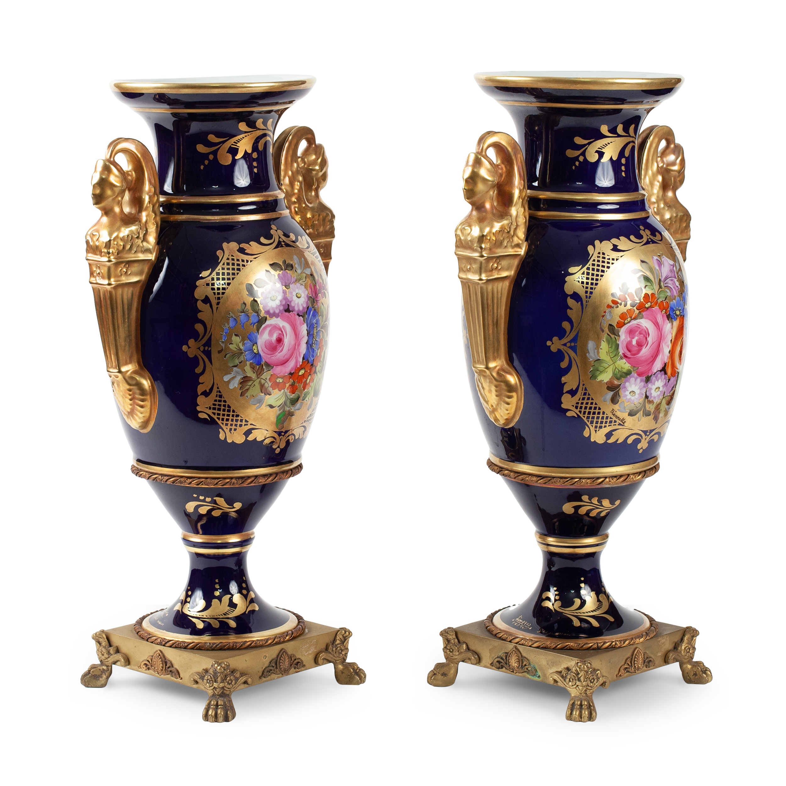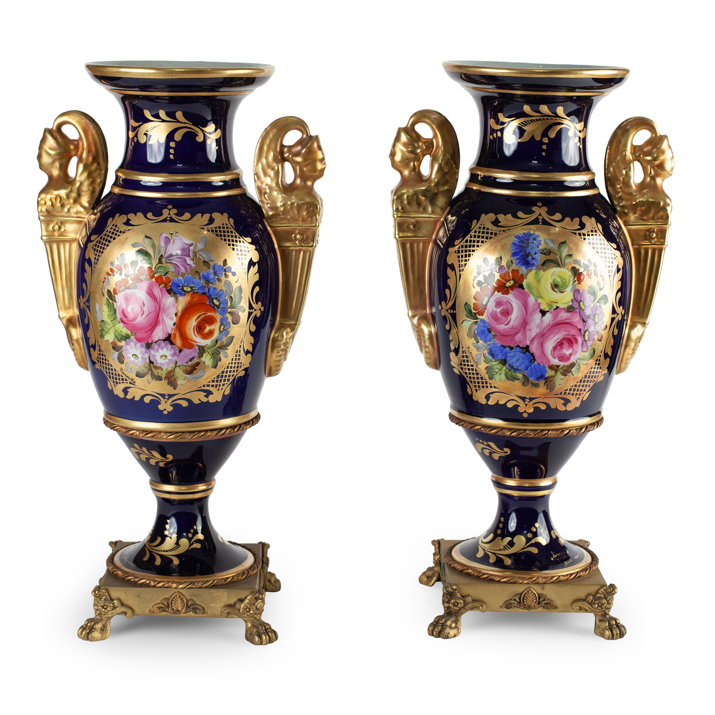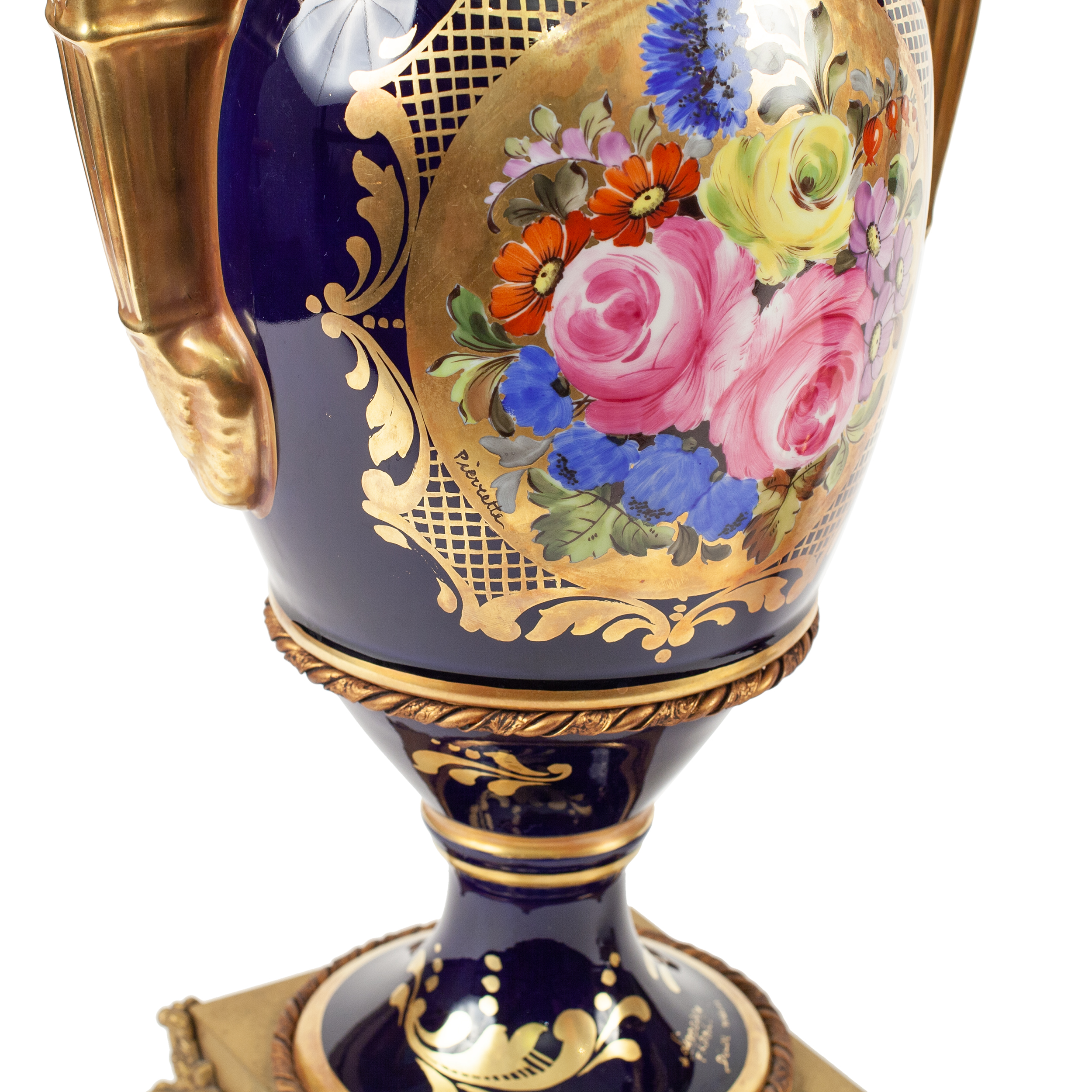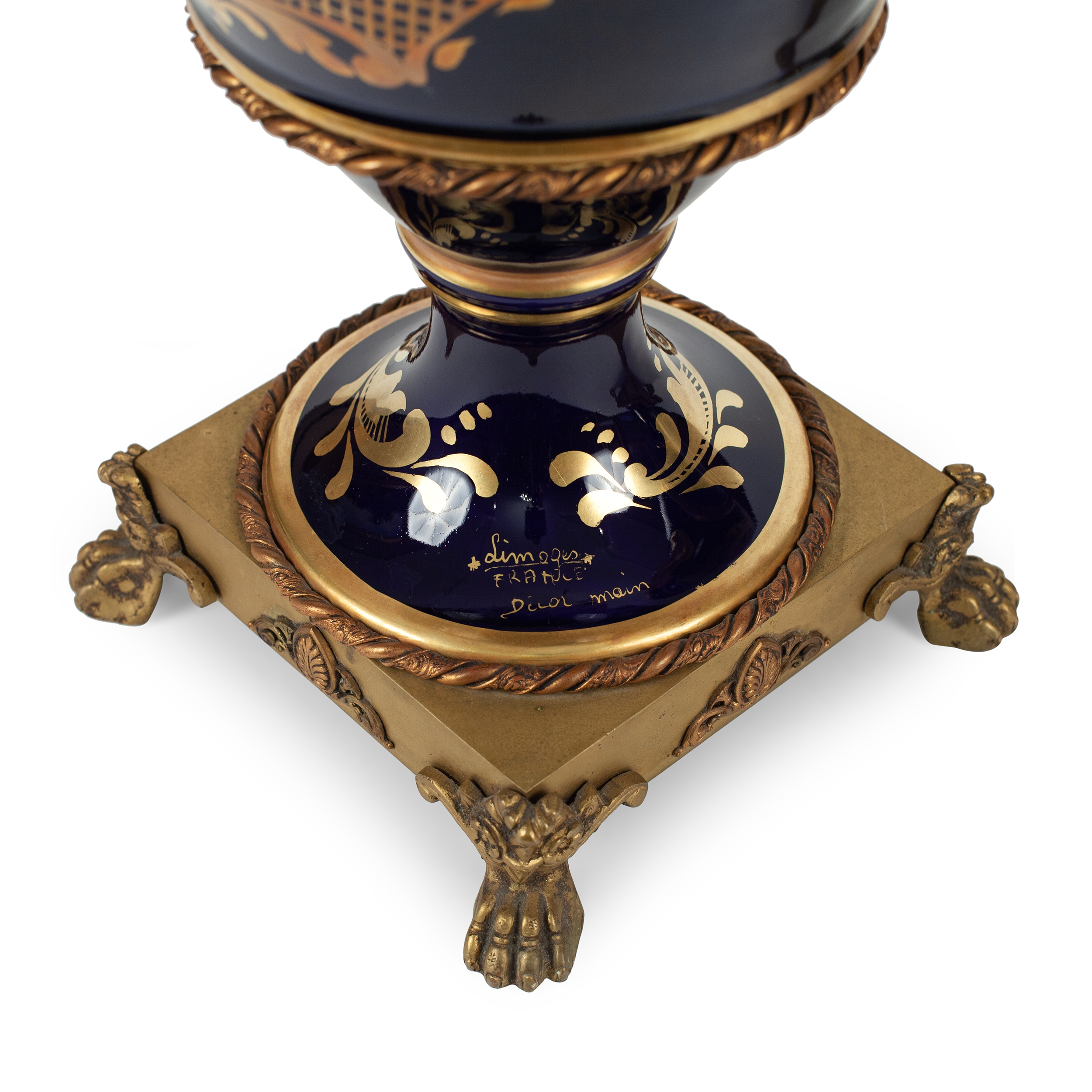Фарфор, крытье кобальтом, полихромная надглазурная роспись, золочение, бронзовое основание с ножками в виде львиных лап, литье, чеканка, марка: зеленая «Limoges France», Европа, начало XX века, (в/ш/г): 48 х 25 х 15 см