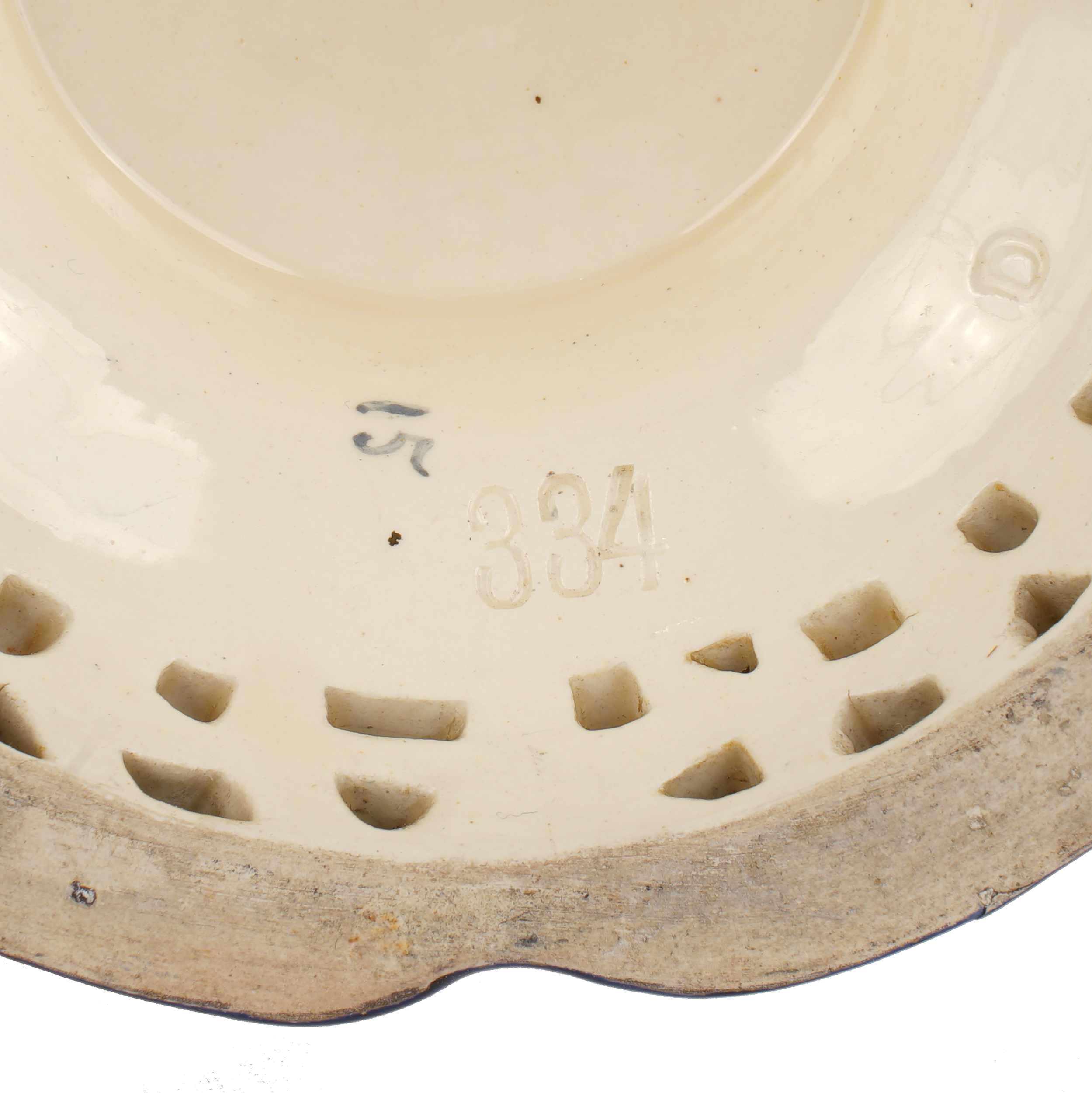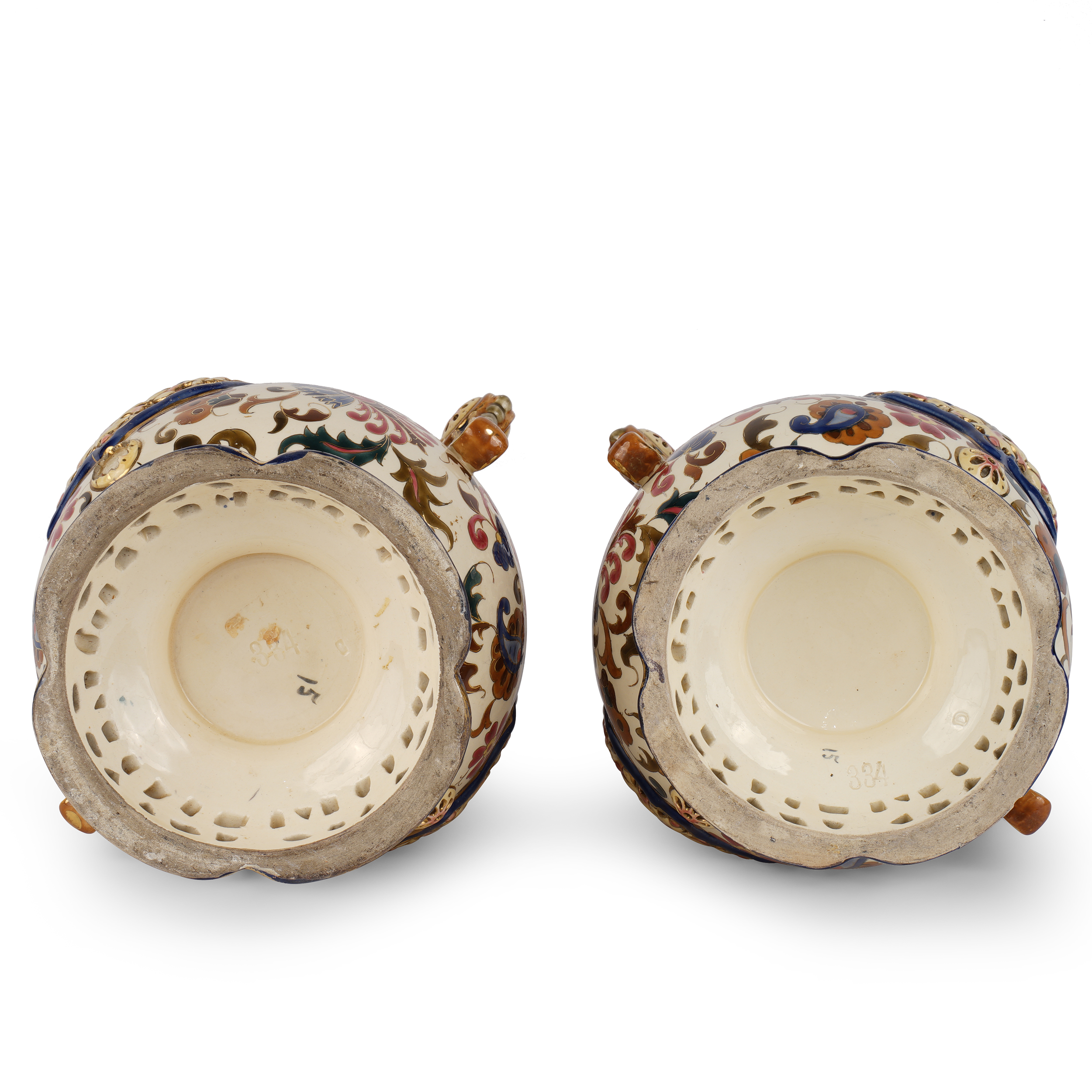 Керамика, рельефная лепка, полихромная роспись, золочение. Без марок, цифры в тесте "334".