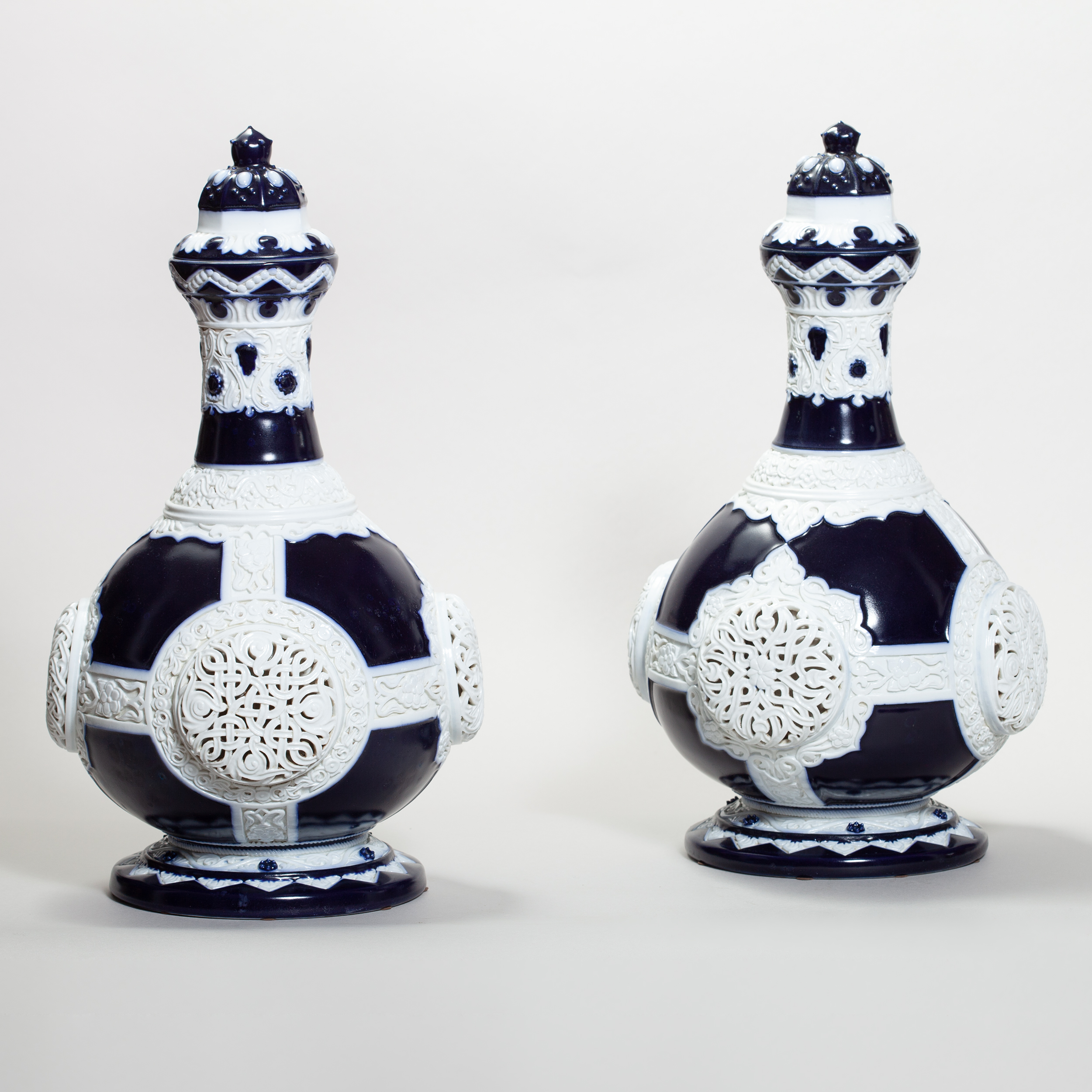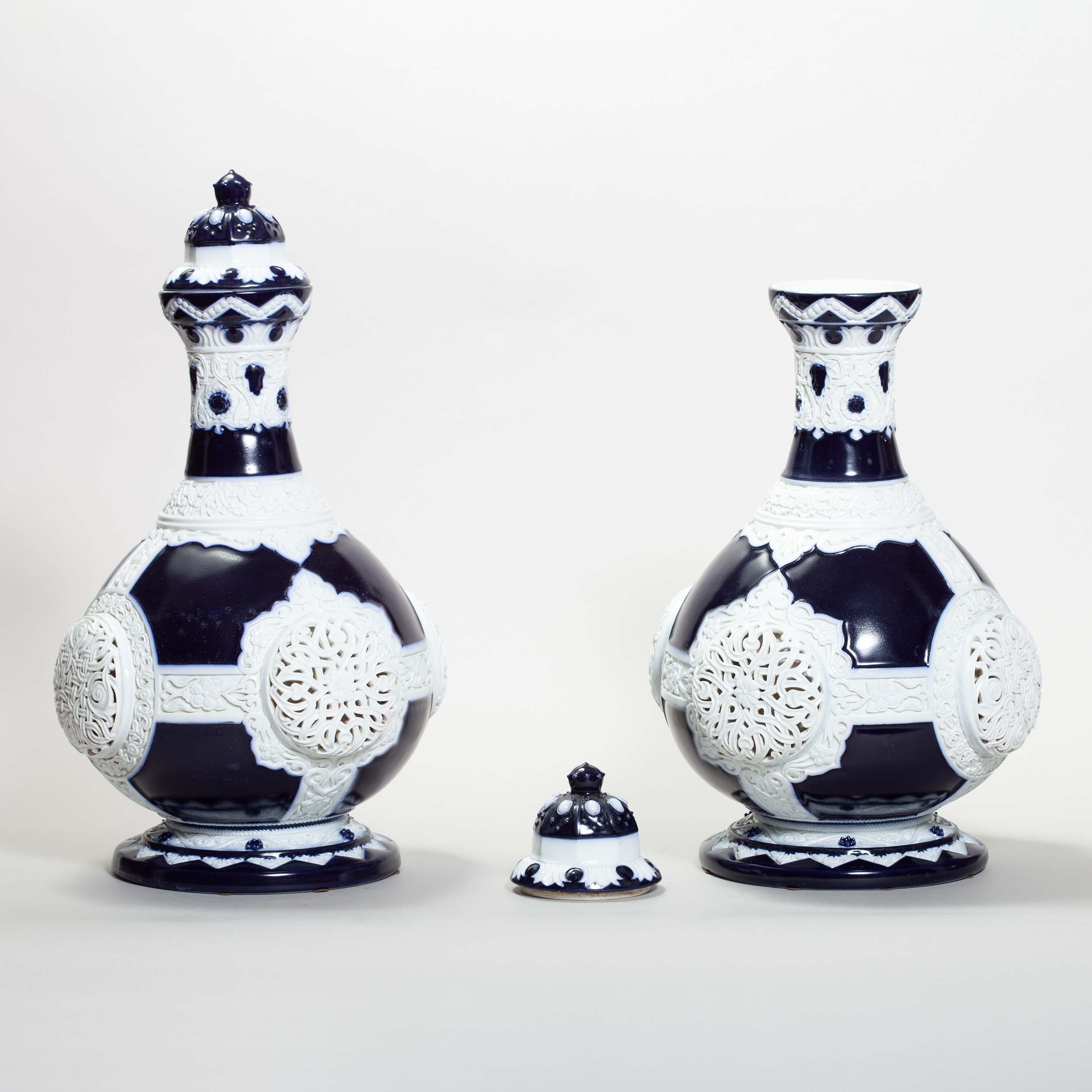 Фарфор, ручная лепка, резьба, крытье кобальтом;