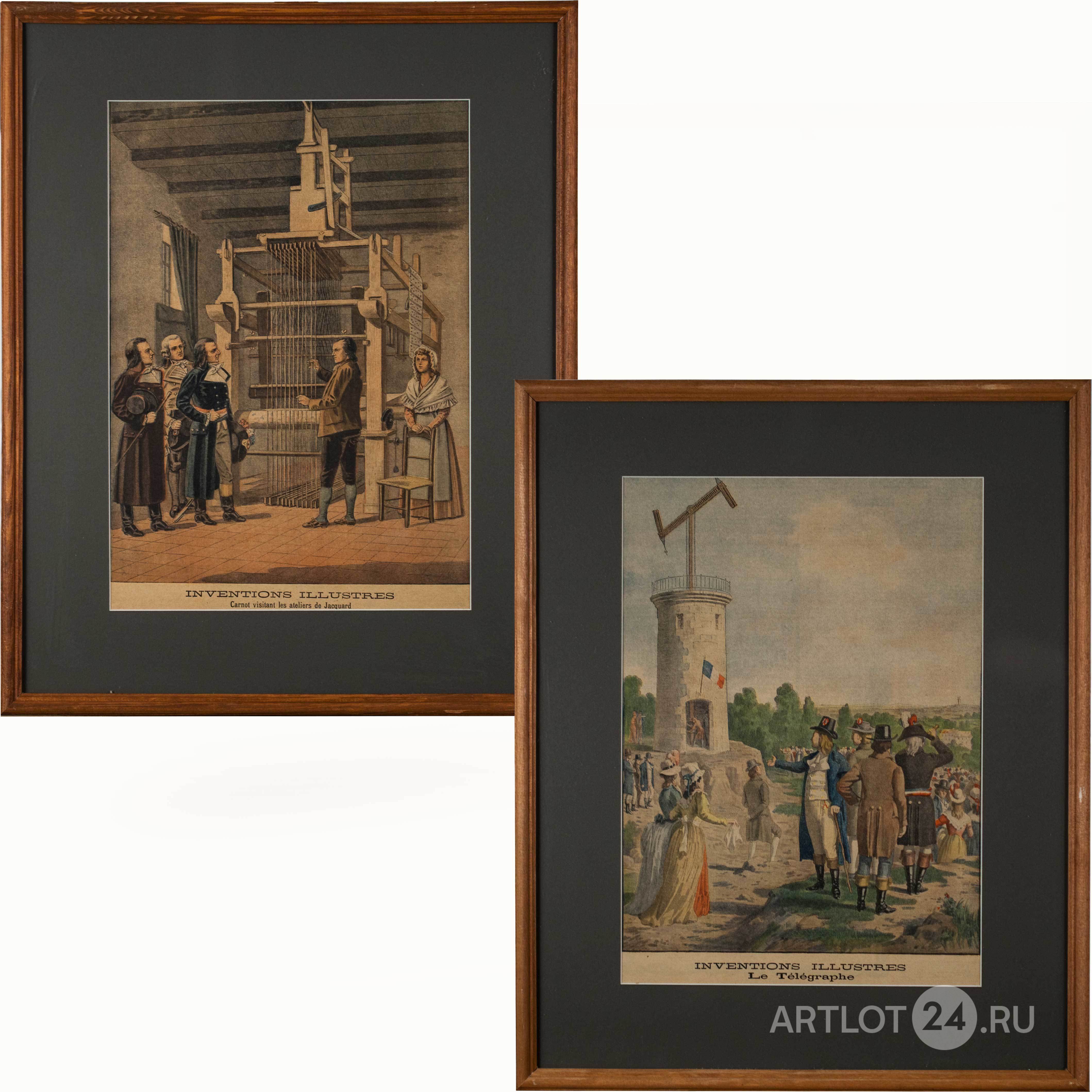 "Телеграф" и "Мастерская Жаккарда". Бумага, печать, Франция, рубеж ХIХ- ХХ вв, паспарту, стекло, рама, размеры 27 х 36 см.