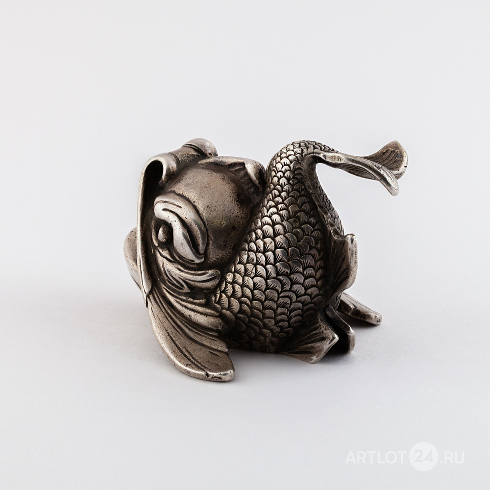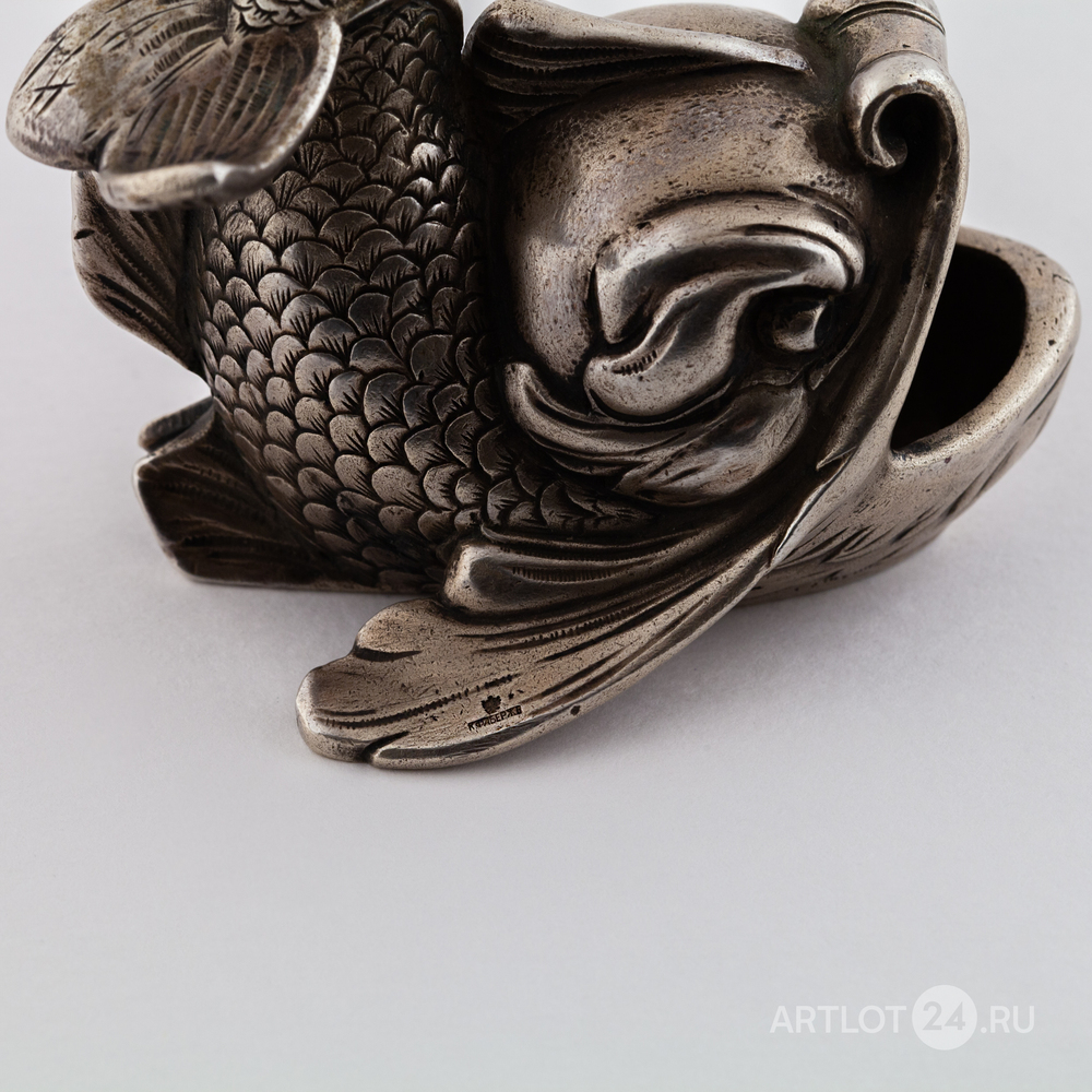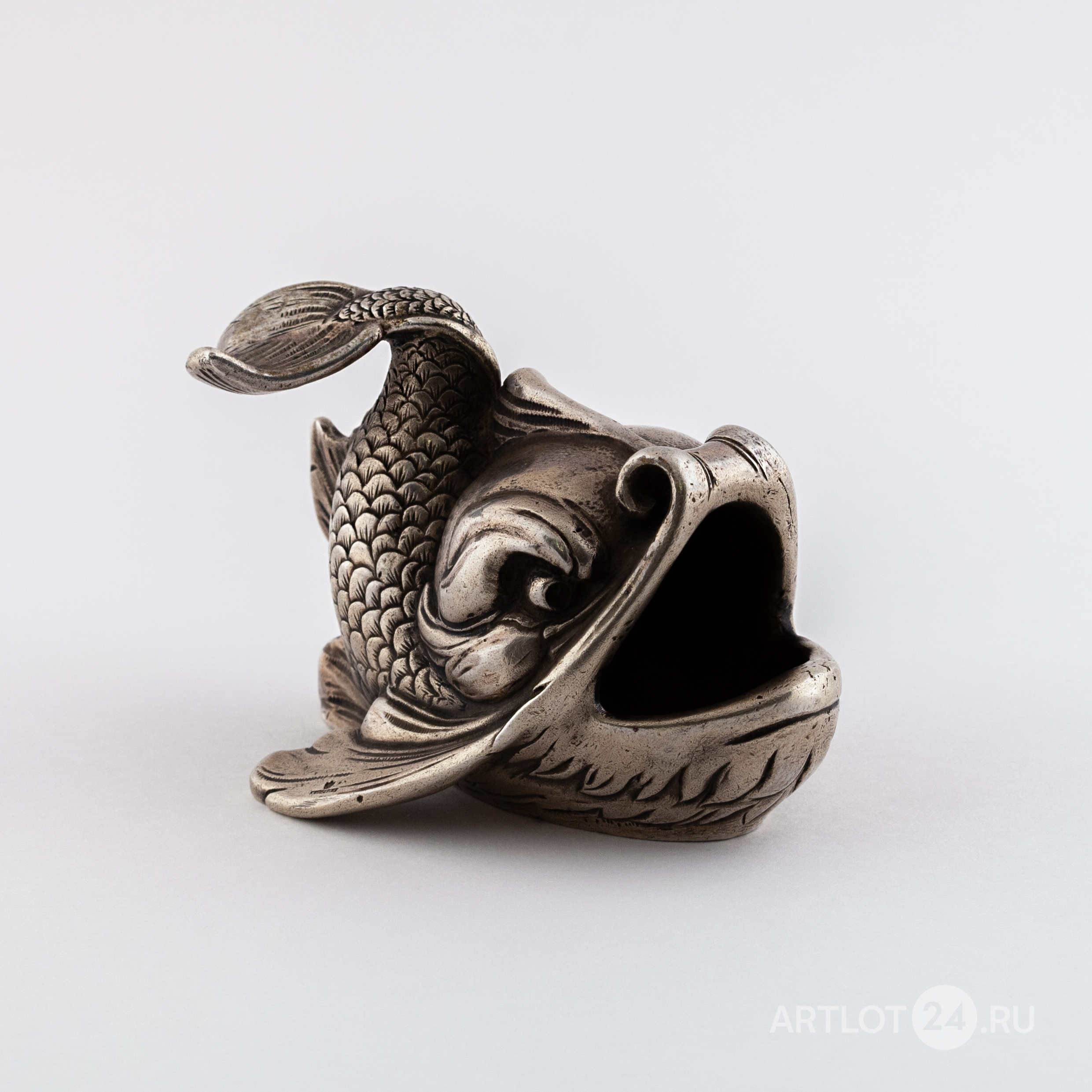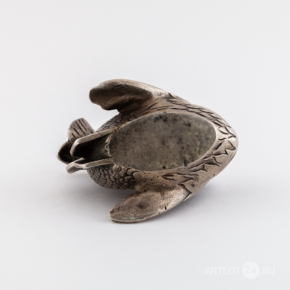 Белый металл, литье, чеканка, высота - 6 см, ширина 8,5 см, глубина - 8 см, вес: 649 грамм