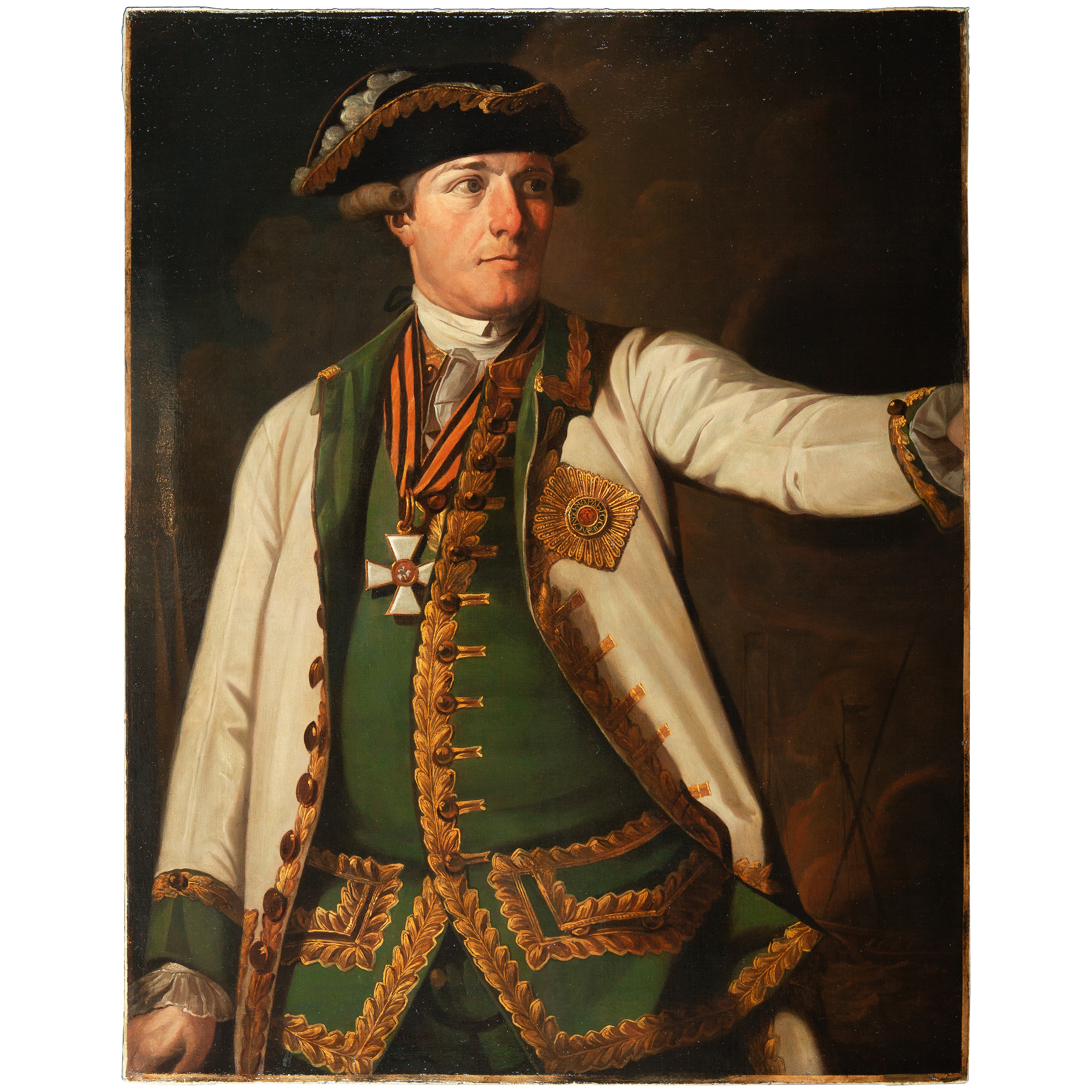 Портрет написан с оригинала 1772 года, русского живописца и мастера портрета Аргунова Ивана Петровича (1729 - 1802). Адмирал С.К. Грейг изображен на портрете в белом морском мундире с зелеными обшлагами, воротником и лацканами с контр-адмиральским шитьем, с орденом Св. Георгия 2-й степени (крест на шее, звезда). Портрет С. К. Грейга относится к завершающему периоду творчества Аргунова.