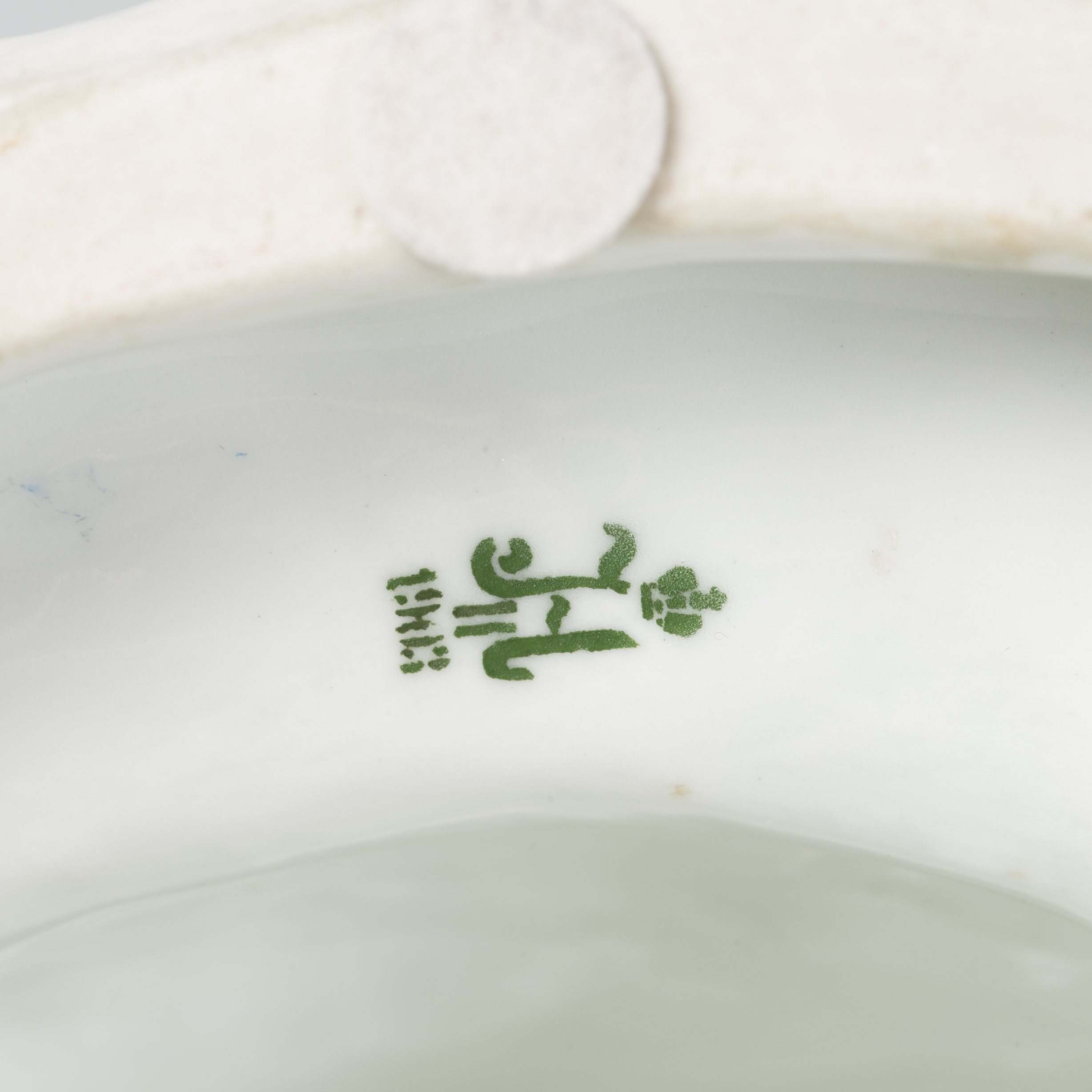 Фарфор, ручная отминка, поливные глазури, автор модели - Август Карлович Тимус (1865 - после 1917), скульптор-формовщик - П.В. Шматов, марка надглазурная хромом «Н II 1903» под короной. Размер (в/д): 26 х 32 см.
