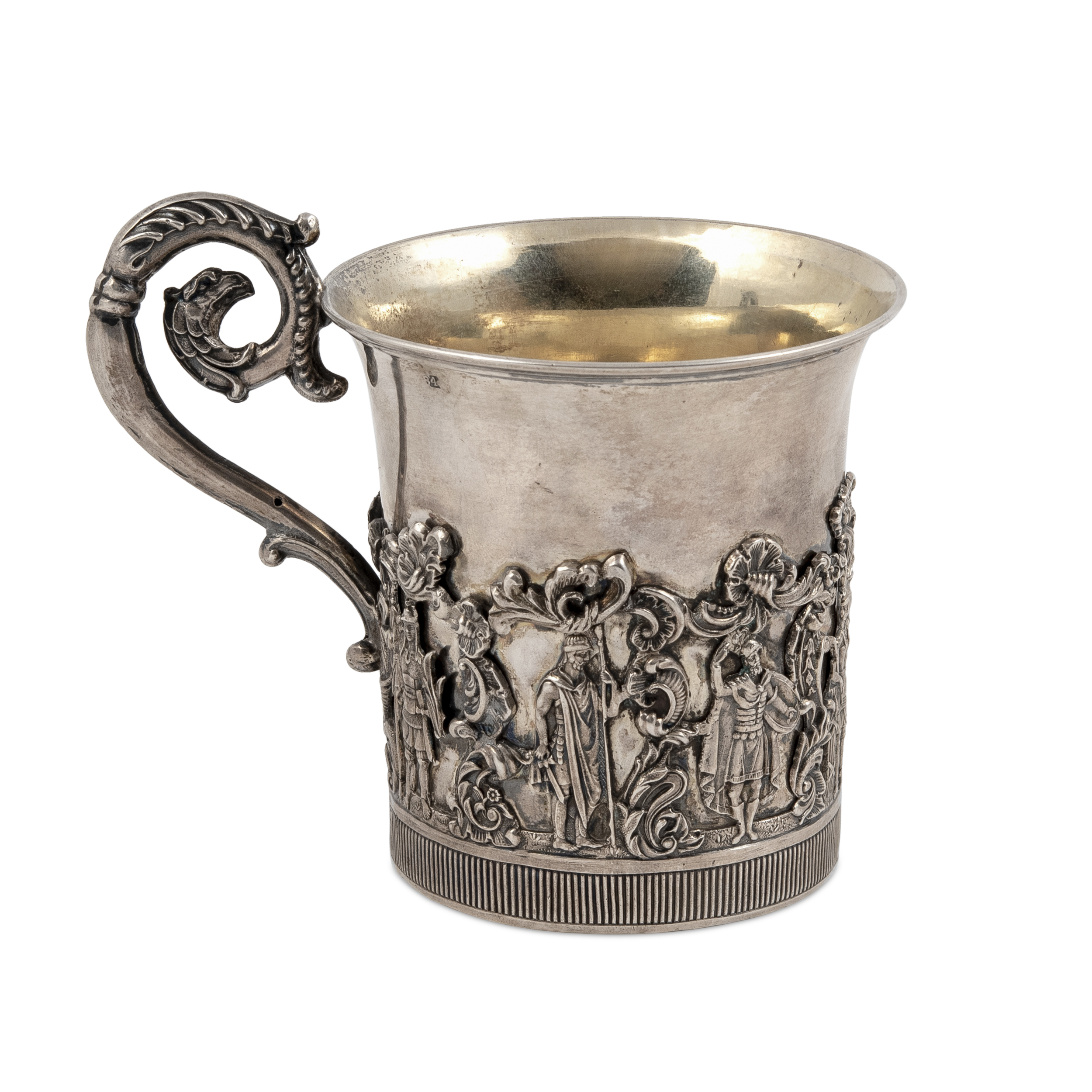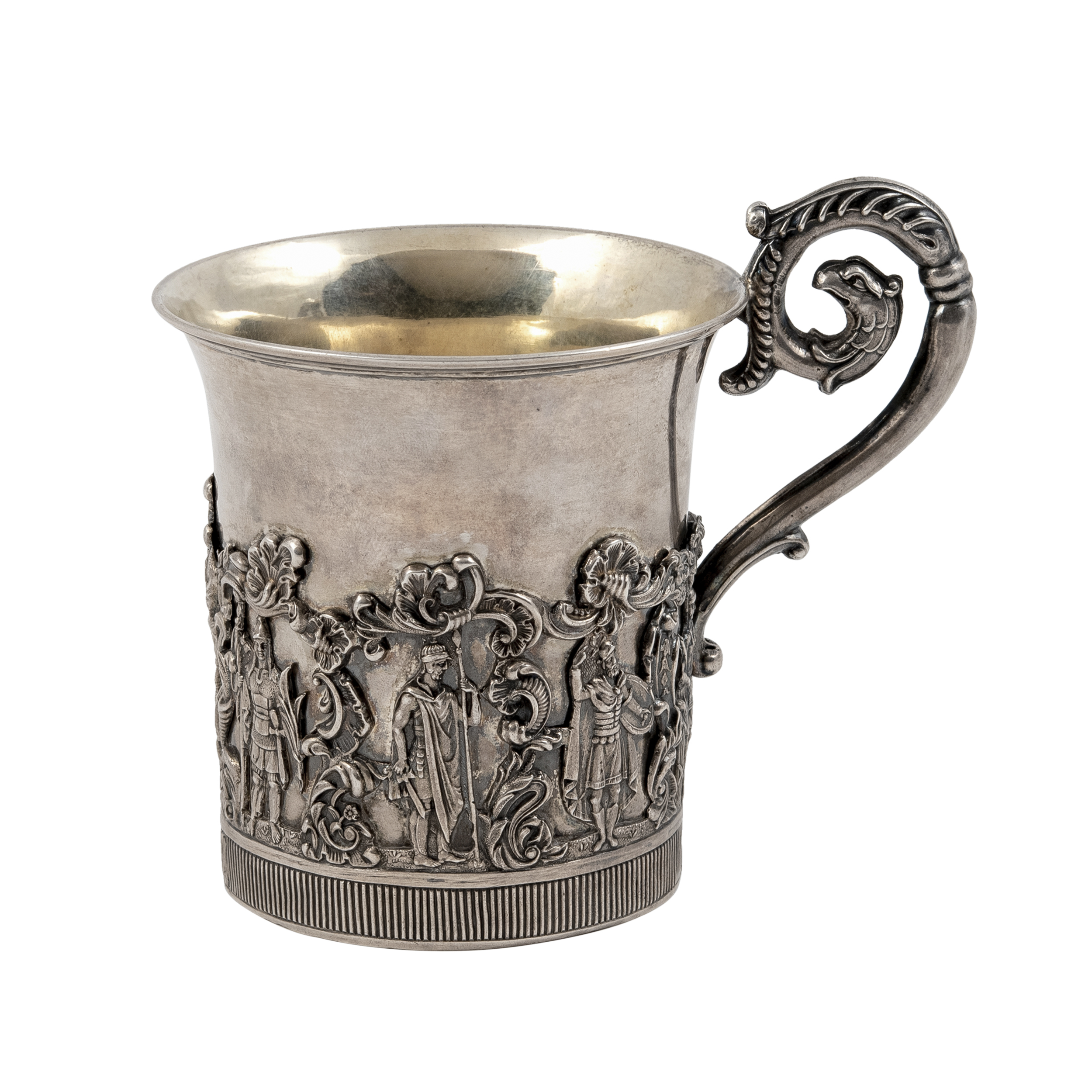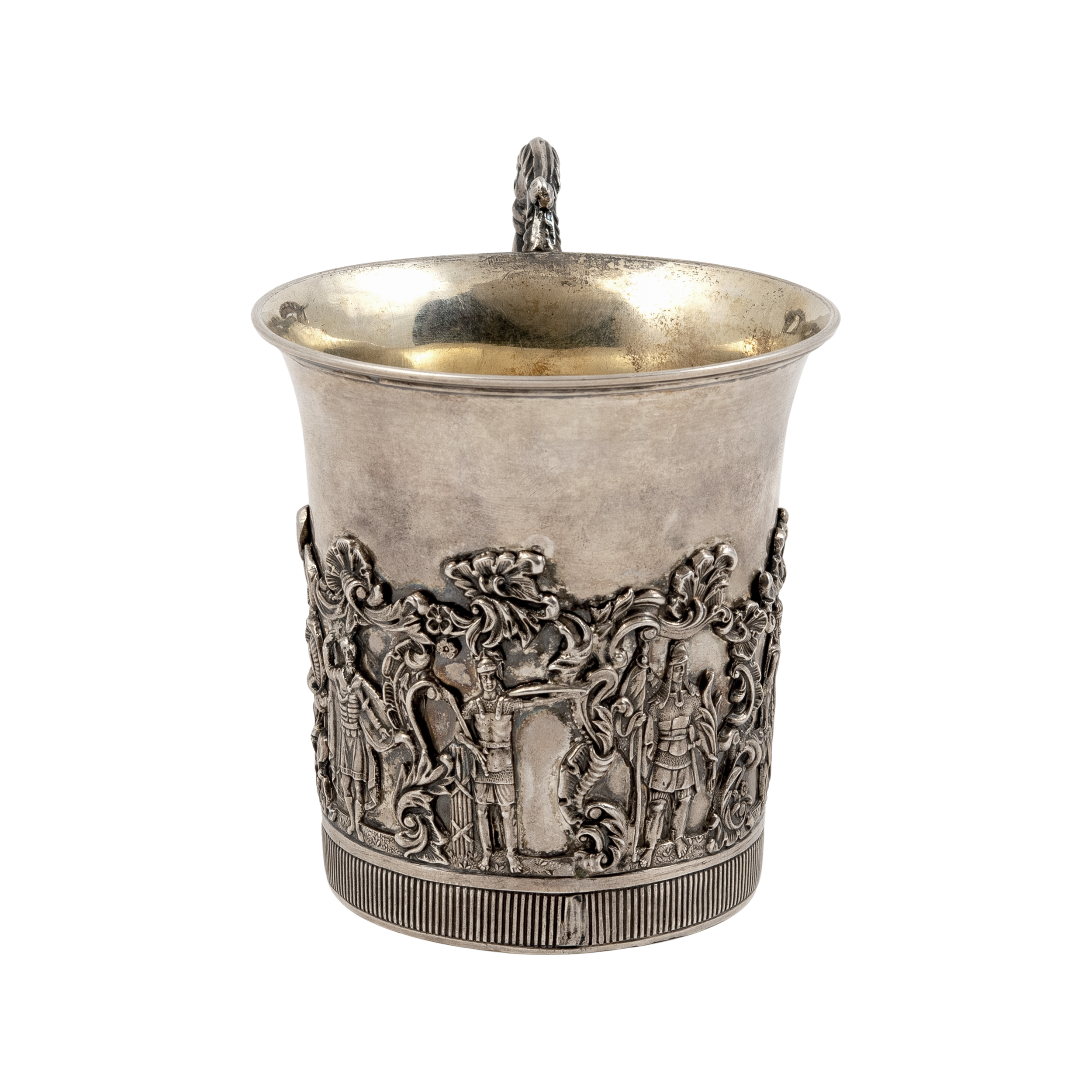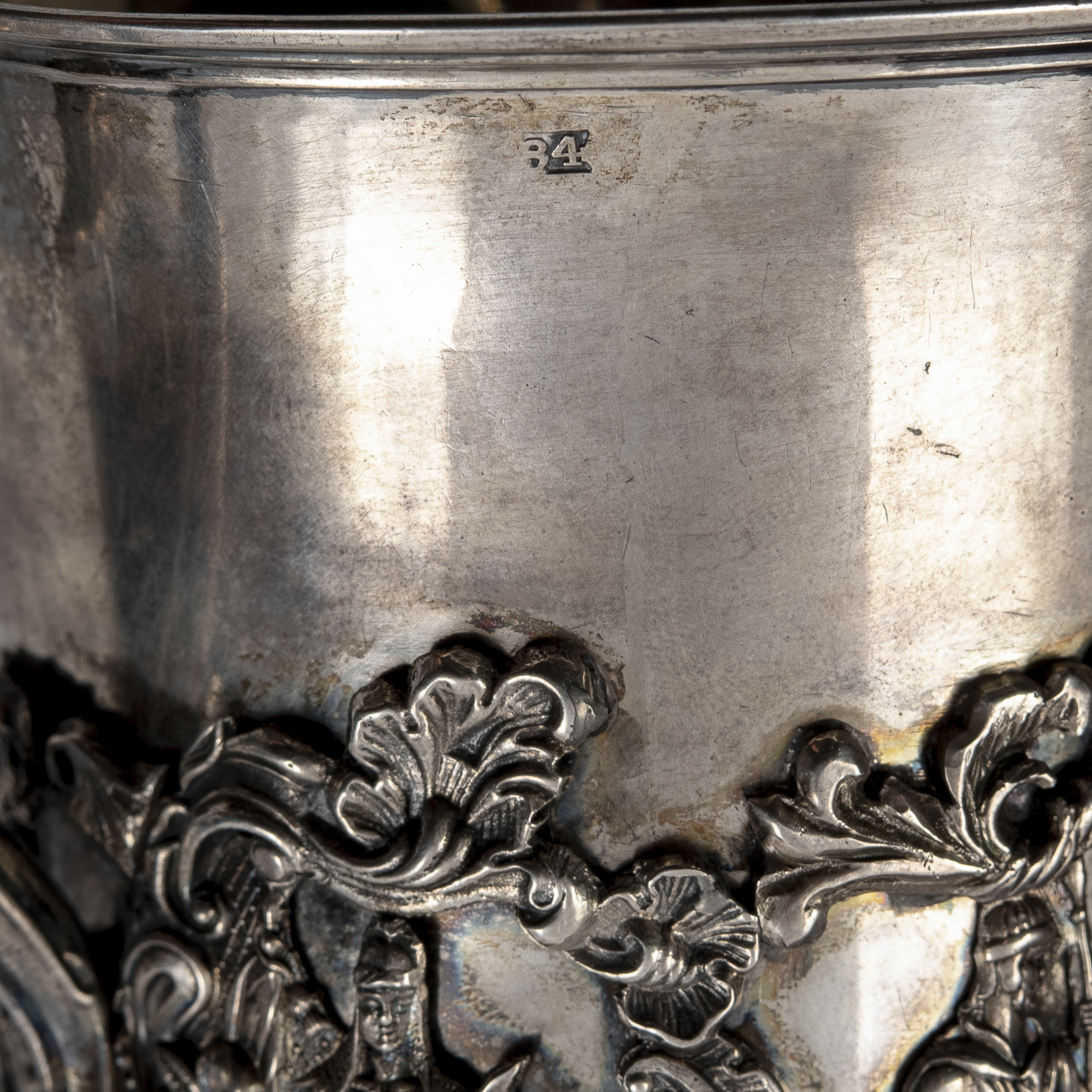 Клейма: 84 пробы с гербом Москвы «Георгий Победоносец», с инициалами пробирного мастера «Н.Д» над датой «1839» Дубровина Николая Лукича (1822-1855 гг.); именник «HГ» в прямоугольном щитке, неизвестный мастер (1835-1840 гг.);
