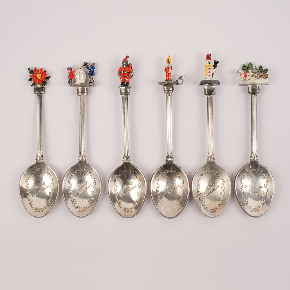 Металл, серебрение, полихромная эмаль. Клейма на ложках: "wap.w / gt.britain / silver plated".