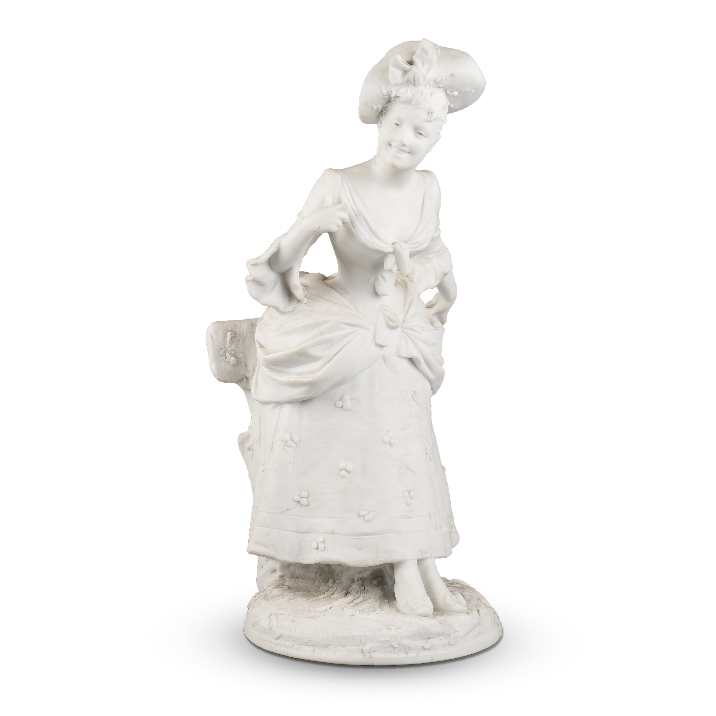 Фарфоровая фигура в стиле модерн. Бисквит, лепка, в массе оттиск факсимиле подписи «Van Der Straeten», автор модели скульптор Ван дер Стретен (Georges Van der Straeten, Бельгия 1856-1941), Бельгия, последняя треть XIX века, высота - 47 см